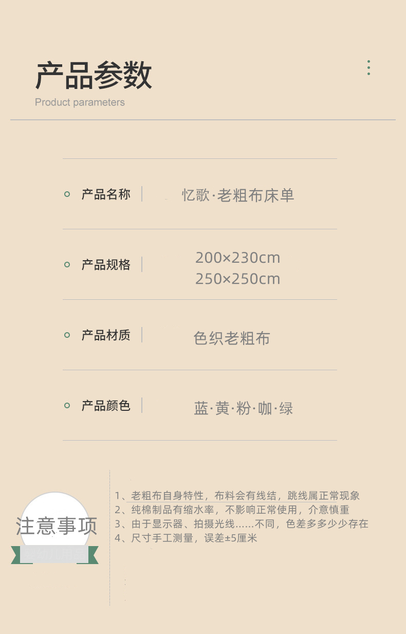品名:忆歌鲁锦老粗布凉席床单三件套 材质:纯棉 发货地:山东 发货时间:下单48小时内发货(周末、节假日除外) 发货快递:极兔、中通快递(暂不支持指定快递) 运费政策:该商品全国部分地区包邮(内蒙,甘肃,青海,宁夏、海南需补差运费7元/件,云南迪庆藏族自治州、怒江傈僳族自治州、四川阿坝藏族羌族自治州、凉山彝族,临沧,攀枝花市,甘孜藏族自治区需补差运费9元/件,新疆、西藏、港澳台不发货,请知悉) 售后政策:本品包装配件完整、未拆封、不影响二次销售支持7天无理由退换货(无运费险),无理由退货、拦截、拒收需要扣除4元费用,请知悉 温馨提醒:因显示器像素差异与拍摄灯光原因,图片与实物颜色可能存在些许色差,具体请以收到实物为准。 老粗布因为是纯棉,第一次洗会缩水:长度缩百分之八到十左右,宽度缩百分之五左右,这属于正常现象,介意勿拍。 2.0✖️2.3米床单缩水后1.9✖️2.1左右,适合1.5米床用有下垂,1.8床用平铺; 2.5✖️2.5米床单缩水后2.4✖️2.30左右,建议1.8床和2米床用有下垂。 枕套尺寸:74cm✖️48cm。 |