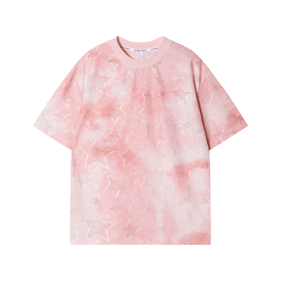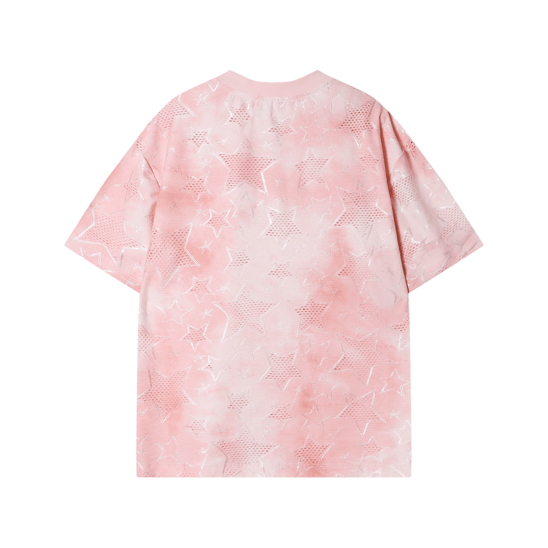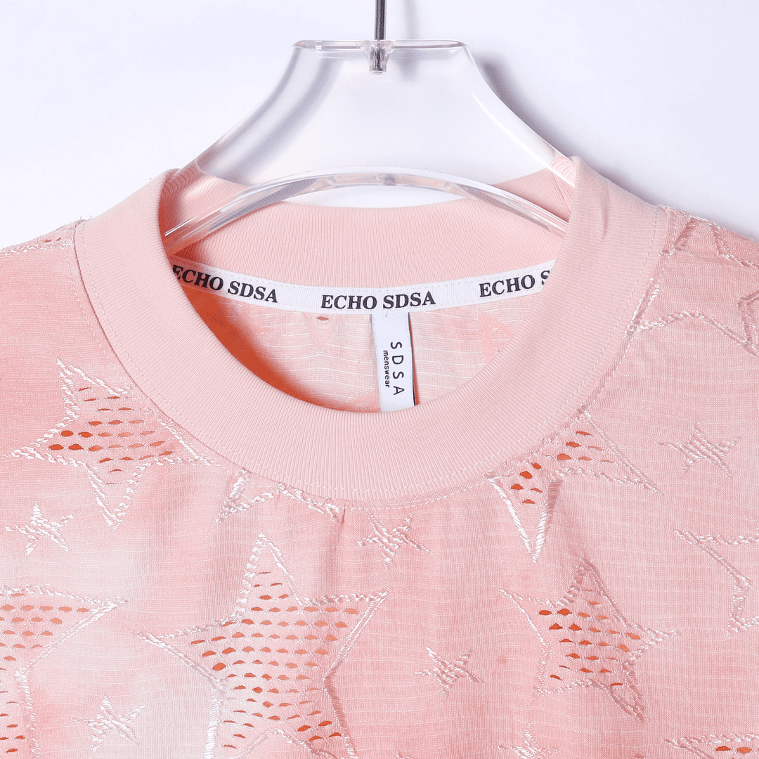T1610夏季新款时尚星星印花男士短袖百搭镂空设计上衣潮流宽松T恤