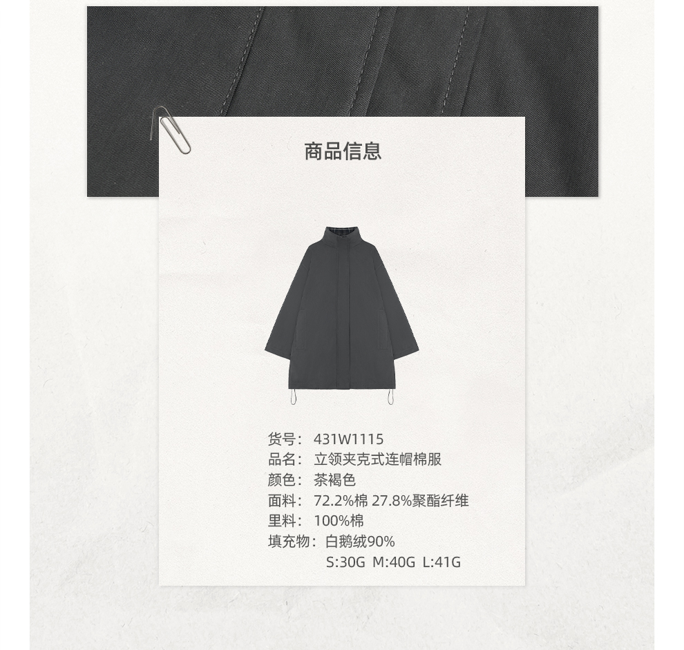 ROMI STUDIO“温暖如初”90白鹅绒立领夹克式连帽棉服外套 431W1115