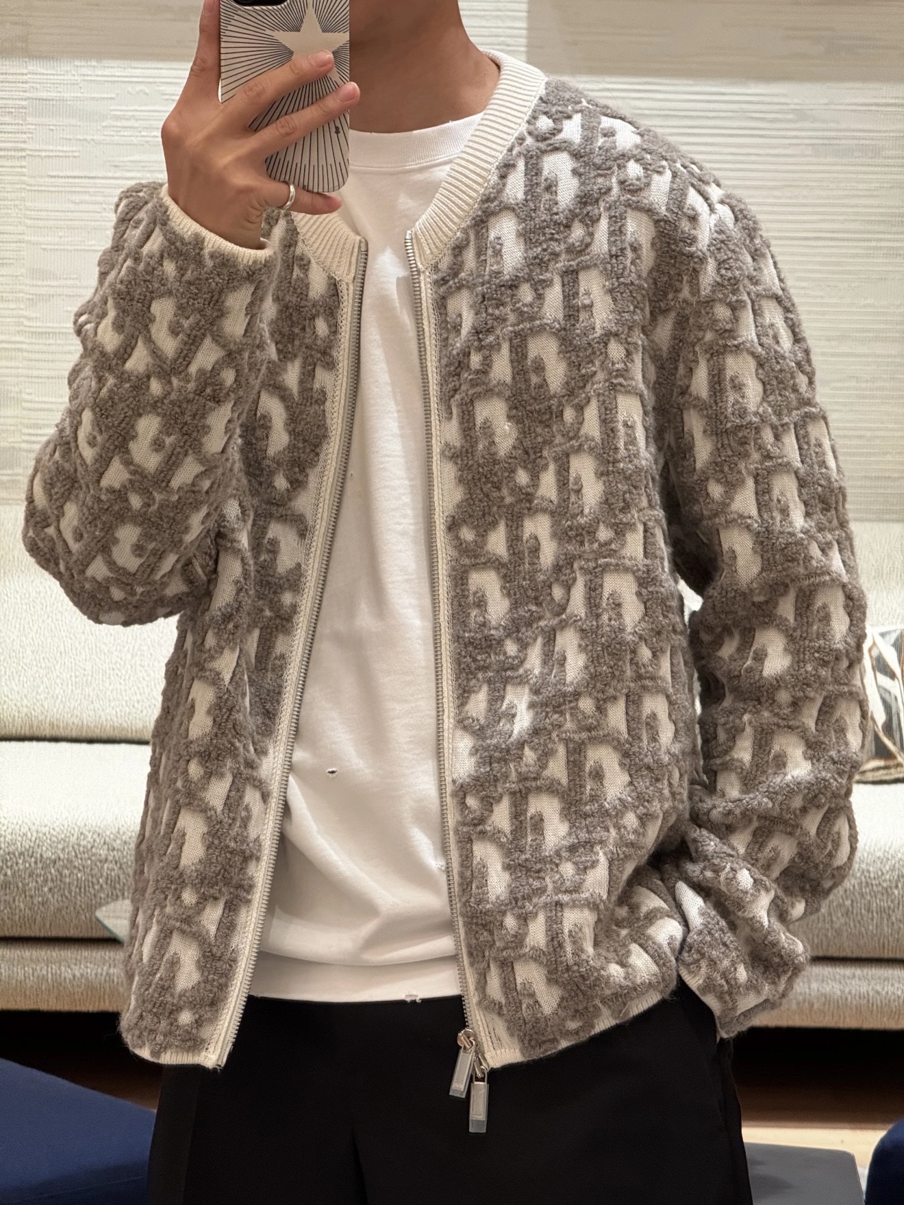 Dior2025FW秋冬Oblique提花毛衣外套‼️整件衣服20000购买ZP拆解打造,定织绵羊毛混纺提花面料,整件衣服采用意大利进口电脑横机制造,全幅饰以Oblique提花,提花毛圈设计,门襟开模定制字母logo拉链,定织标志性罗纹领口 袖口 下摆,超紧密度局部编织,真正做到1:1copy 闭眼入 码数:XS S M L