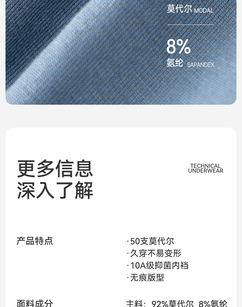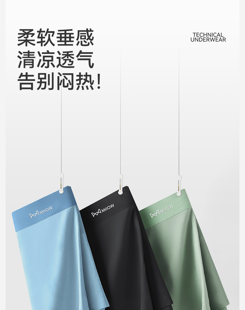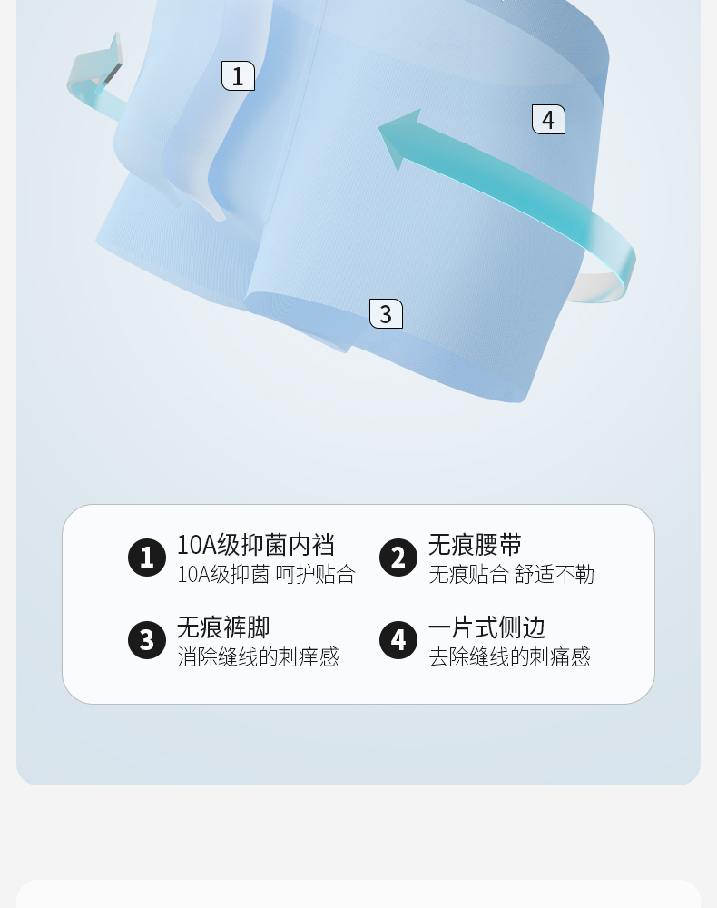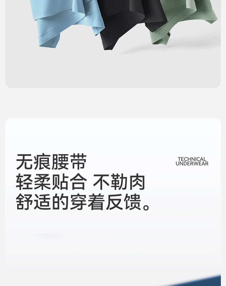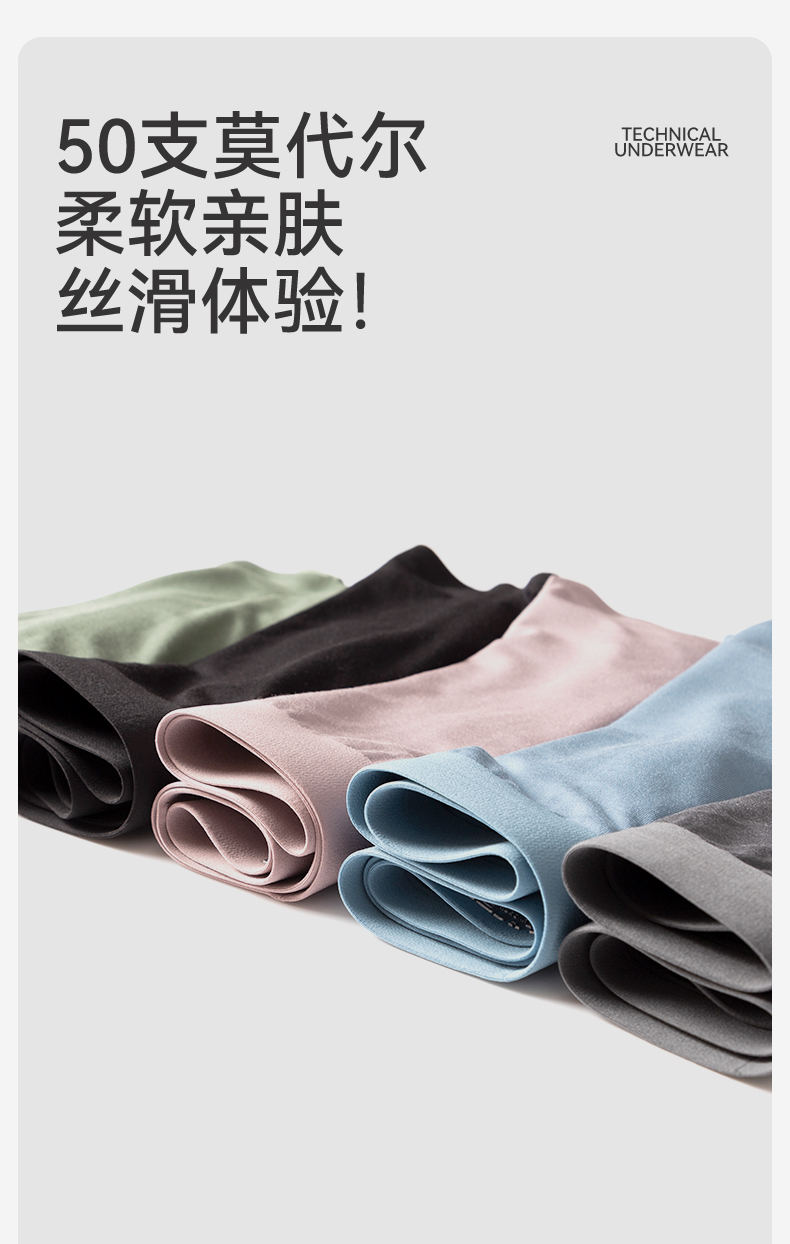 猫人男士内裤50支莫代尔10A抗菌无痕中腰平角裤不卷边3条装
