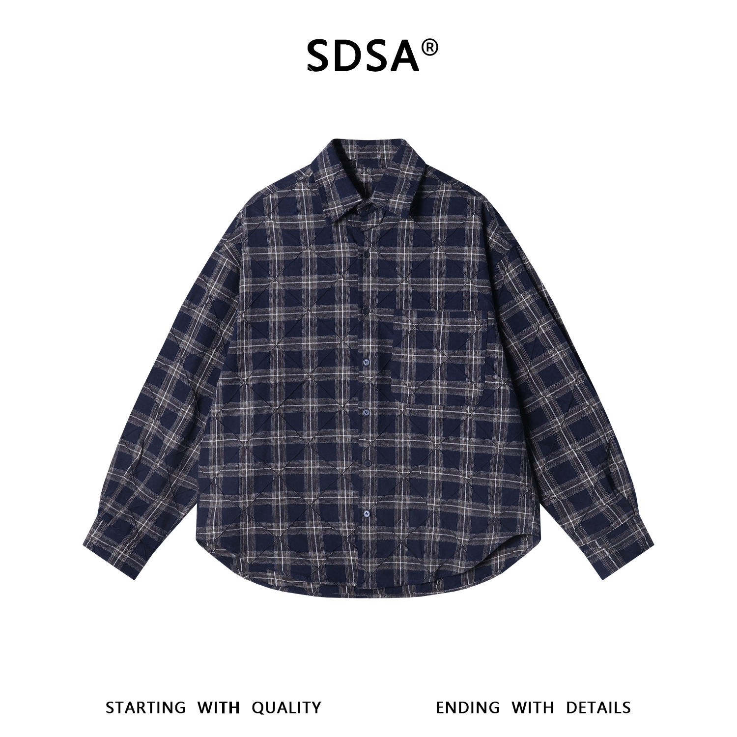 SDSA男装2026新款高贵轻奢韩版休闲格子菱形长袖衬衫百搭休闲衬衣