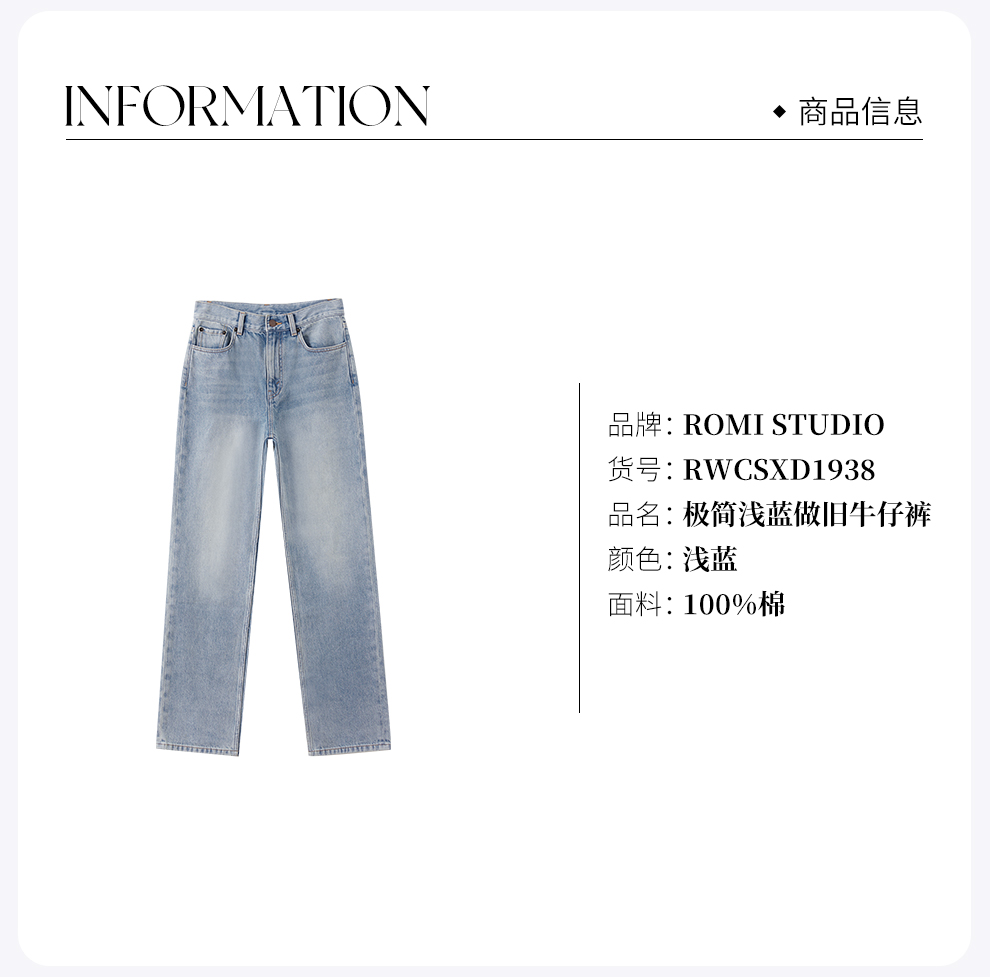 ROMI STUDIO“复古丹宁”朦胧雾感夏季薄款纯棉牛仔裤 RWCSXD1938【发货时间25-30天】