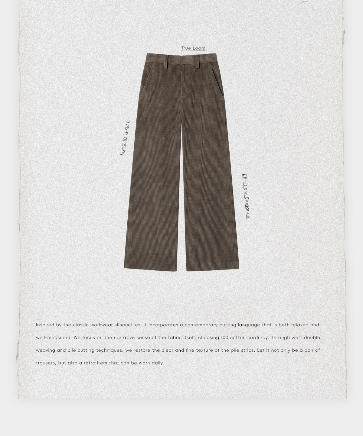 ROMI STUDIO“休闲复古”灯芯绒肌理感挺阔直筒休闲裤 RWCWX65807