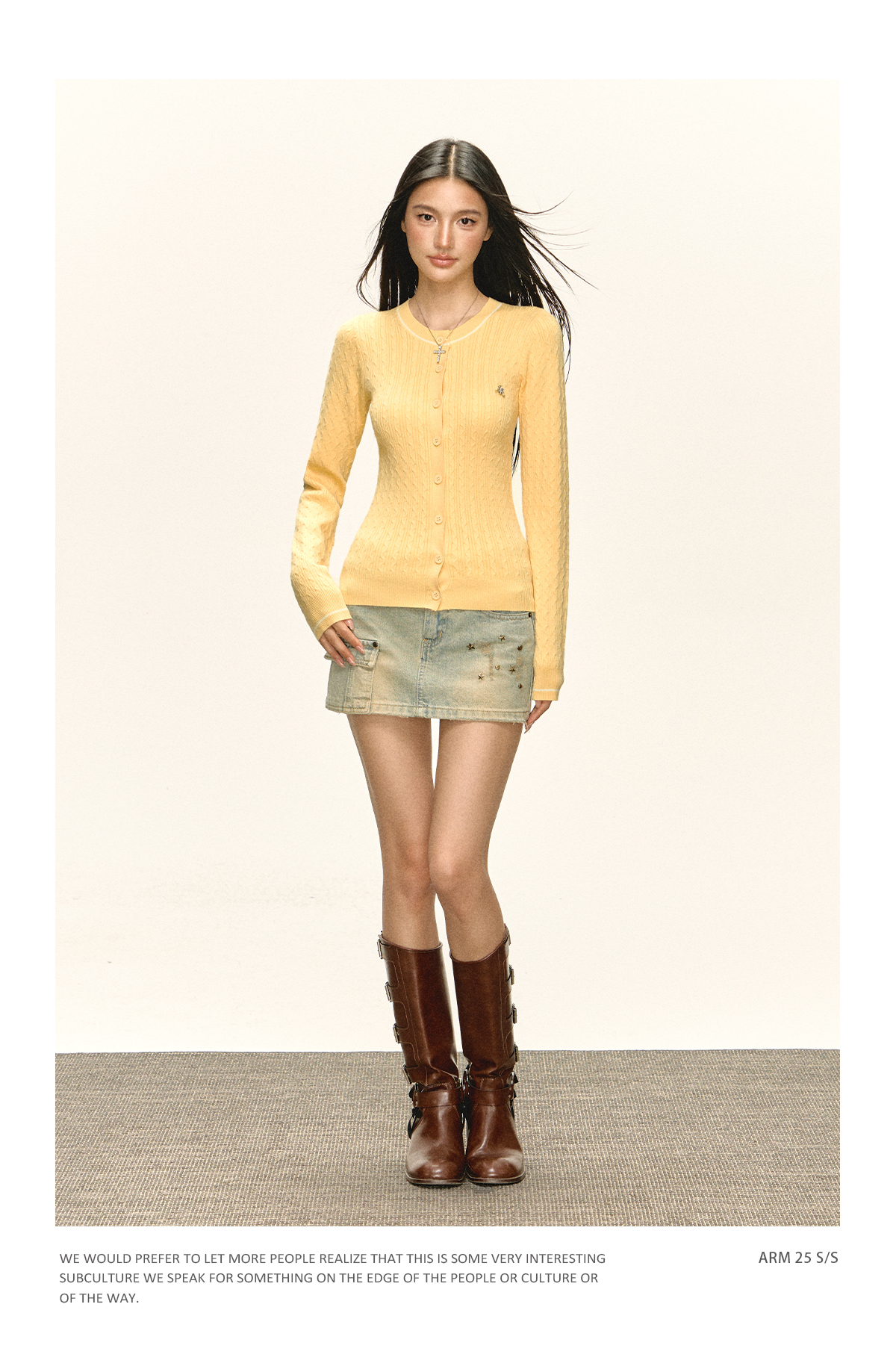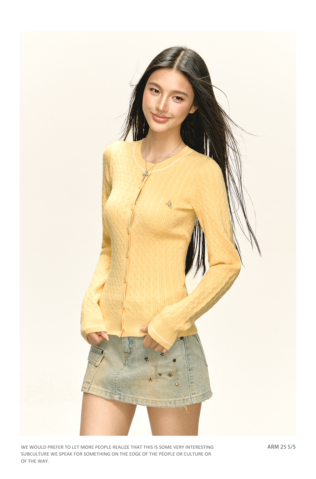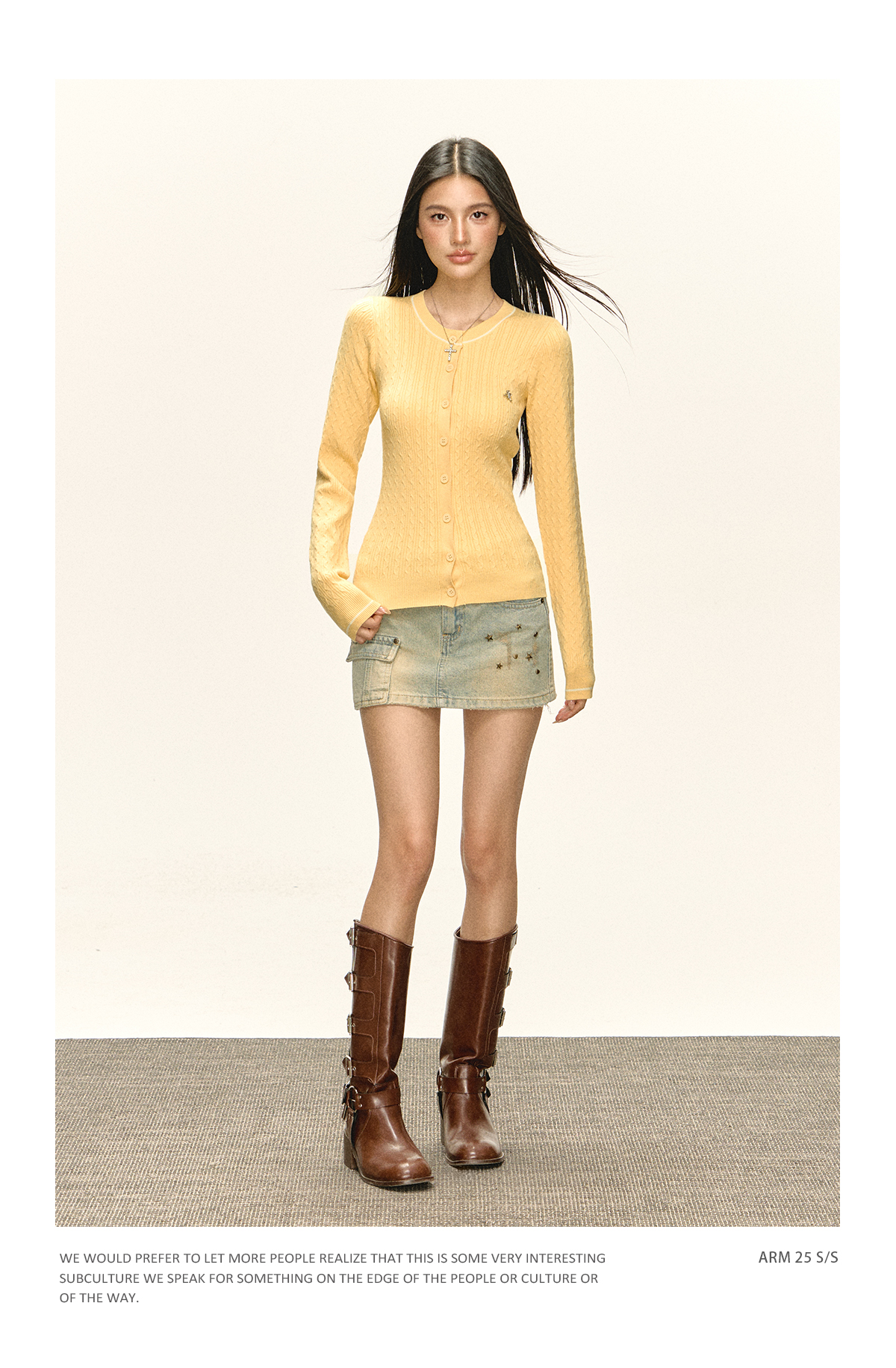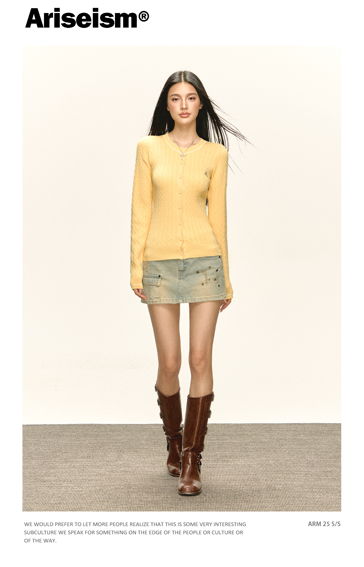 Ariseism 美式复古设计感针织开衫毛衣女秋季新款修身上衣