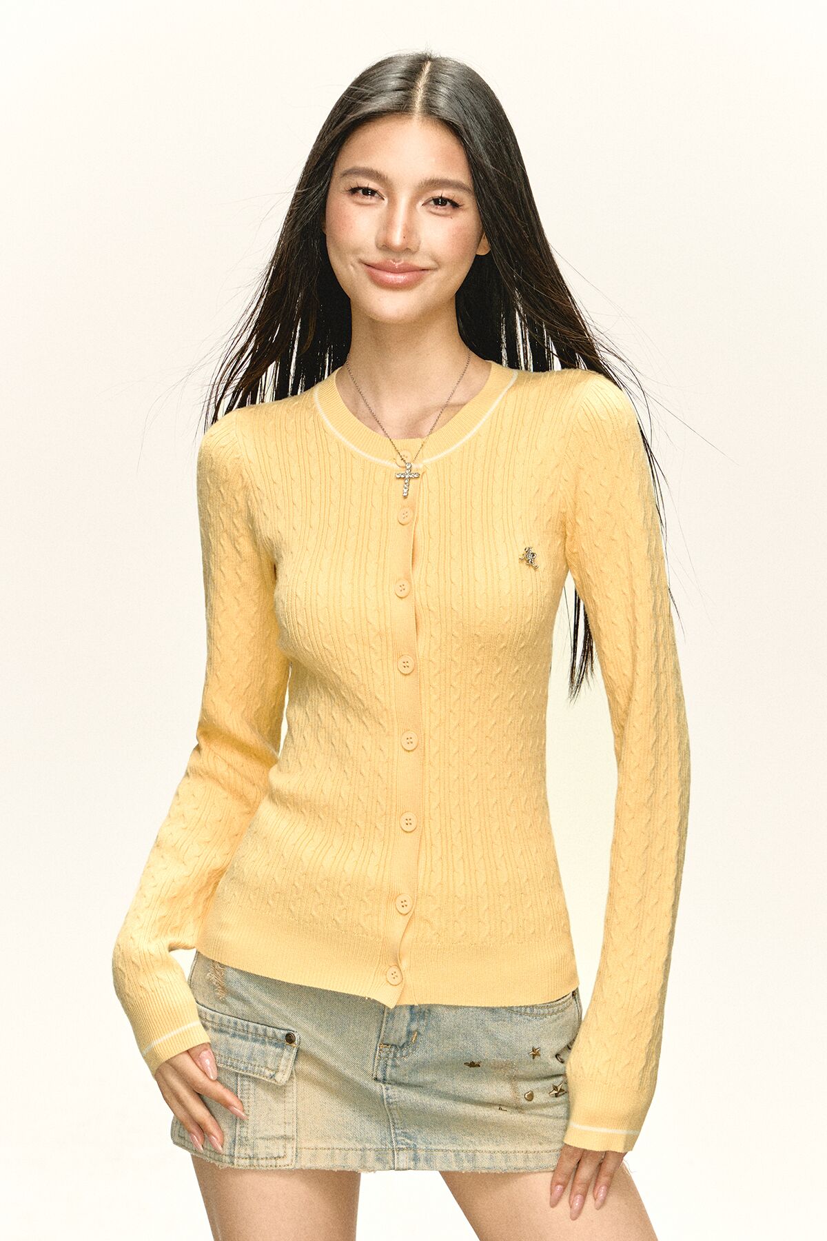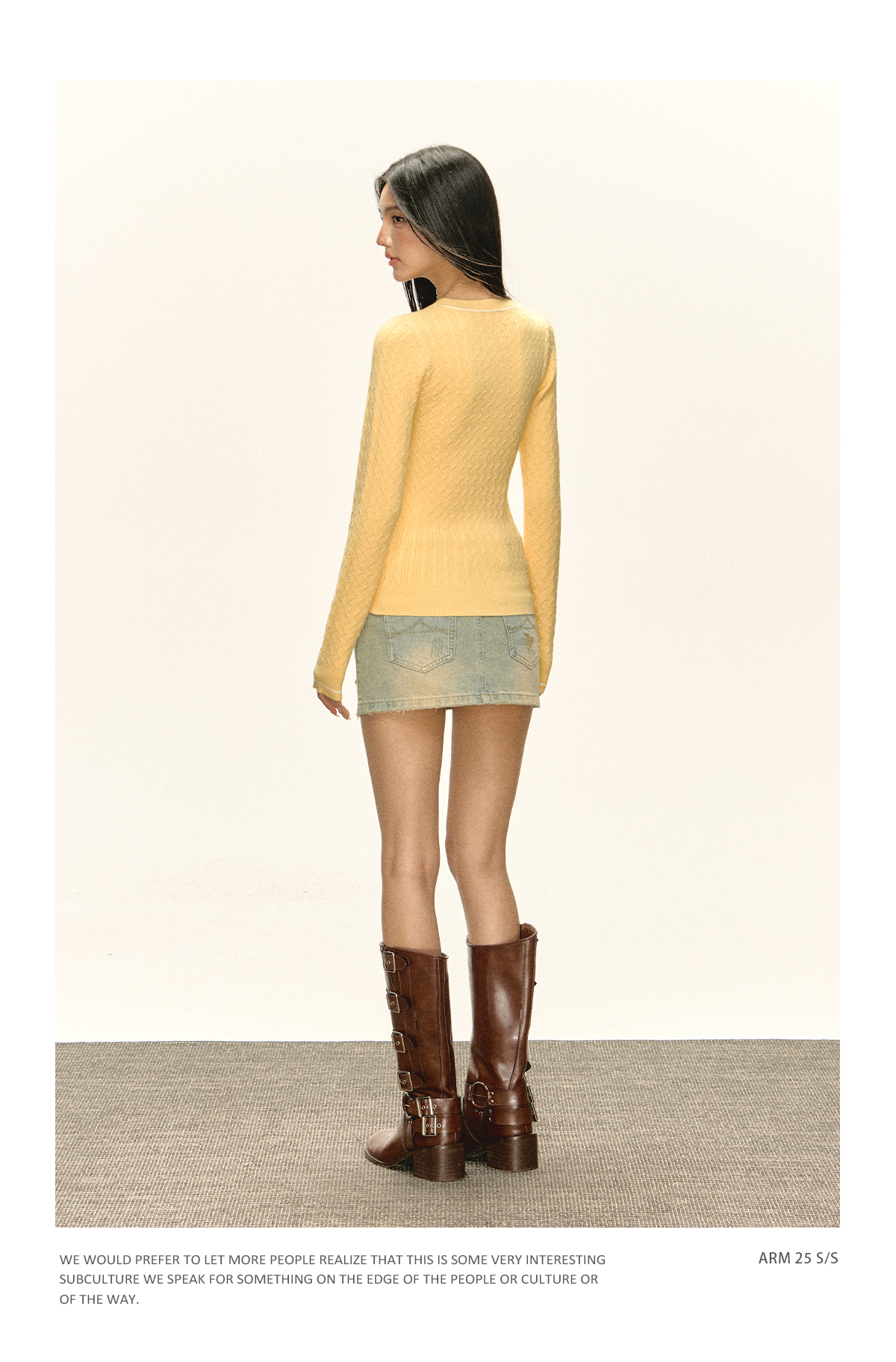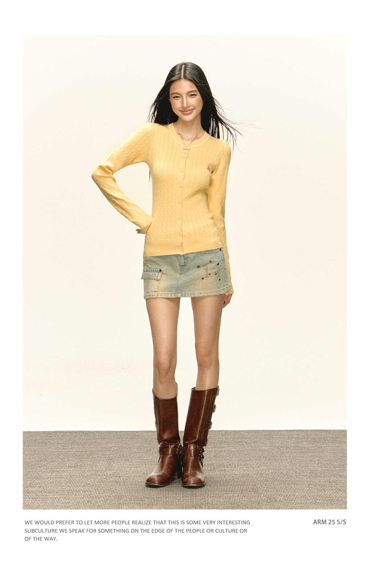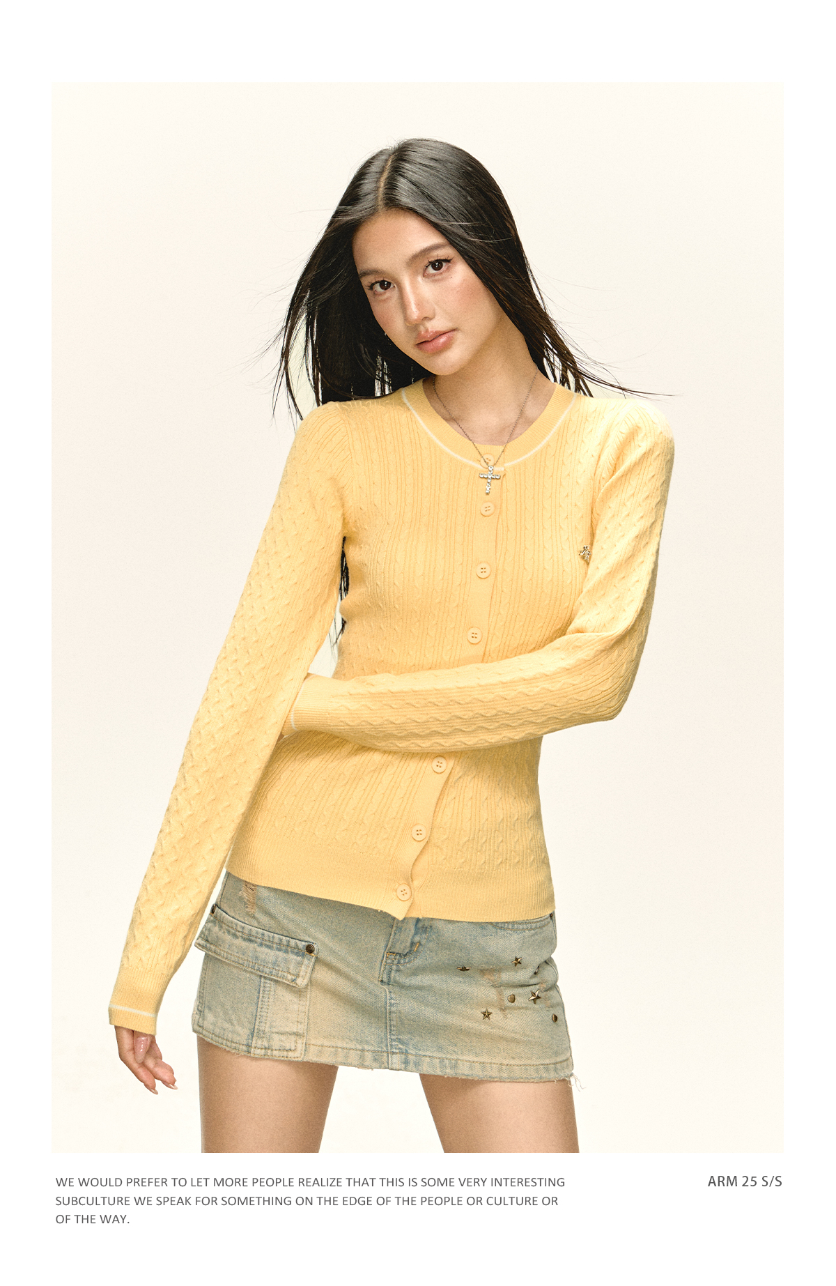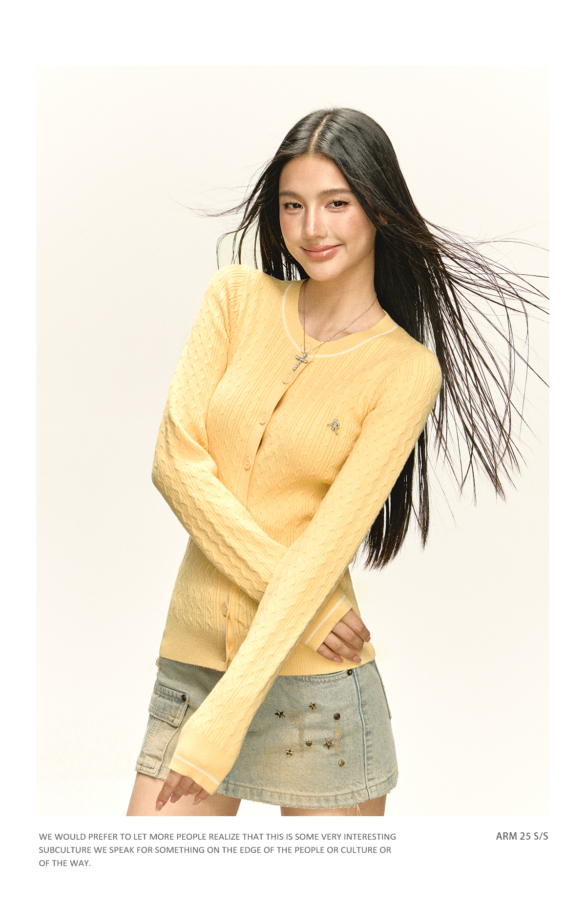 Ariseism 美式复古设计感针织开衫毛衣女秋季新款修身上衣