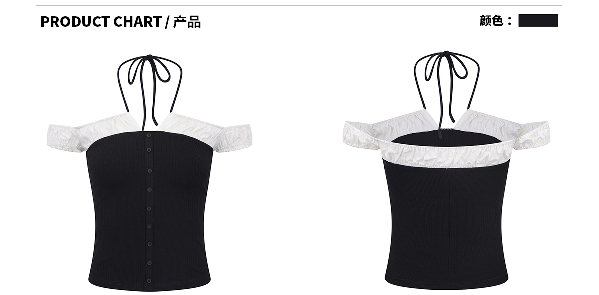 Ariseism 美式复古黑白拼接一字肩短袖T恤女夏新款辣妹性感上衣