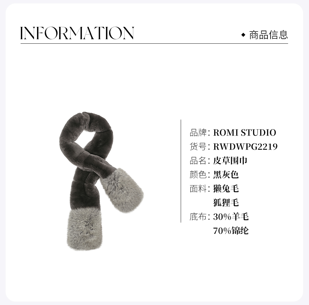 ROMI STUDIO獭兔毛狐狸毛光泽奢华软糯底绒皮草围巾 RWDWPG2219