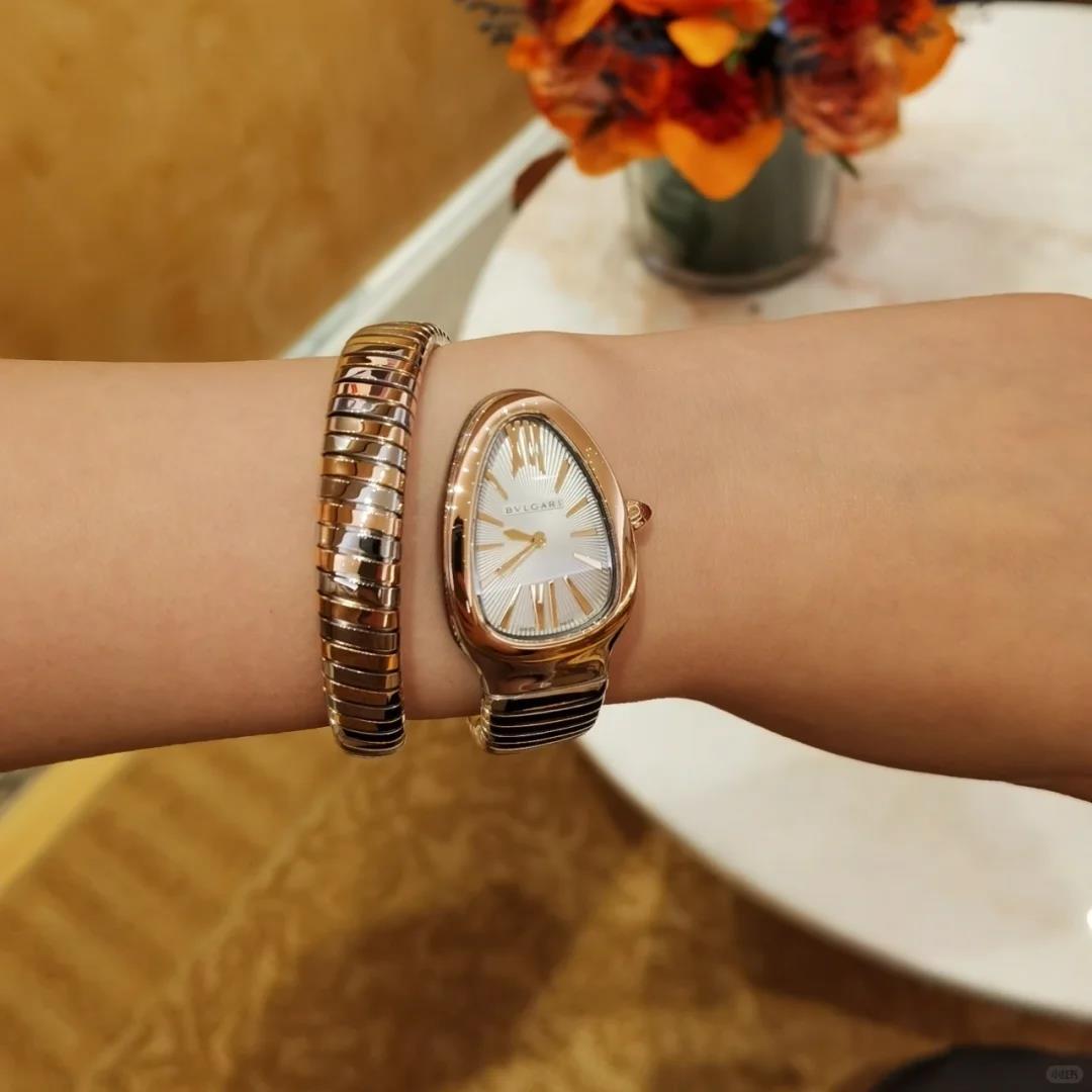 腕表将灵蛇的曼妙造型与Tubogas金属软管的现代气息融为一体,螺旋表链如蜿蜒蛇身盘桓腕间,让古老图腾焕然新生。优雅与个性并存,释放女性双面魅力。蛇形经典,尺寸35mm最新配色,瑞士进口石英机芯 精致细腻的做工达到与正品互换的水平,白富美专属蛇形手表绝对是宝格丽的独创产品,属于宝格丽SERPENTI系列。这种手镯与钟表的结合品,自二十世纪四十年代诞生以来便是性格最鲜明的品牌象征。有不少朋友都看过1962年拍摄的老版《埃及艳后》吧?演员伊丽莎白·泰勒所佩戴的就是一款定制的蛇形腕表。时至今日,这种精巧独特的设计依然得到精致女性的青睐!