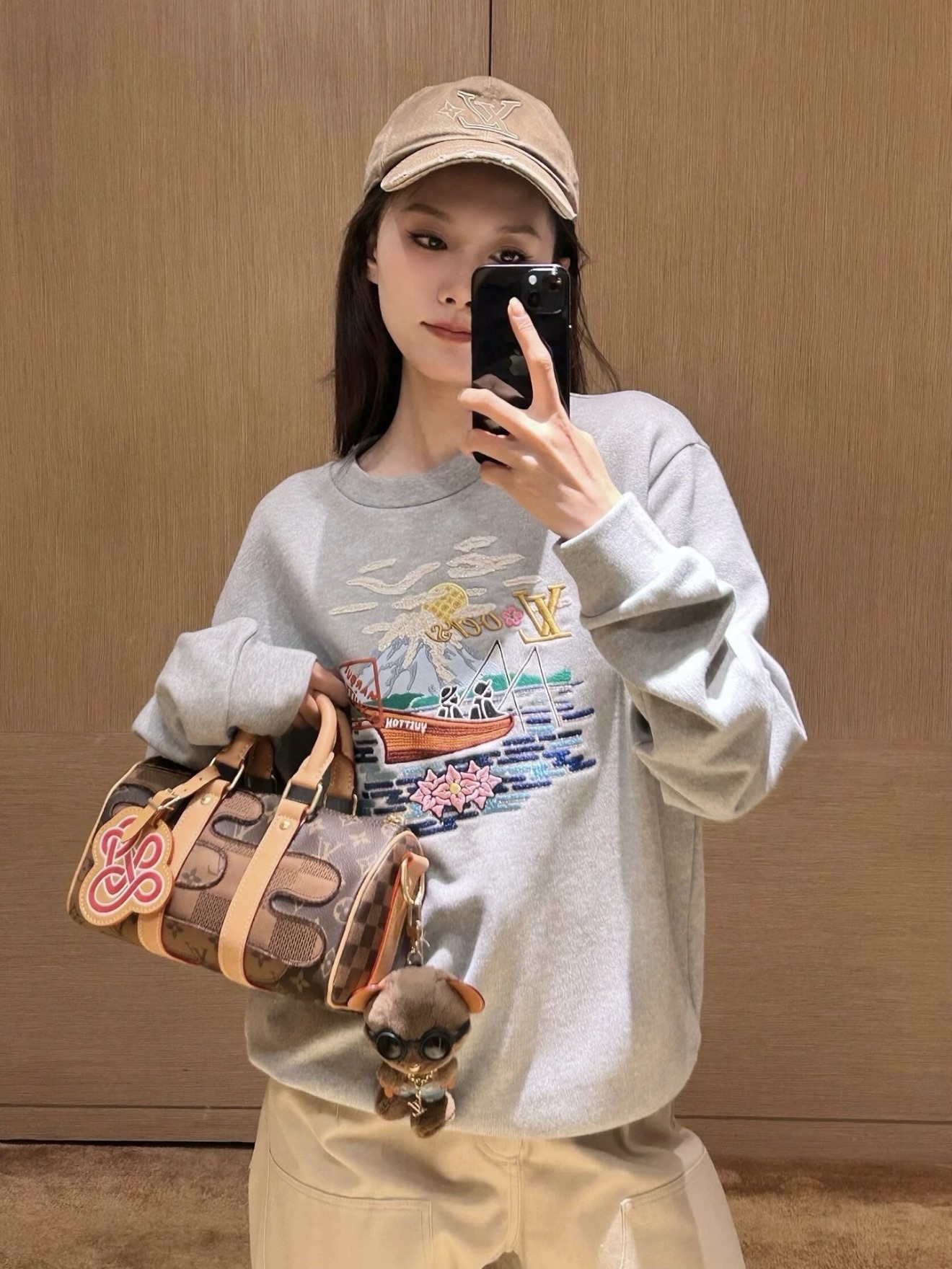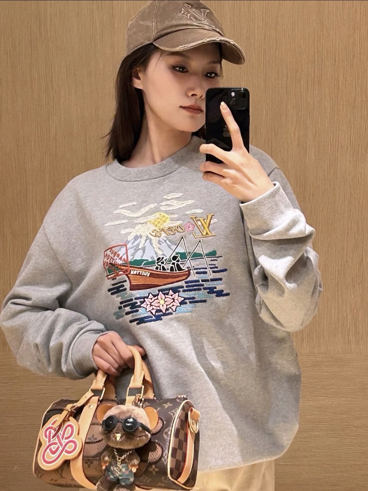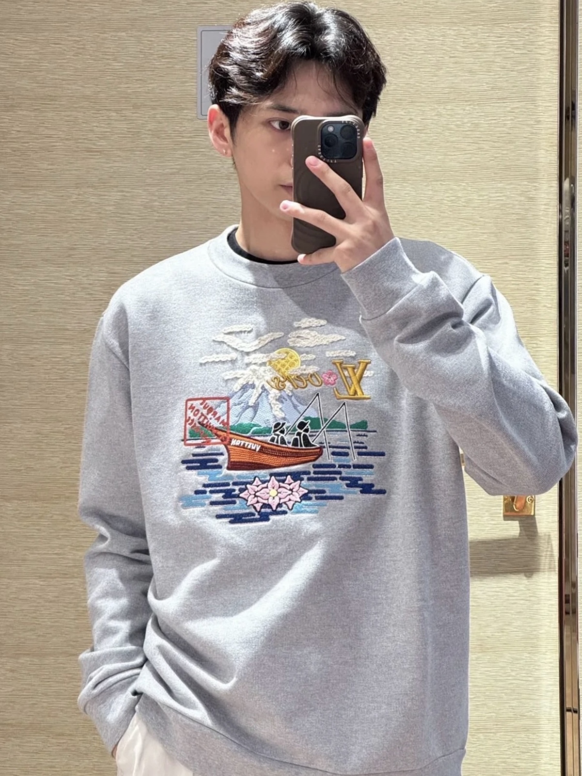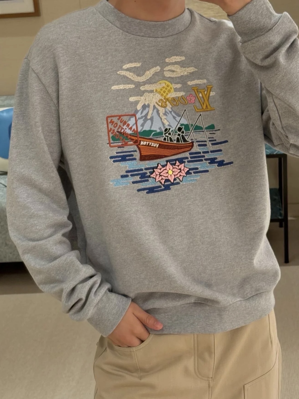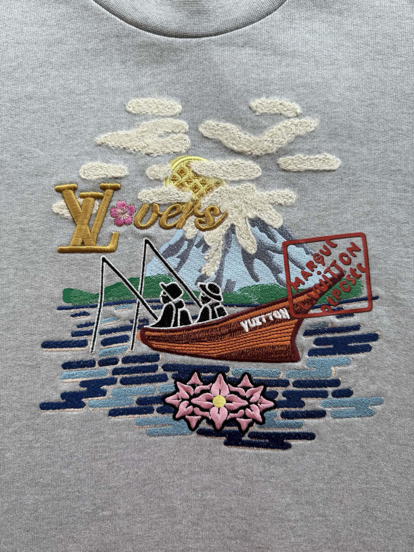 Louis Vuitt* 25ssNigo泛舟垂钓刺绣圆领卫衣