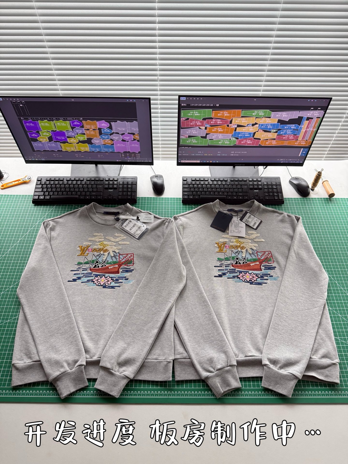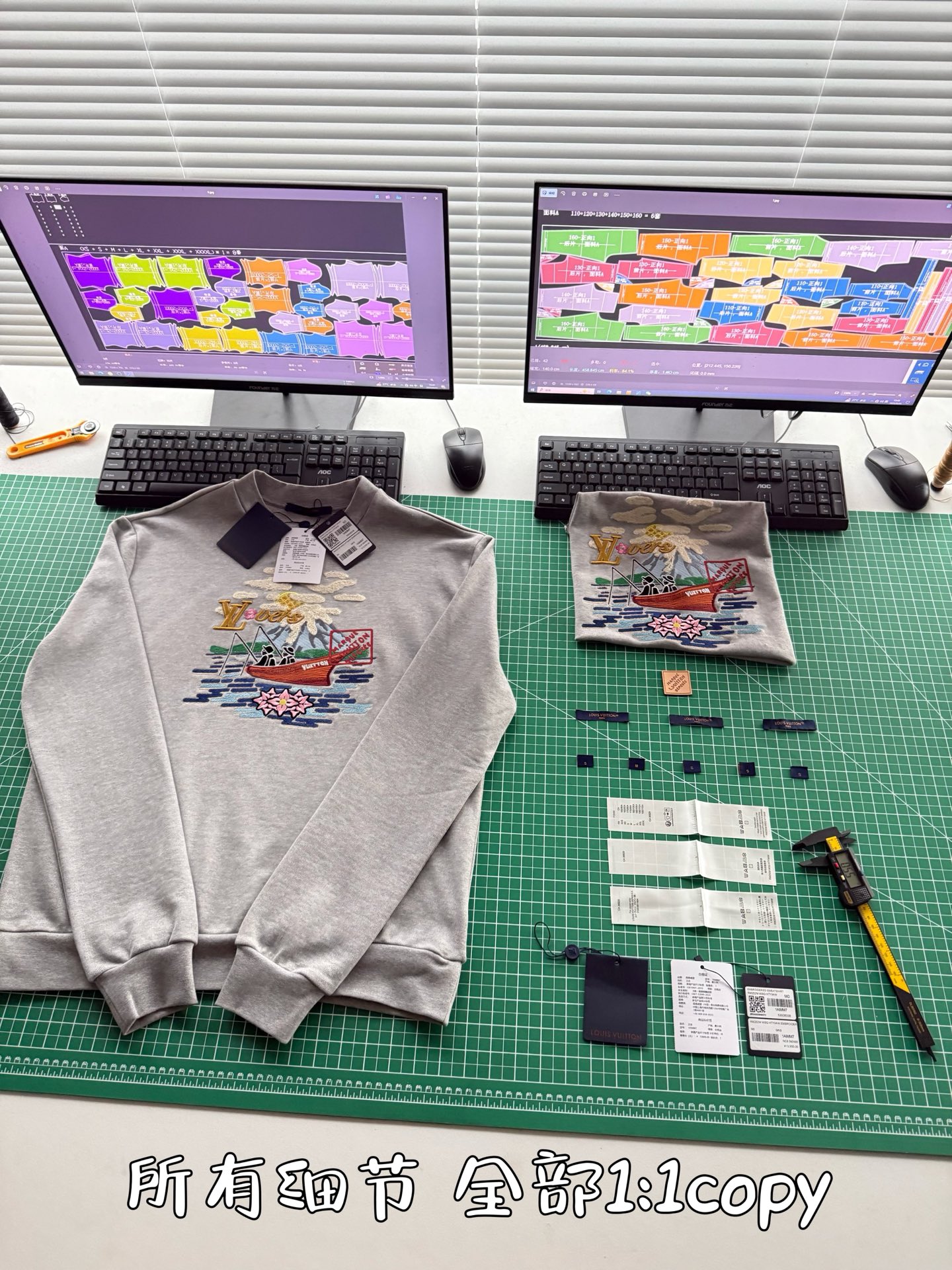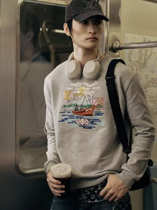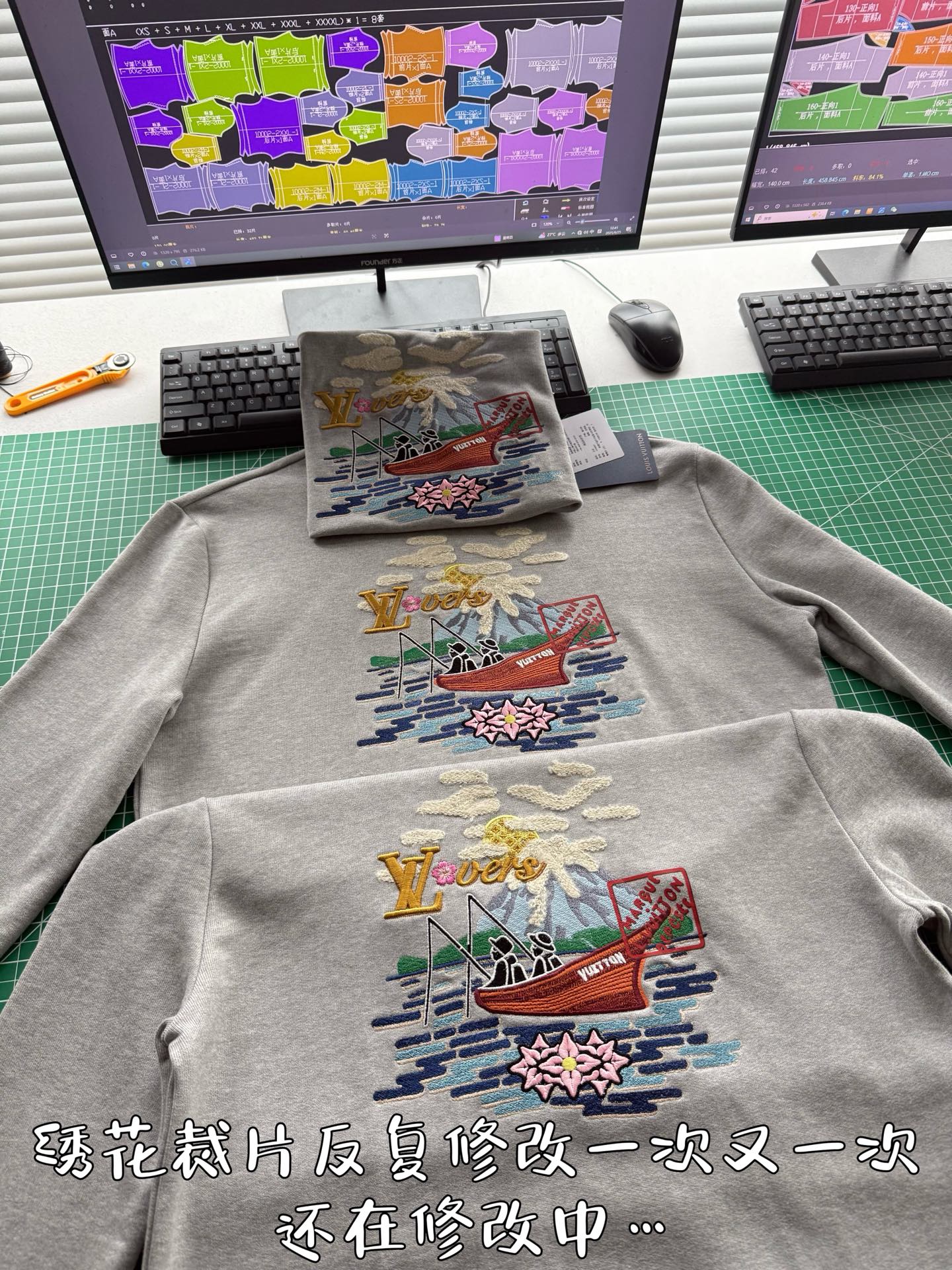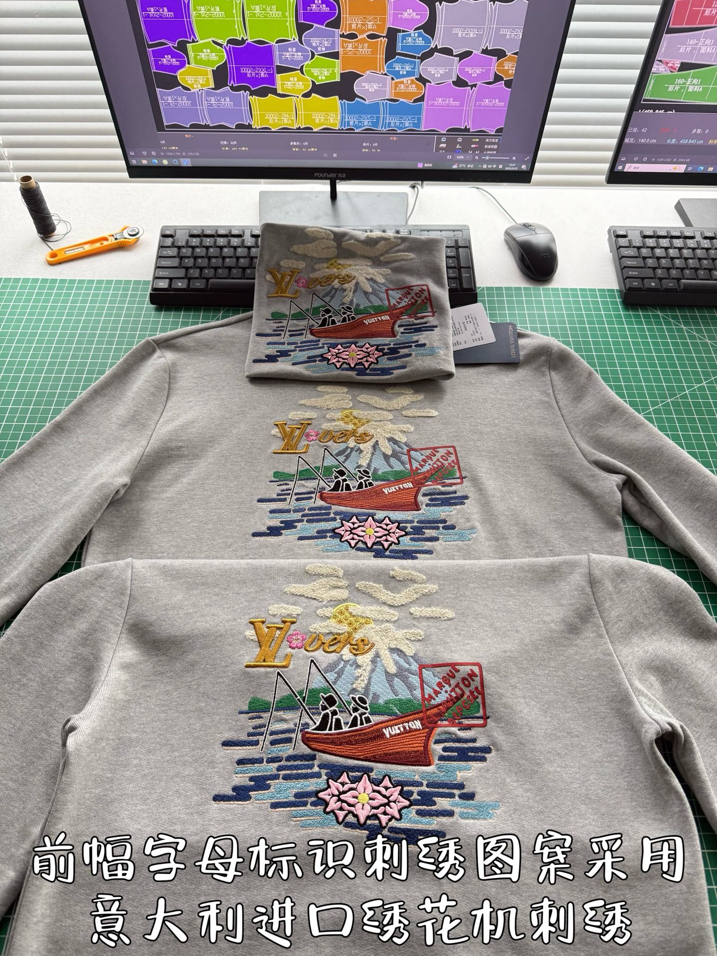 Louis Vuitt* 25ssNigo泛舟垂钓刺绣圆领卫衣