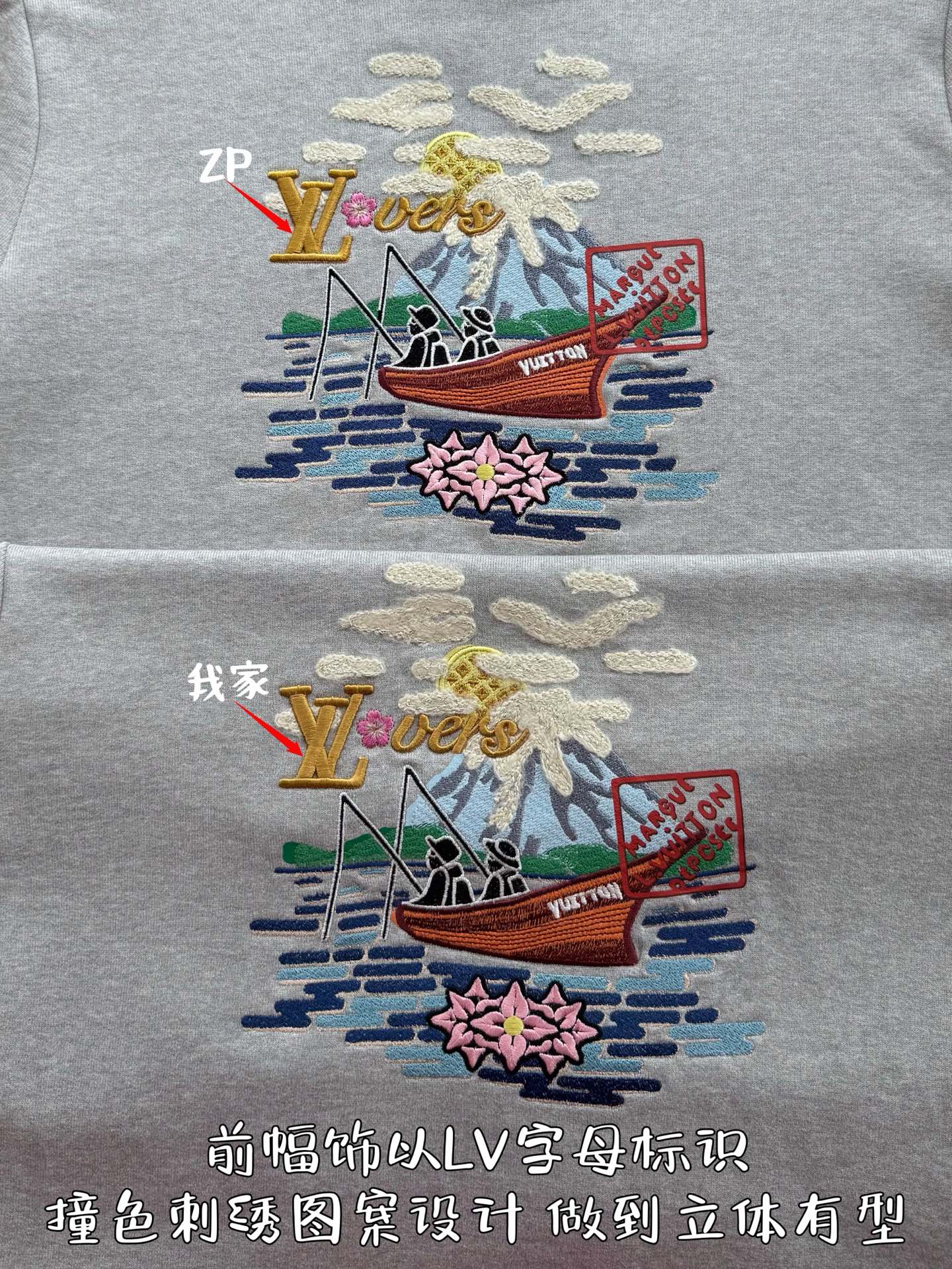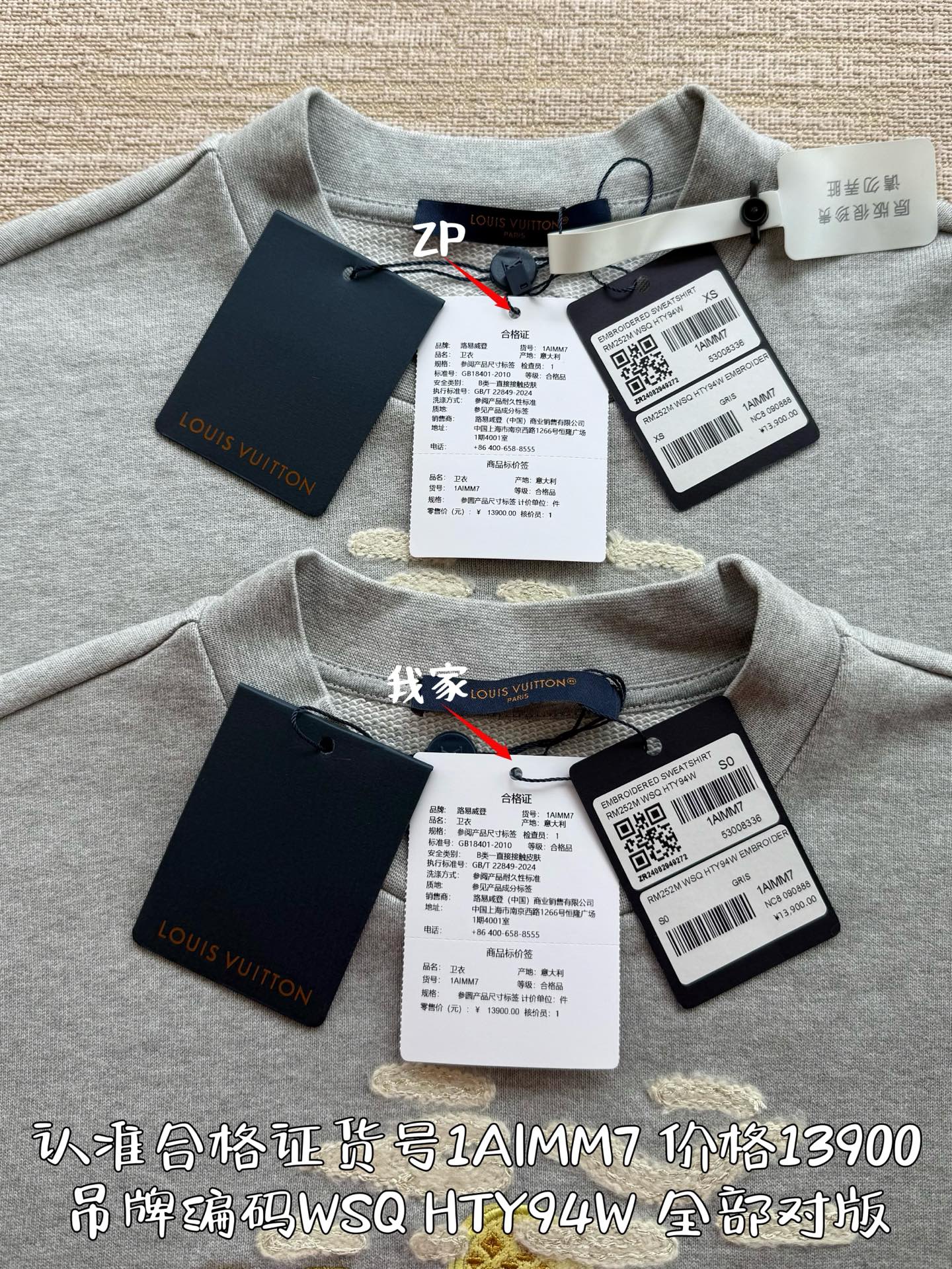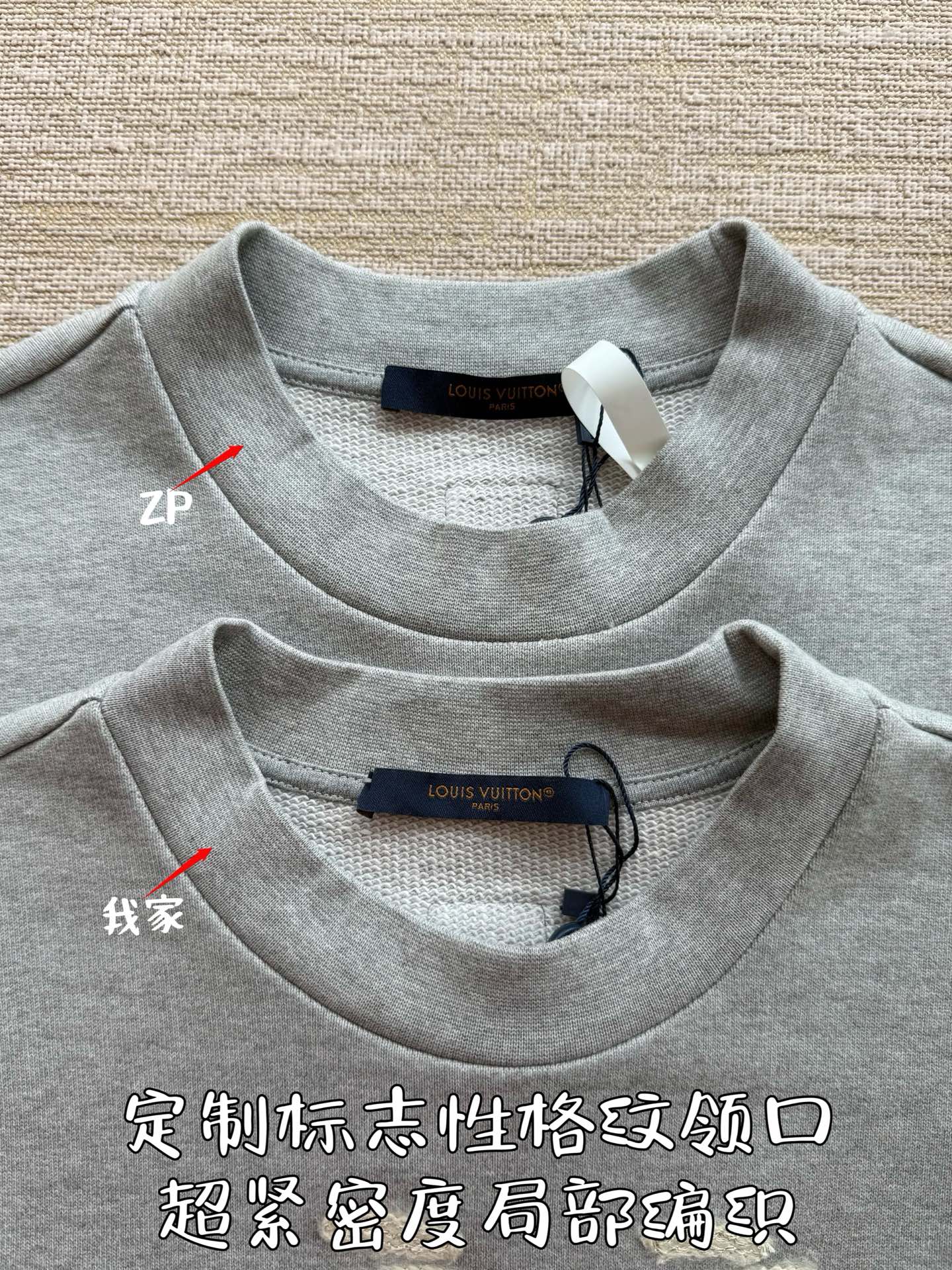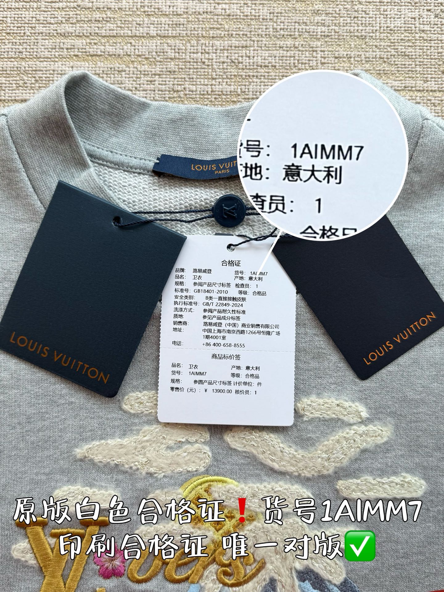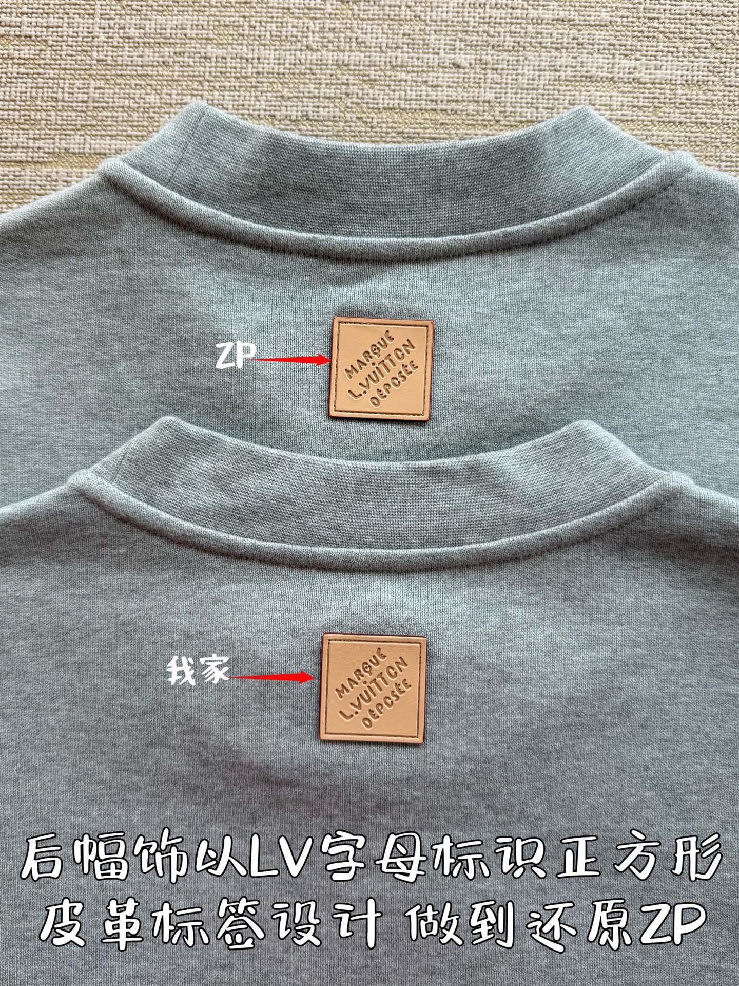 整件衣服13990购买ZP拆解打造,采用定制灰色纯棉面料,做到100%全棉进口纱线,意大利制造,前副饰以LV刺绣图案字母提花