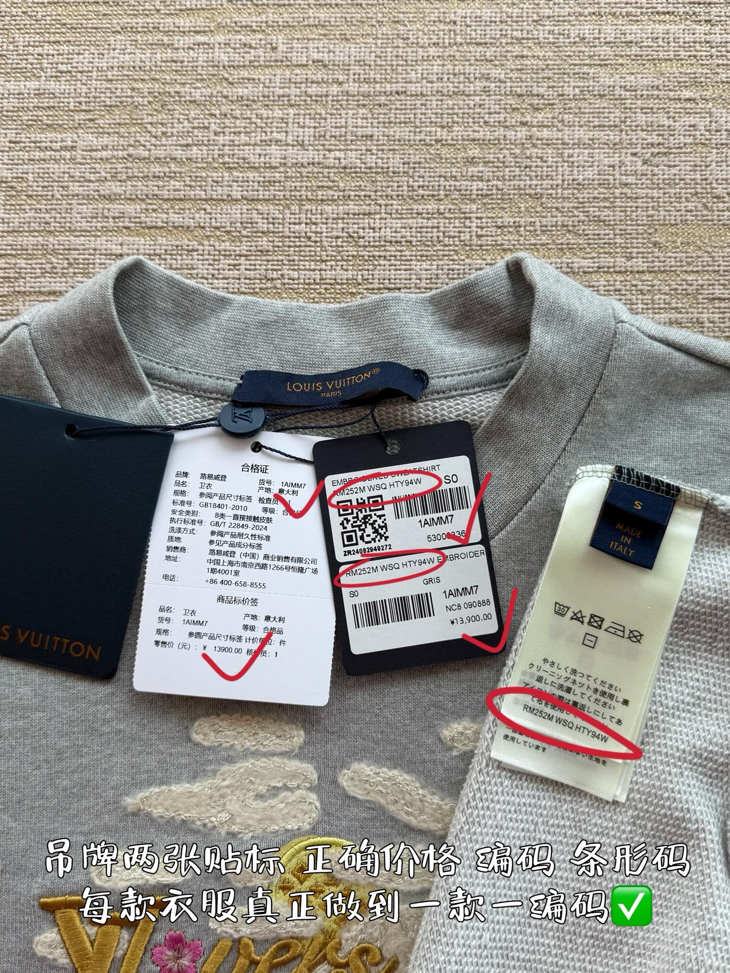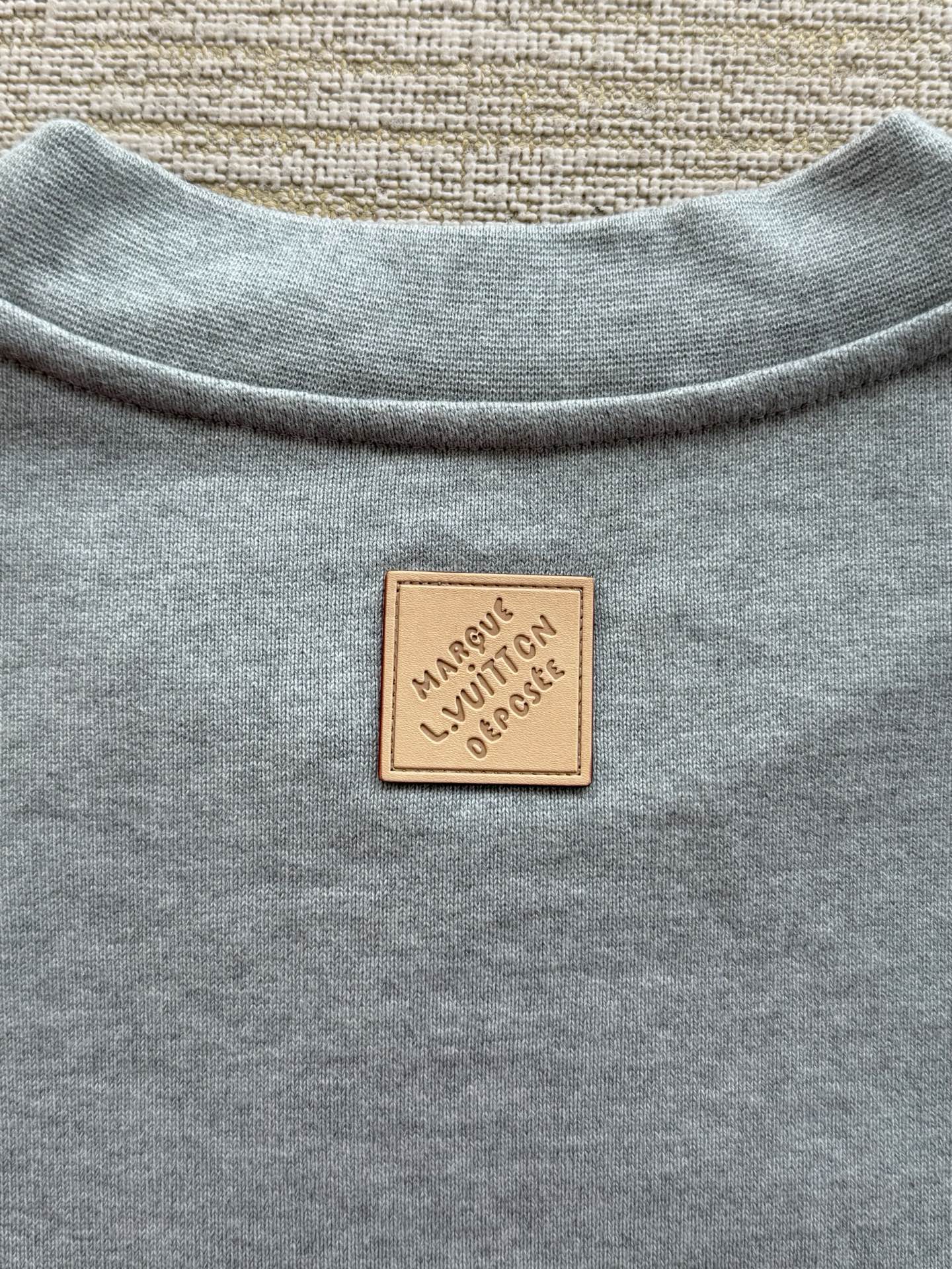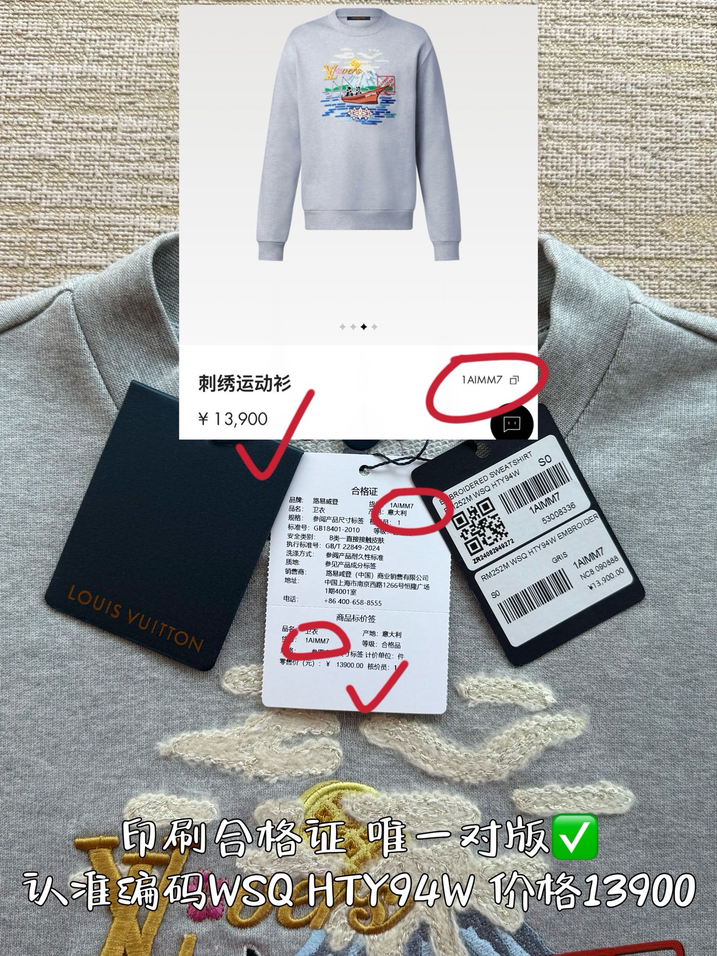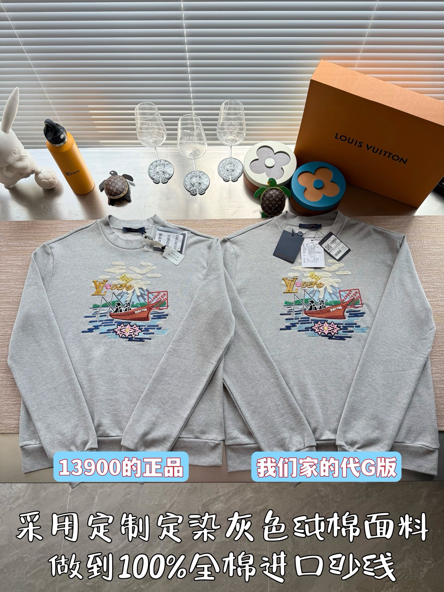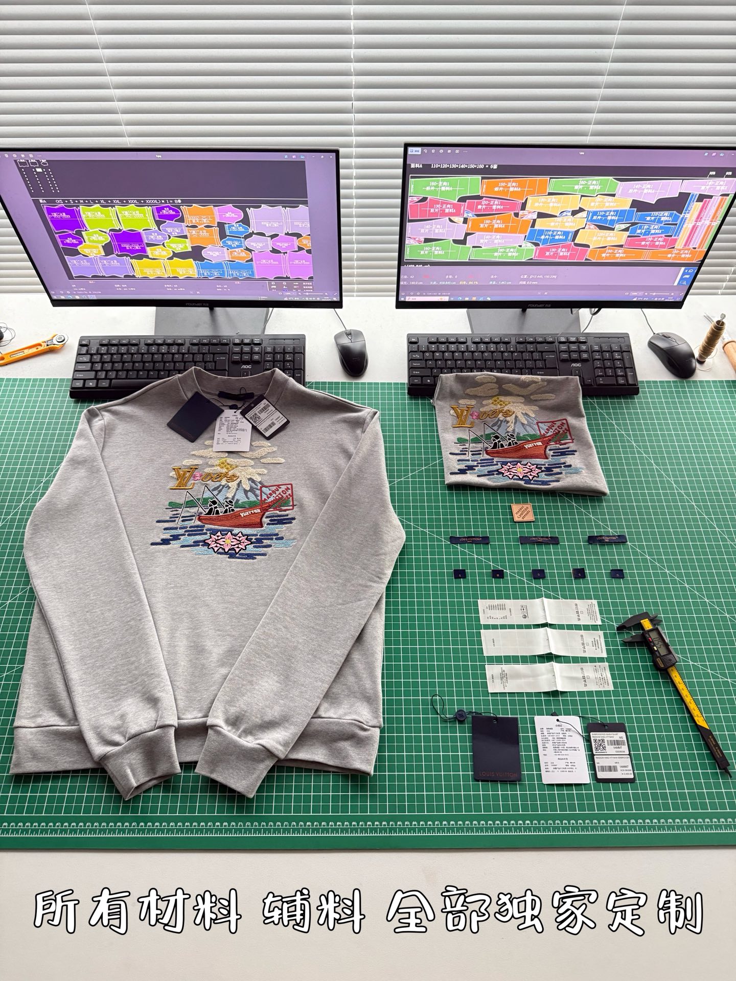 整件衣服13990购买ZP拆解打造,采用定制灰色纯棉面料,做到100%全棉进口纱线,意大利制造,前副饰以LV刺绣图案字母提花