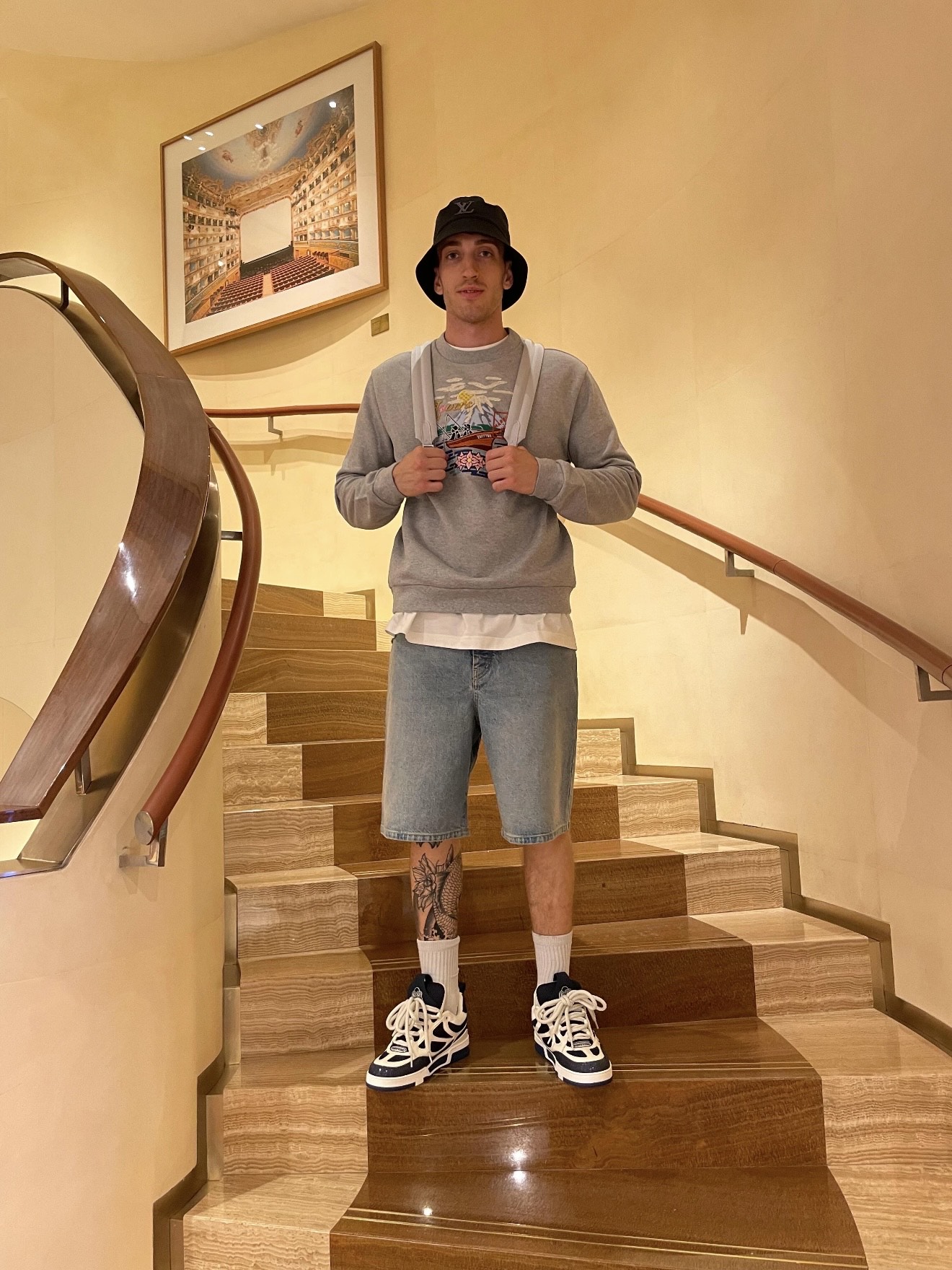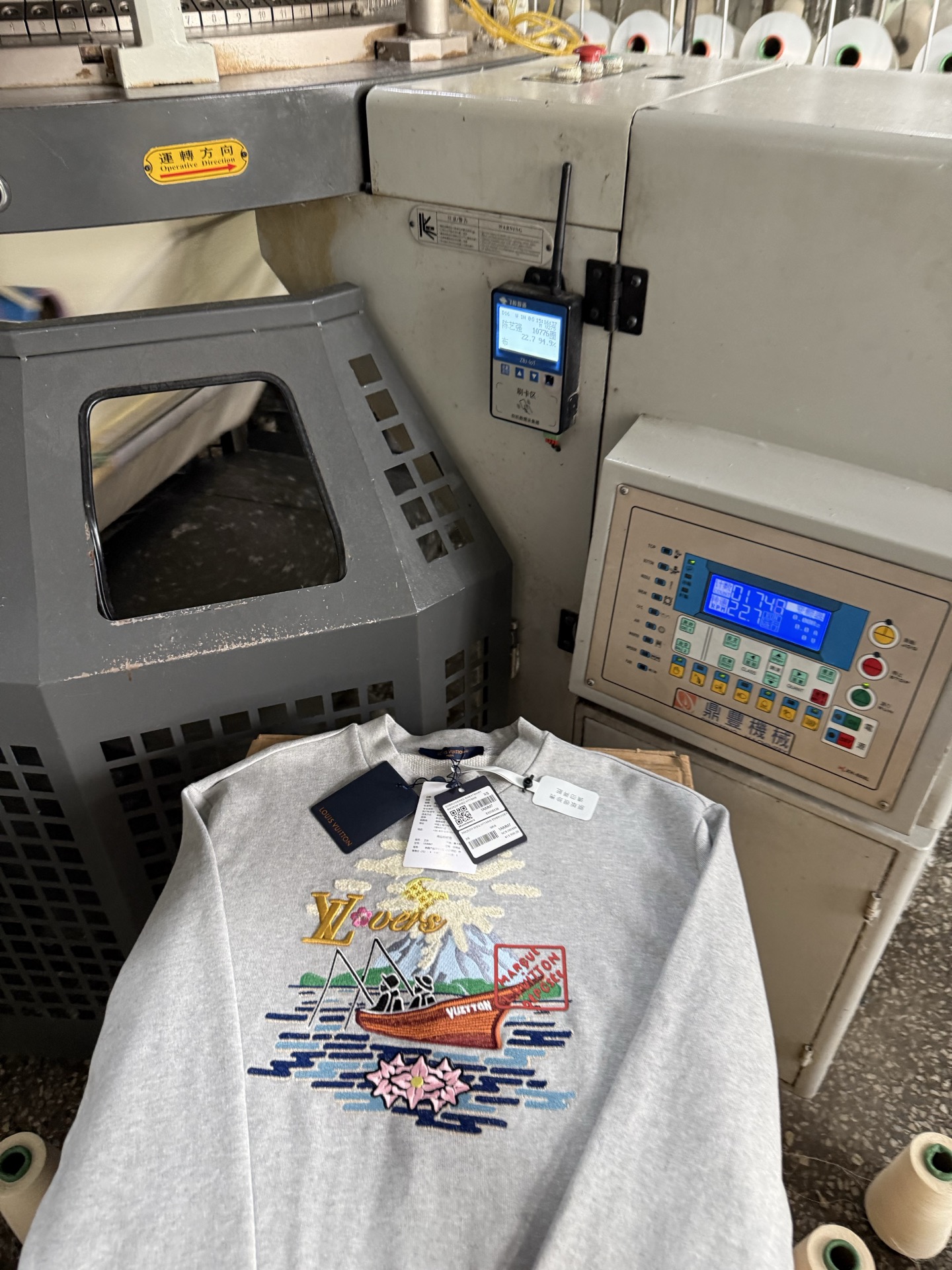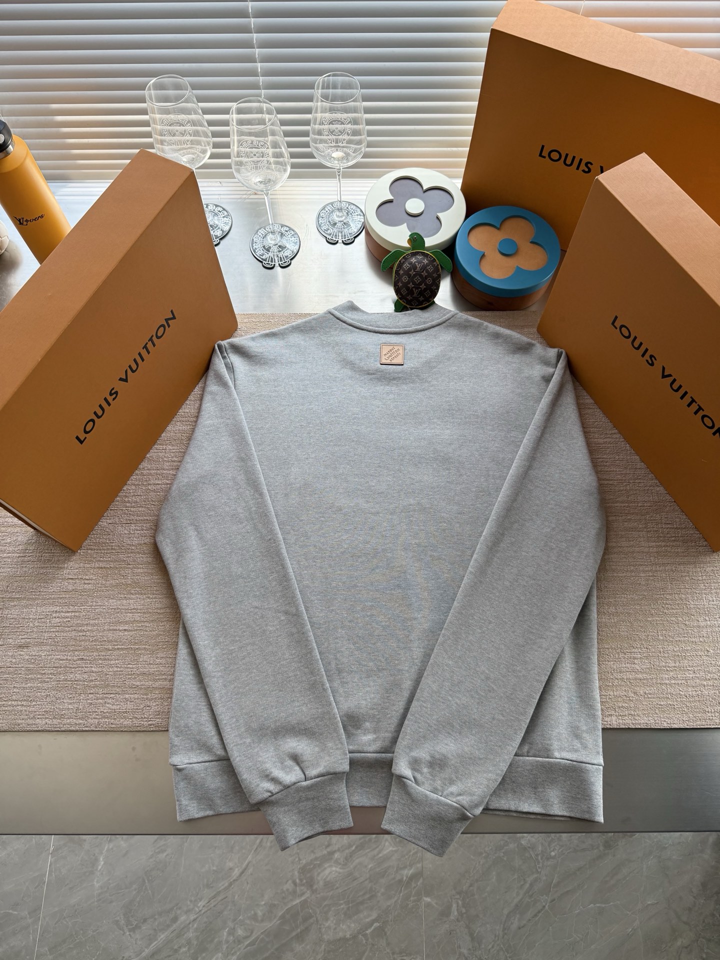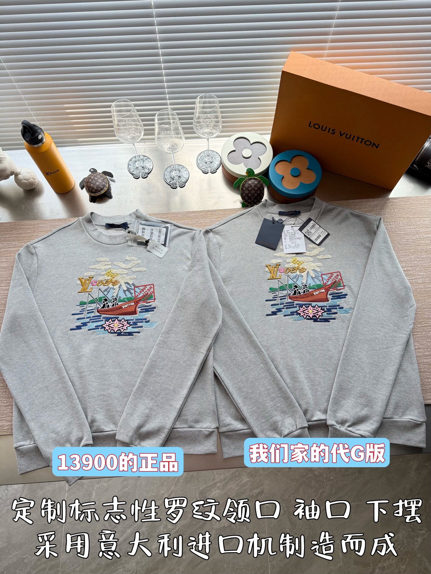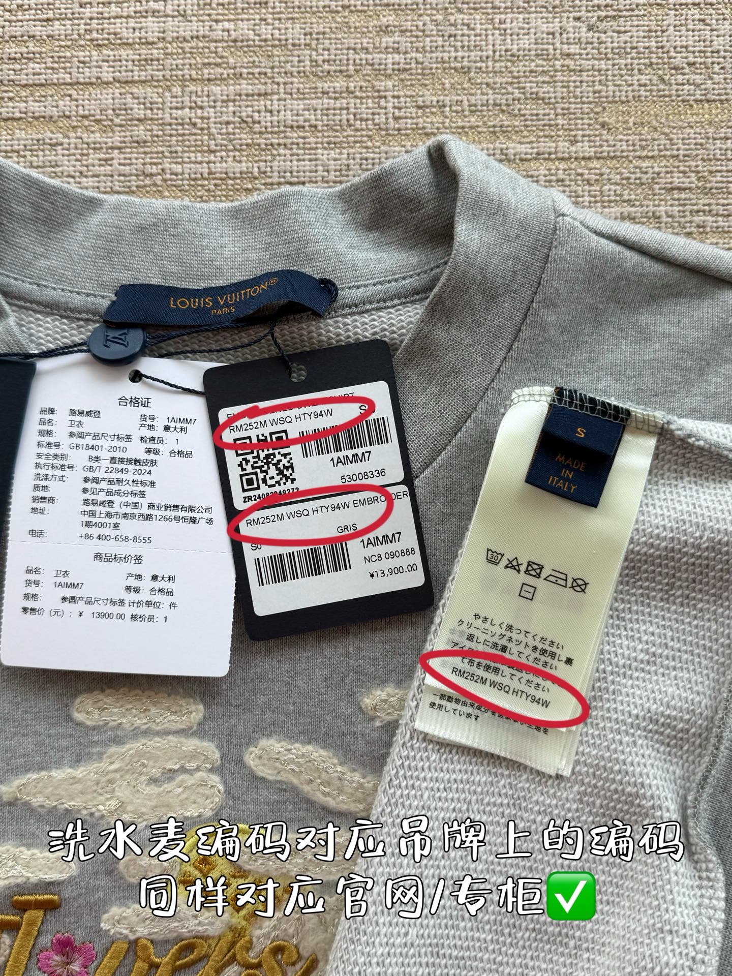 整件衣服13990购买ZP拆解打造,采用定制灰色纯棉面料,做到100%全棉进口纱线,意大利制造,前副饰以LV刺绣图案字母提花