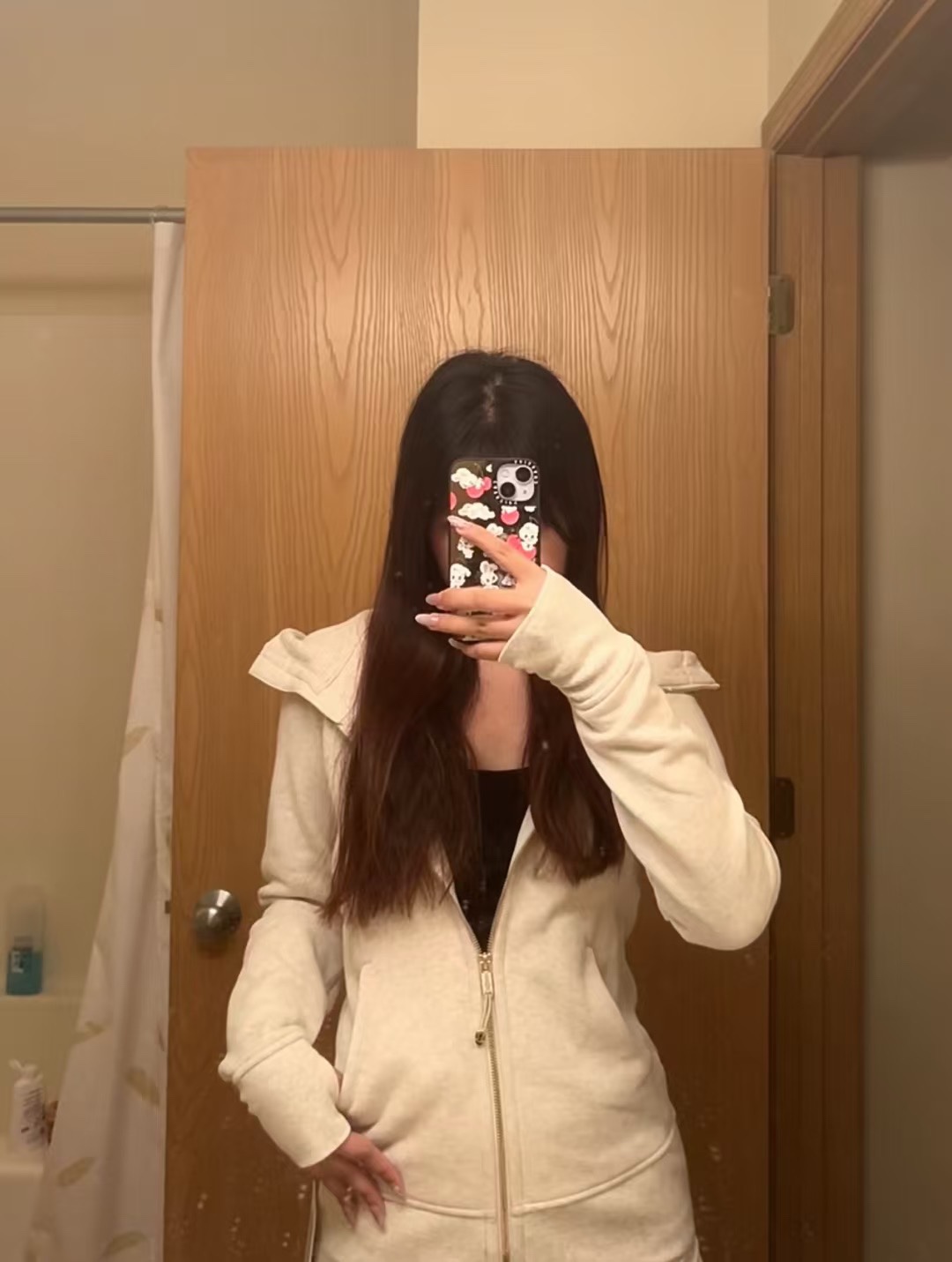 露露 极简风合身开衫拉链纯色加绒舒适简约百搭外套 (EJ)