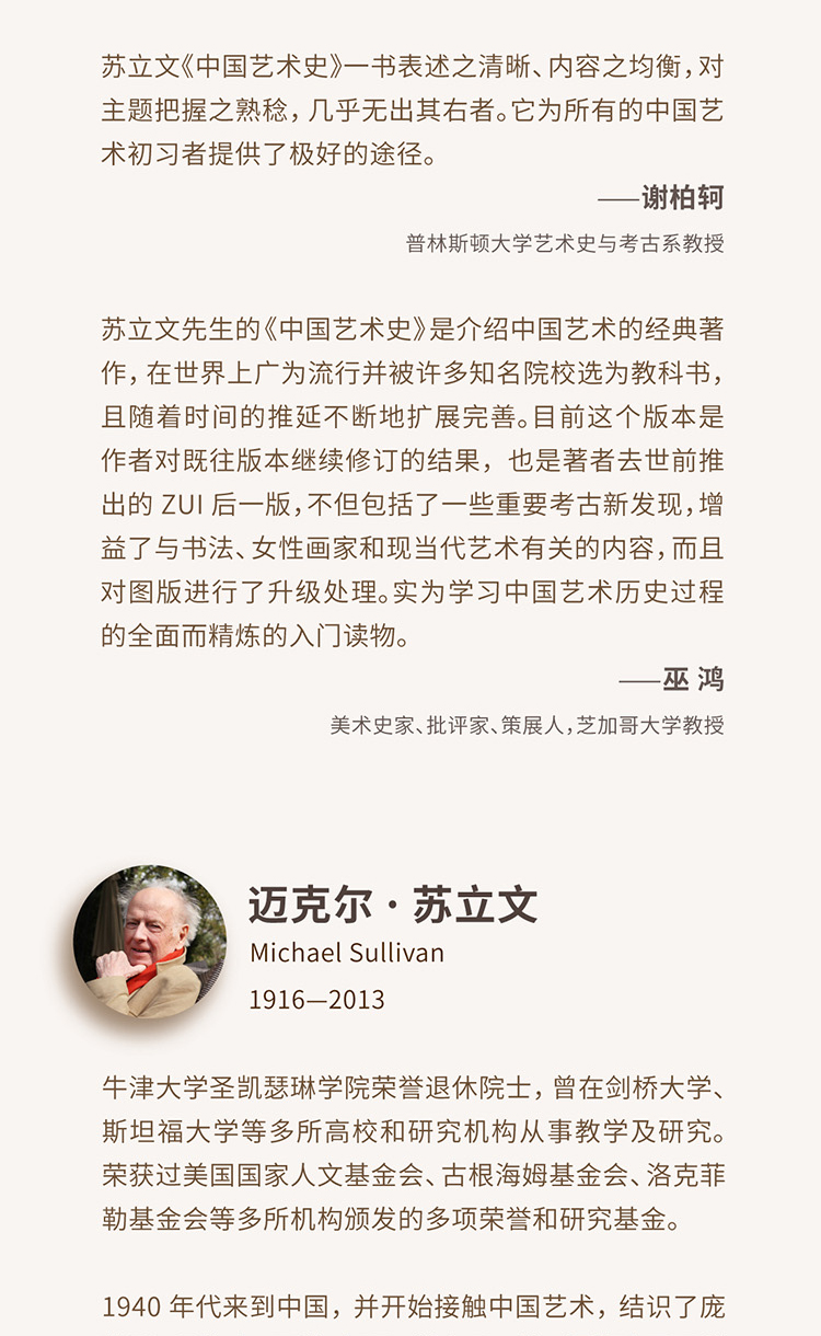 三十多年来《中国艺术史》一直是我的课堂教材,是最好的中国艺术史著述。除了苏立文,没有任何中国艺术史家能拥有如此广泛的知识。