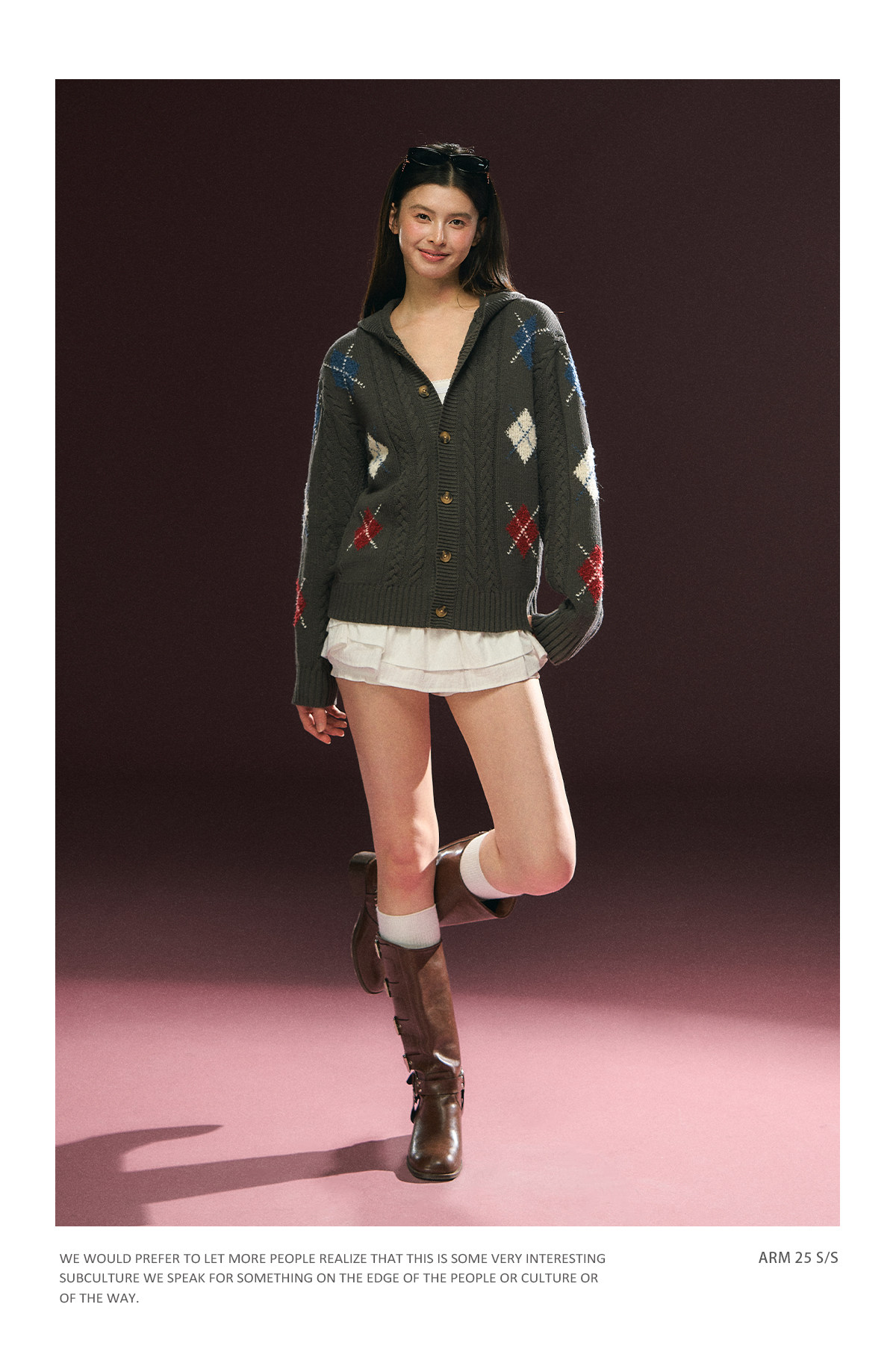 Ariseism美式复古设计感菱格连帽针织开衫毛衣女秋冬新款加厚上衣