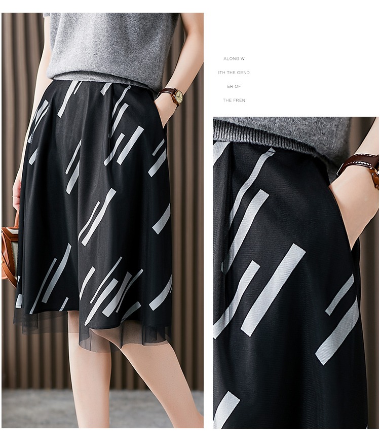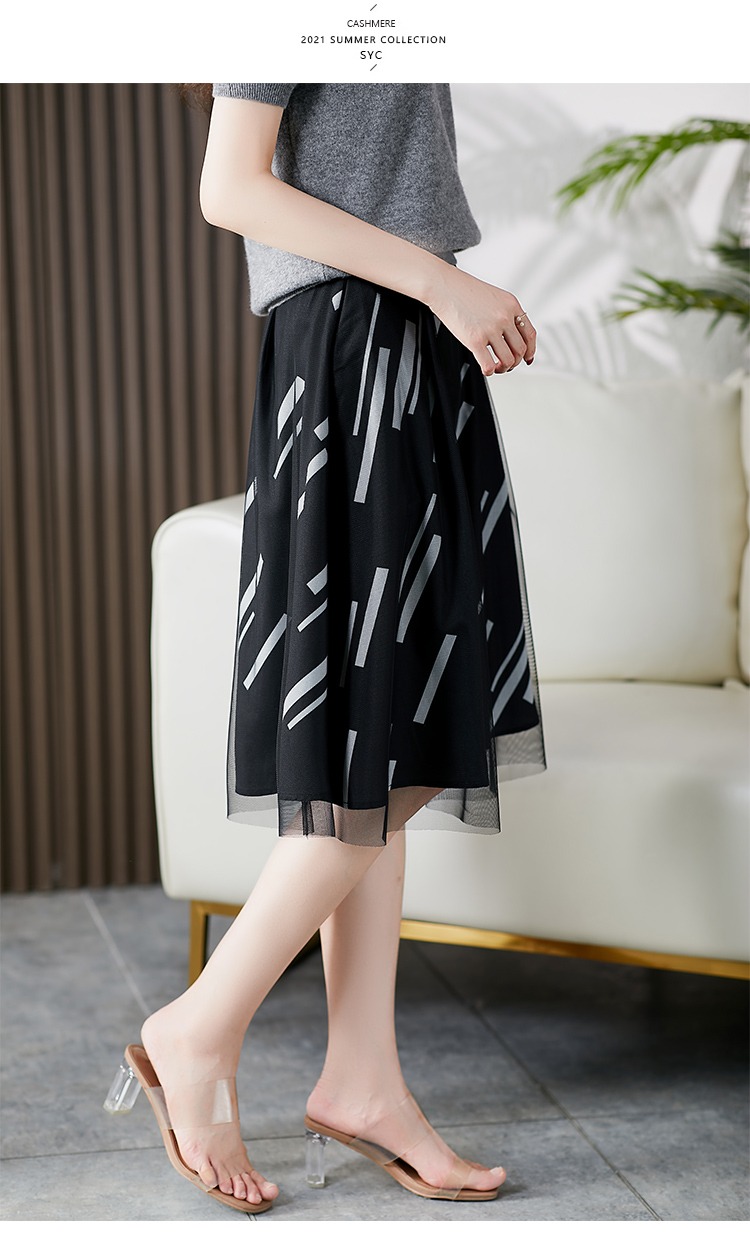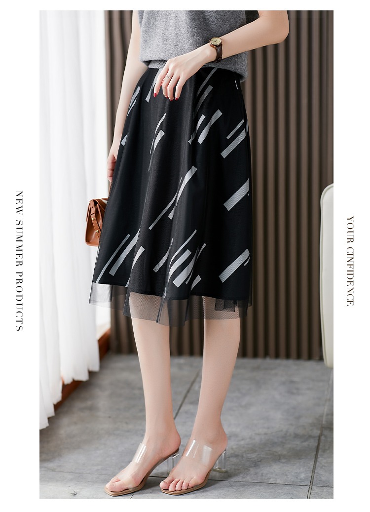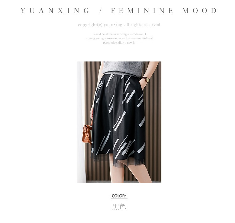 YX【现货7天】条纹网纱半身裙女春夏薄款2024新款百褶裙韩版宽松显瘦裙子