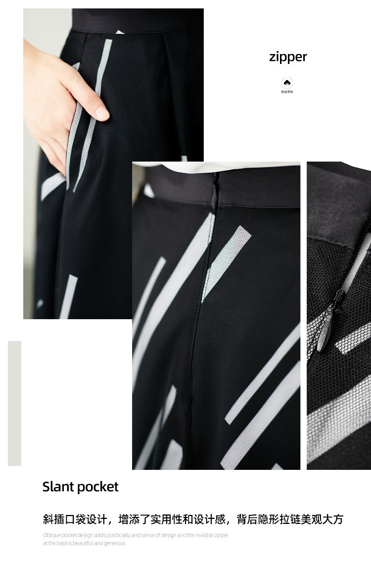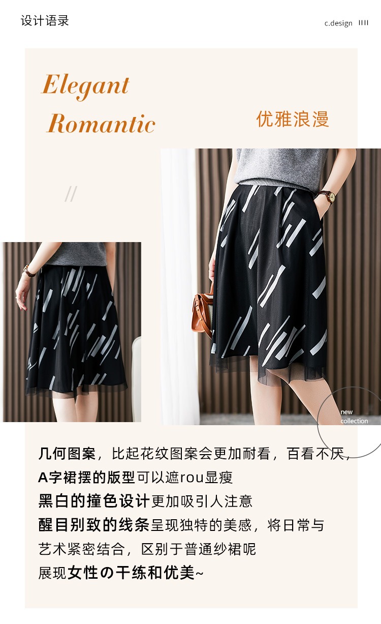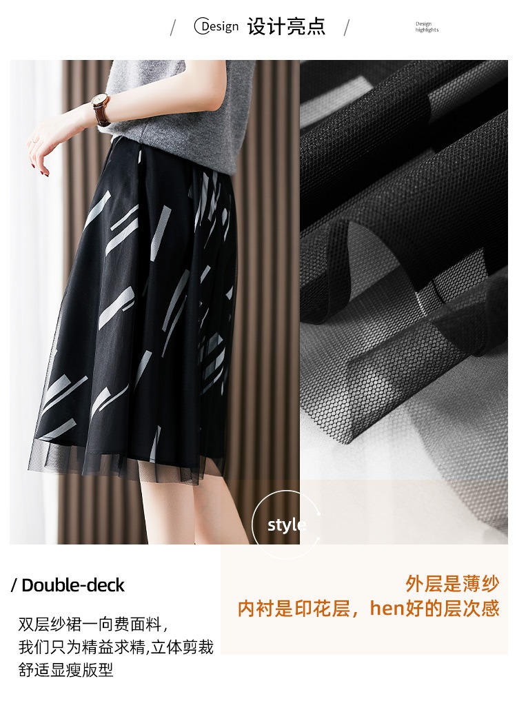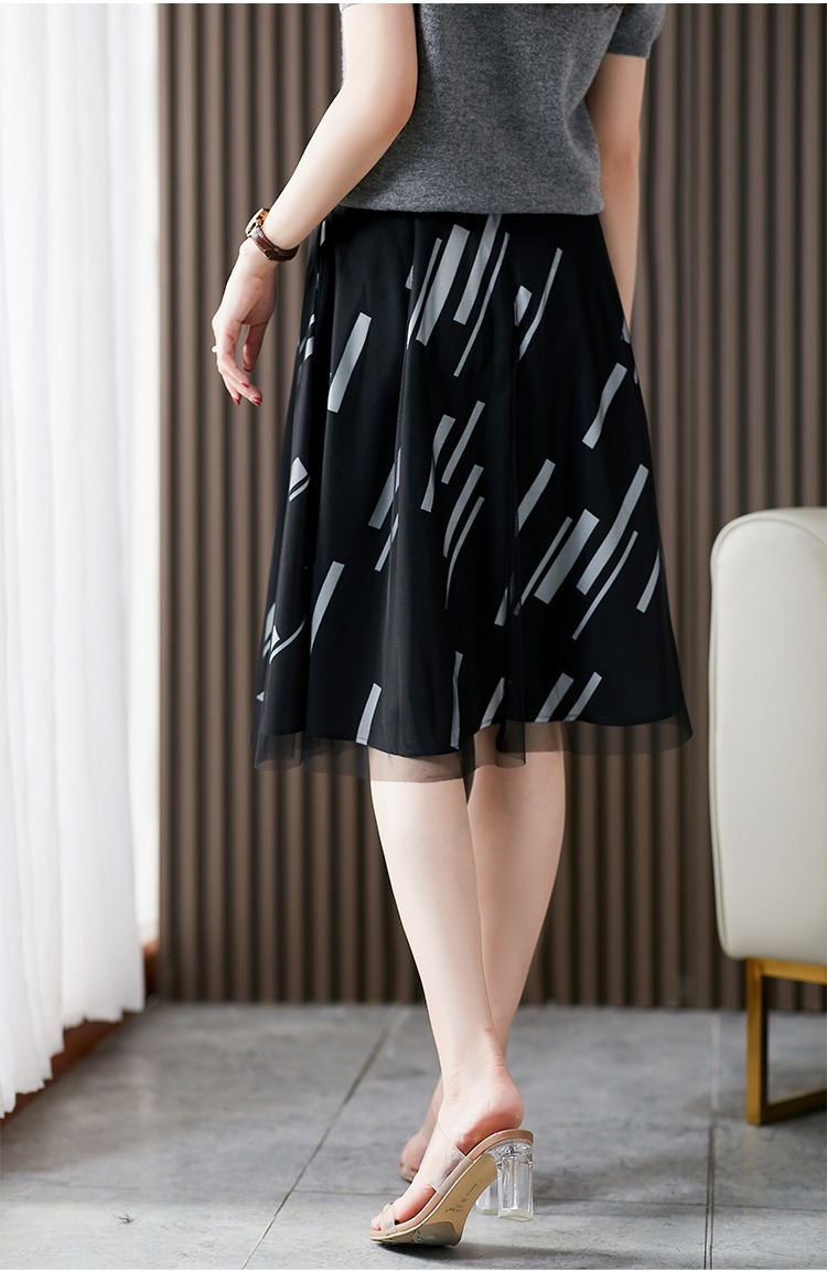 YX【现货7天】条纹网纱半身裙女春夏薄款2024新款百褶裙韩版宽松显瘦裙子