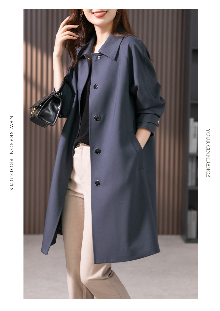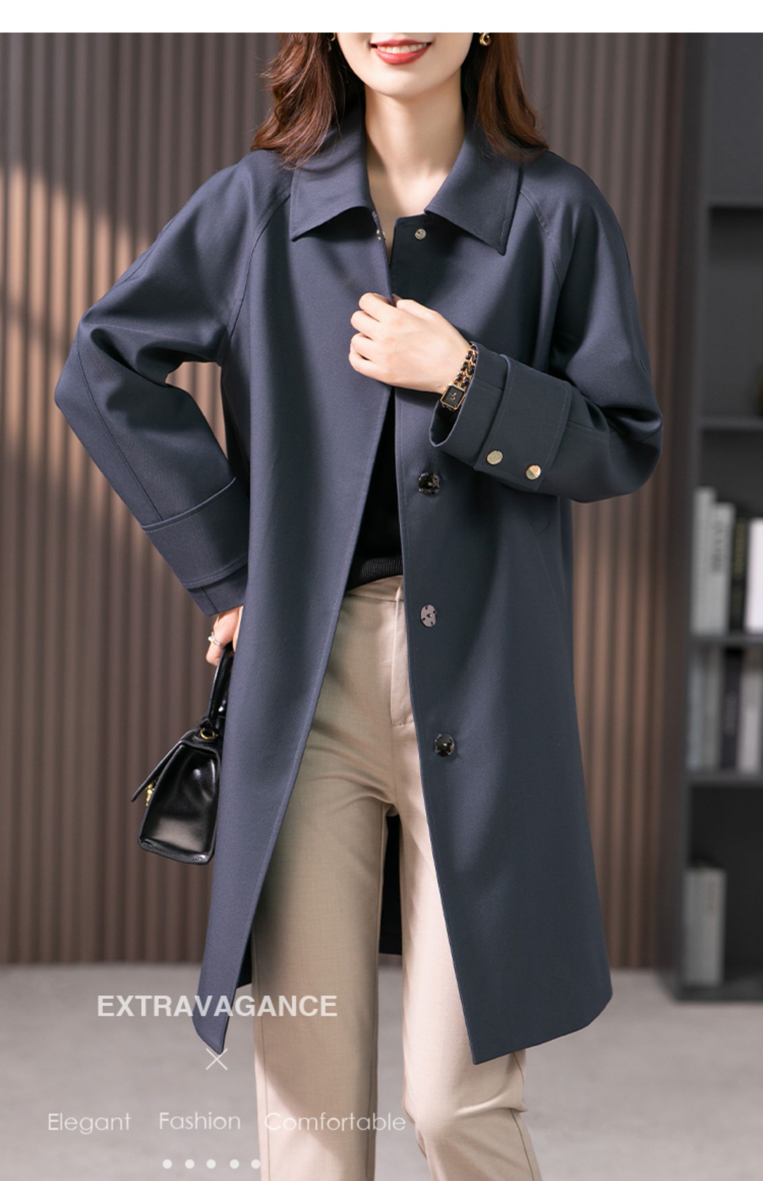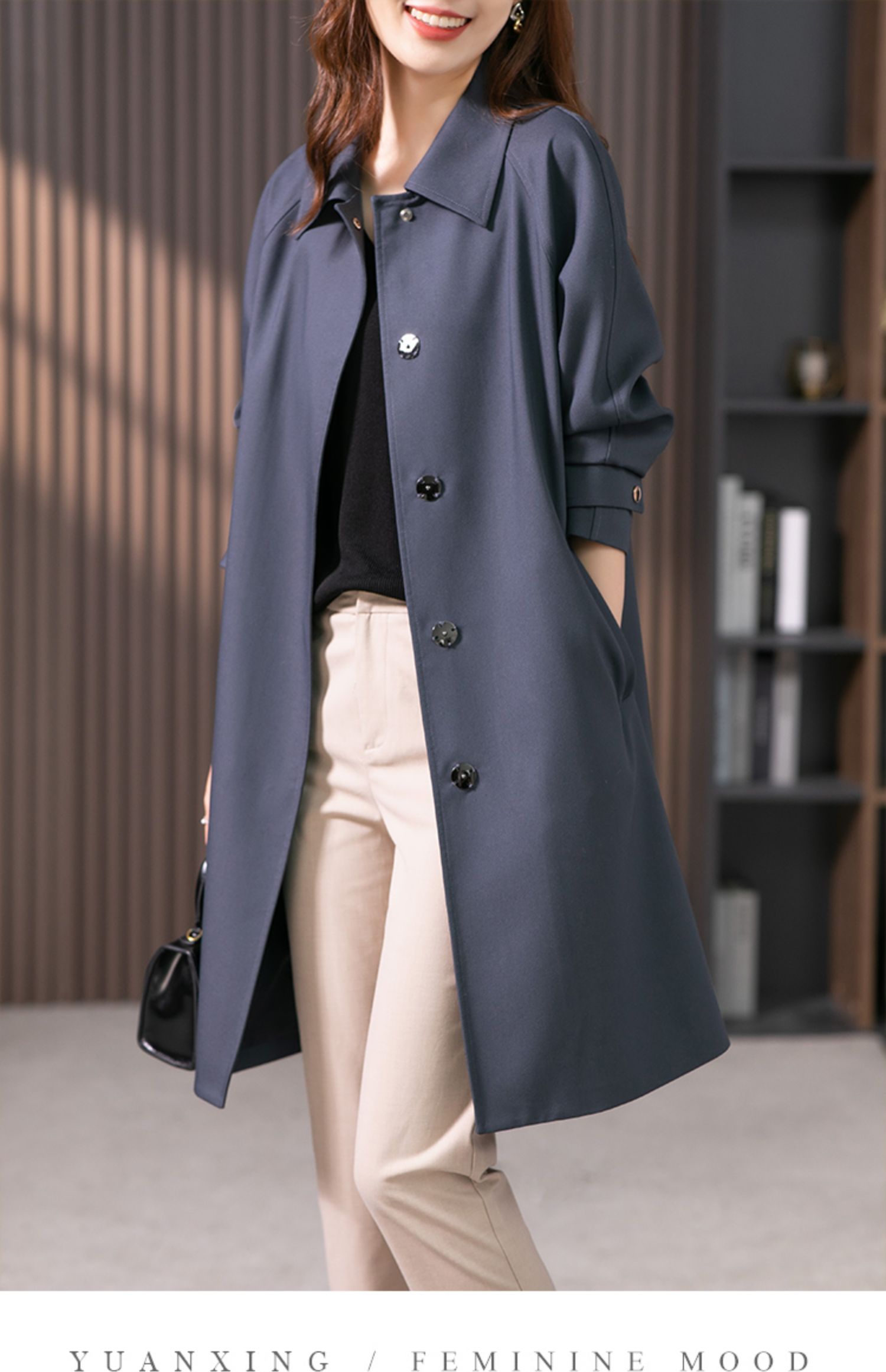 UG【现货7天】风衣女中长款小个子英伦风2023秋季新款休闲过膝显瘦外套大衣