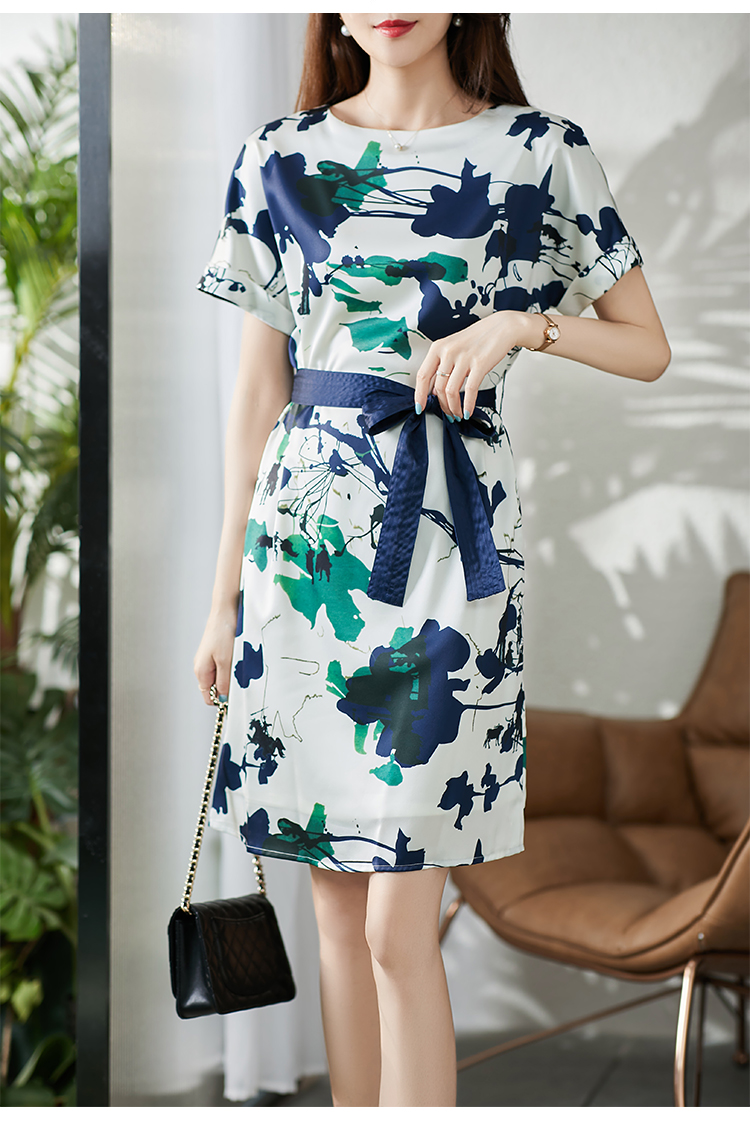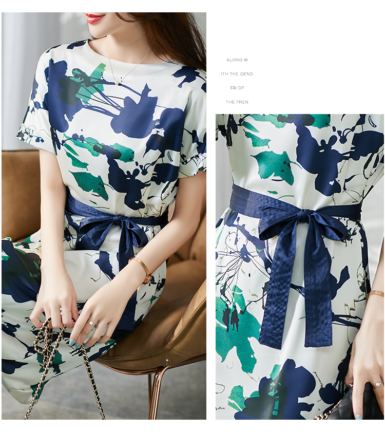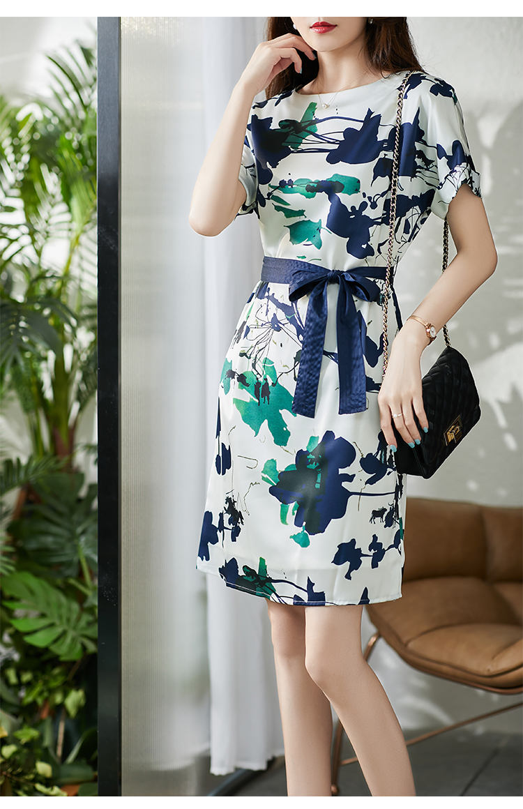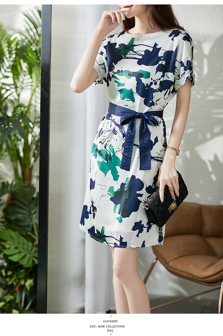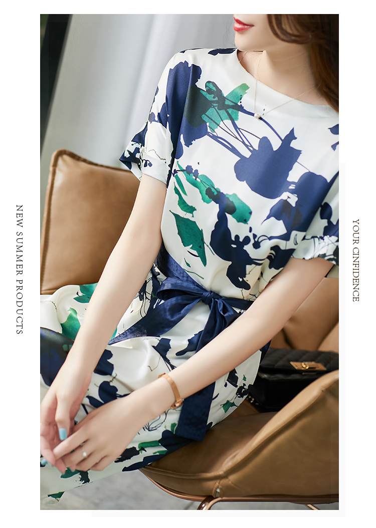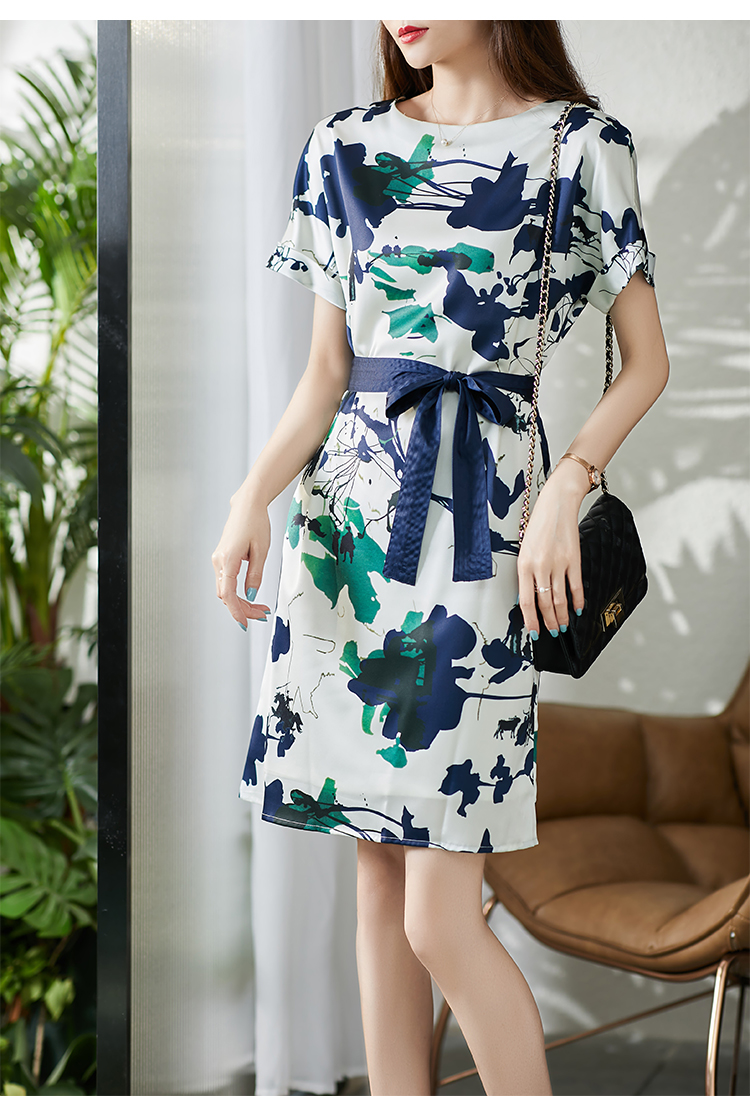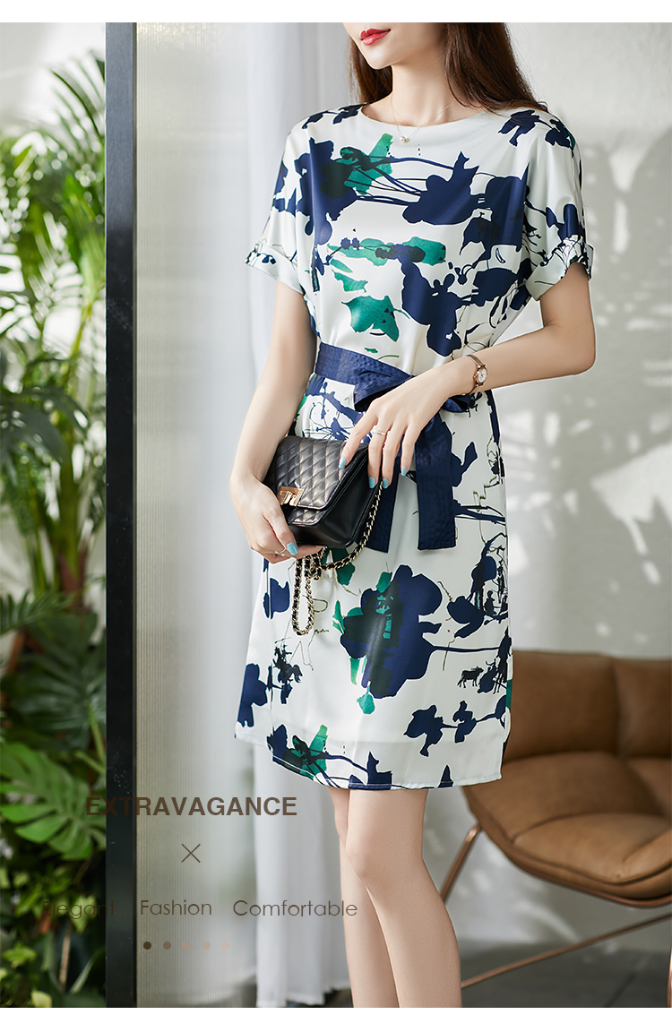 UG【现货7天】不规则气质印花连衣裙女新款2023夏季收腰直筒裙显瘦百搭裙子