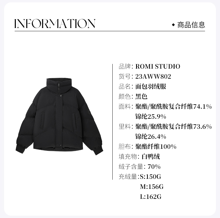 ROMI STUDIO“基础灵魂”90白鹅绒腔调穿搭衔缝面包羽绒服 23AWW802