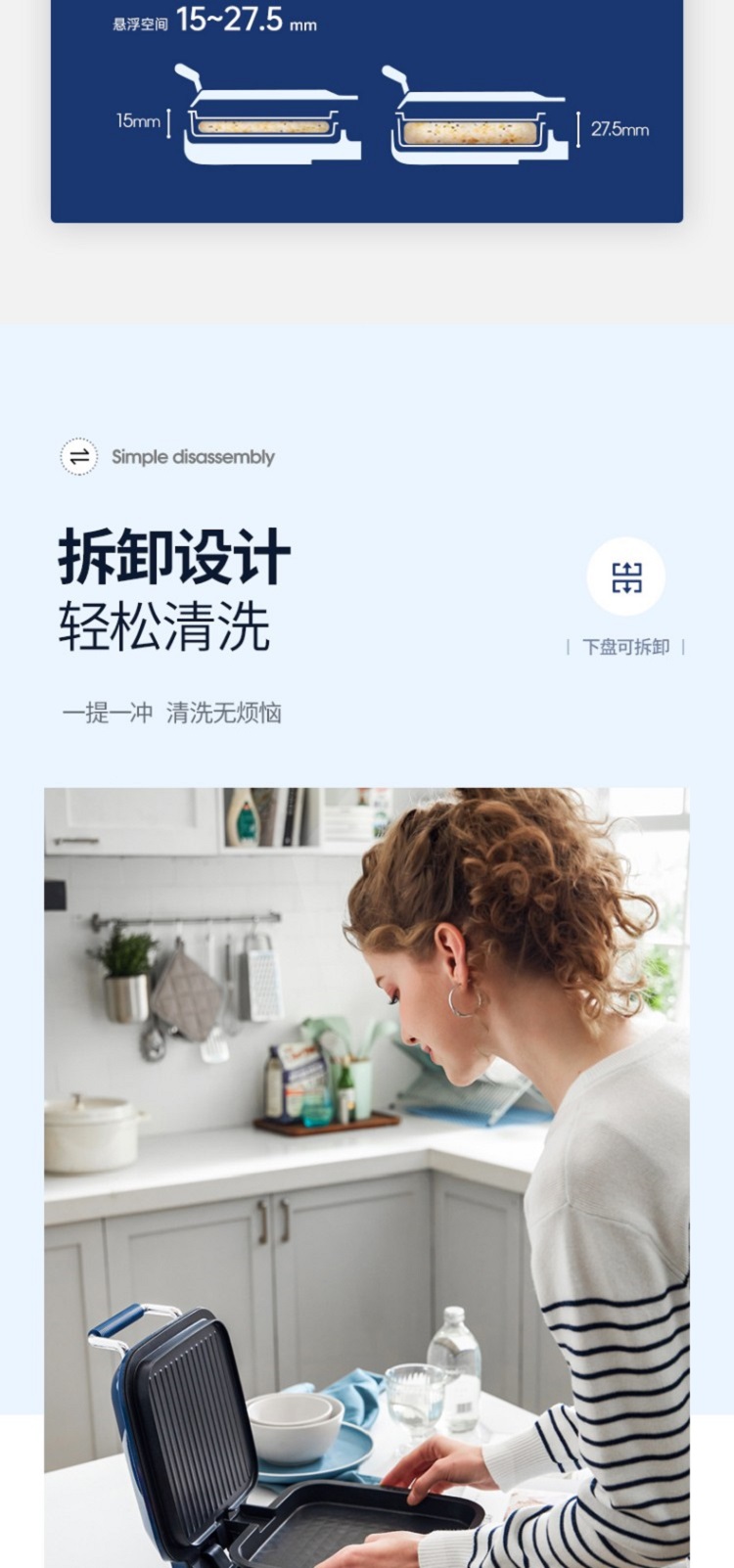 摩飞电器(Morphyrichards)电饼铛 家用双面加热大火力三明治早餐机 下盘可拆卸面包吐司煎烤机烙饼锅 MR8600清新绿