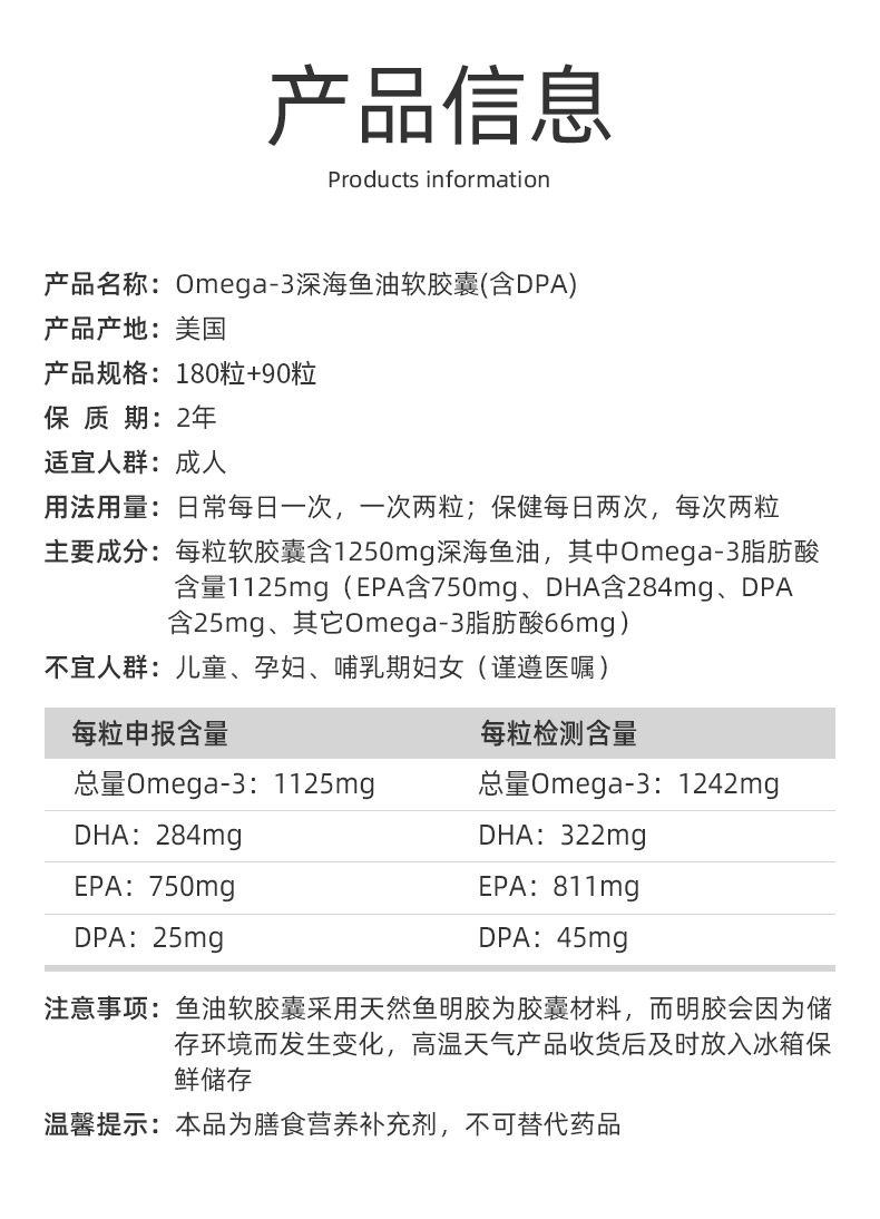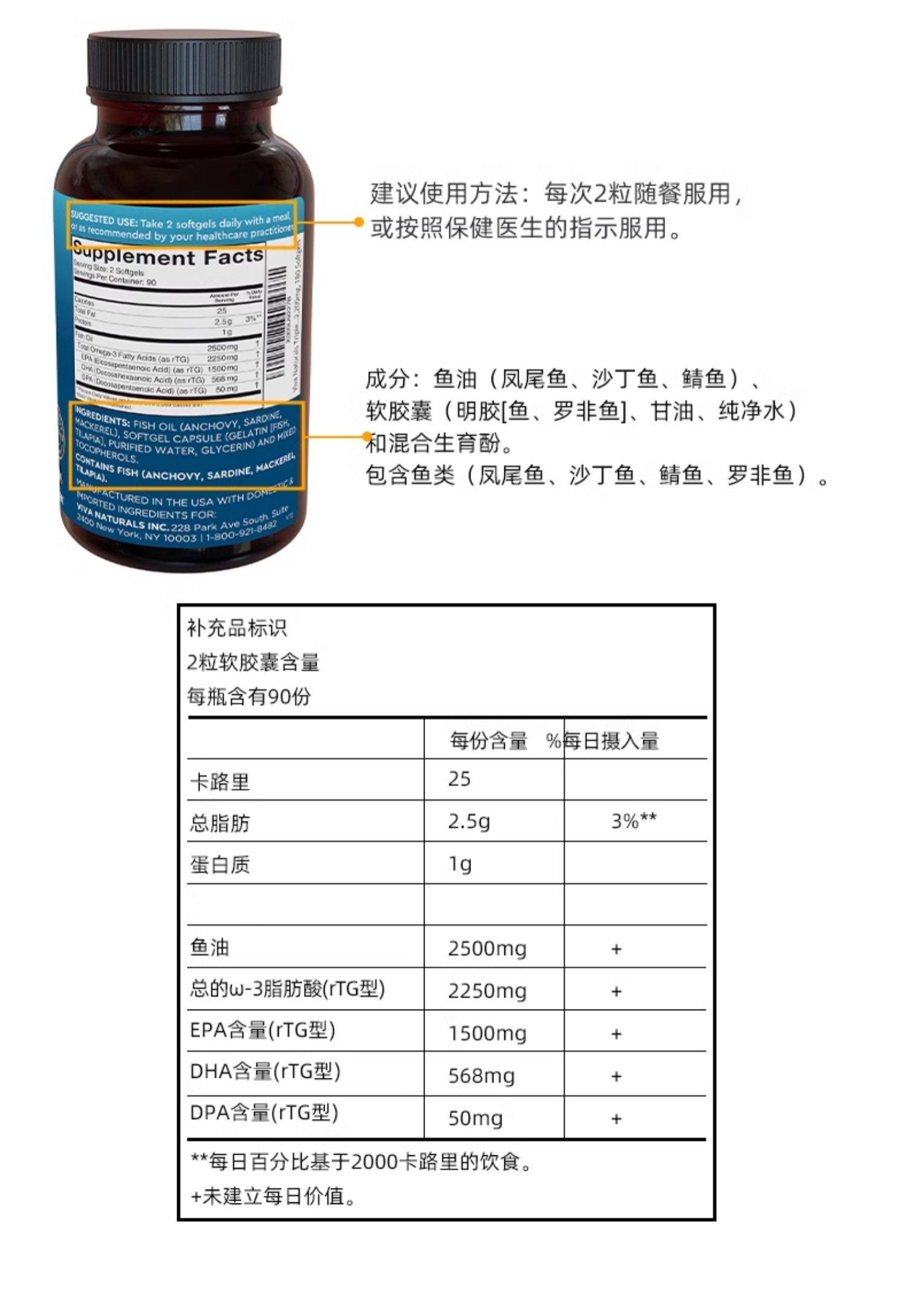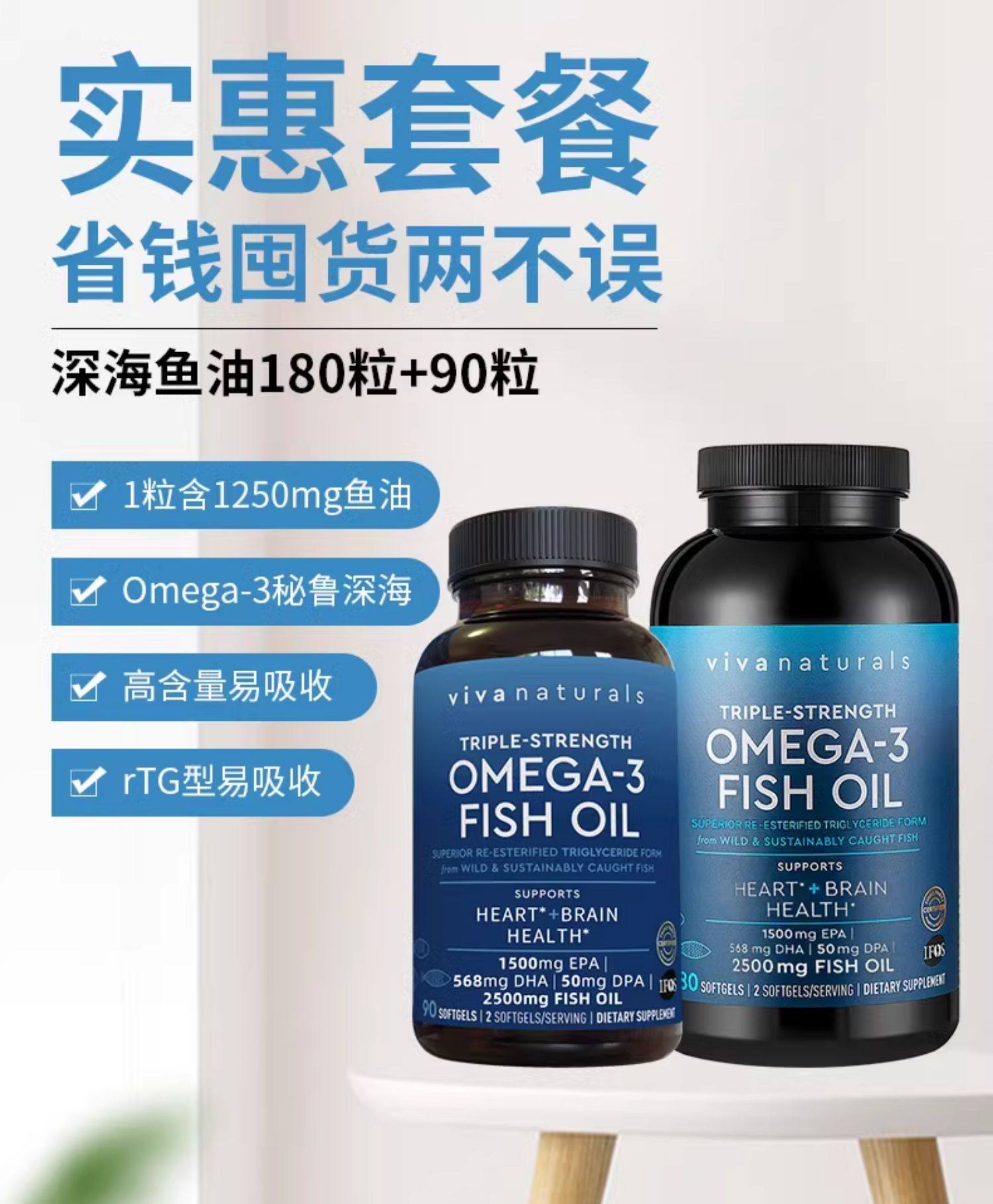 Viva美国进口DPA深海鱼油omega3欧米伽3软胶囊90粒+180粒组合