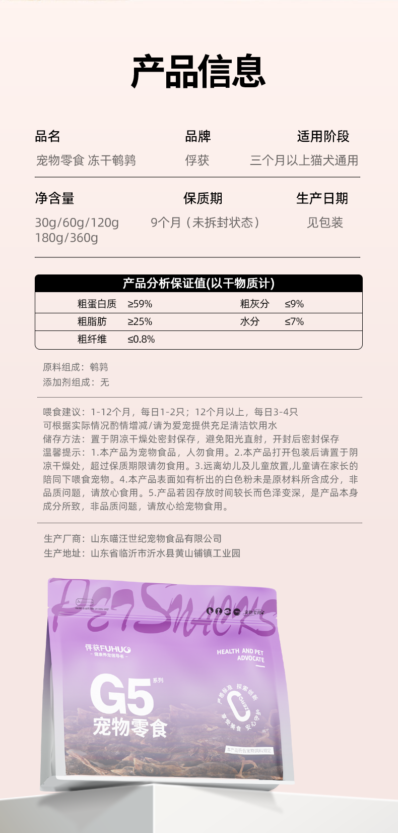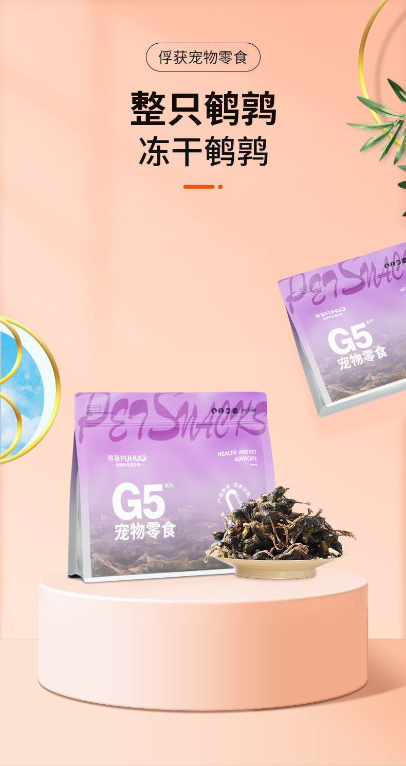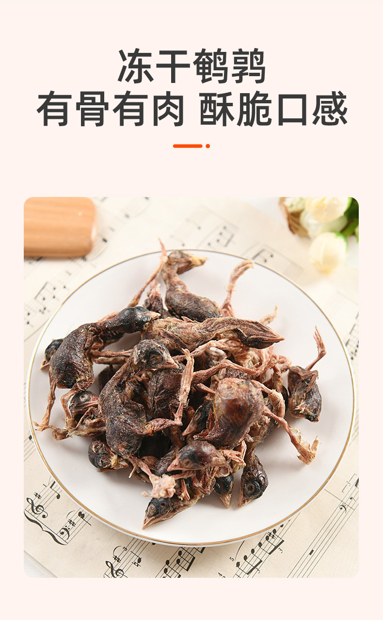 【俘获好礼】俘获G5冻干鹌鹑整只生骨肉成幼猫狗狗小鹌鹑营养磨牙零食