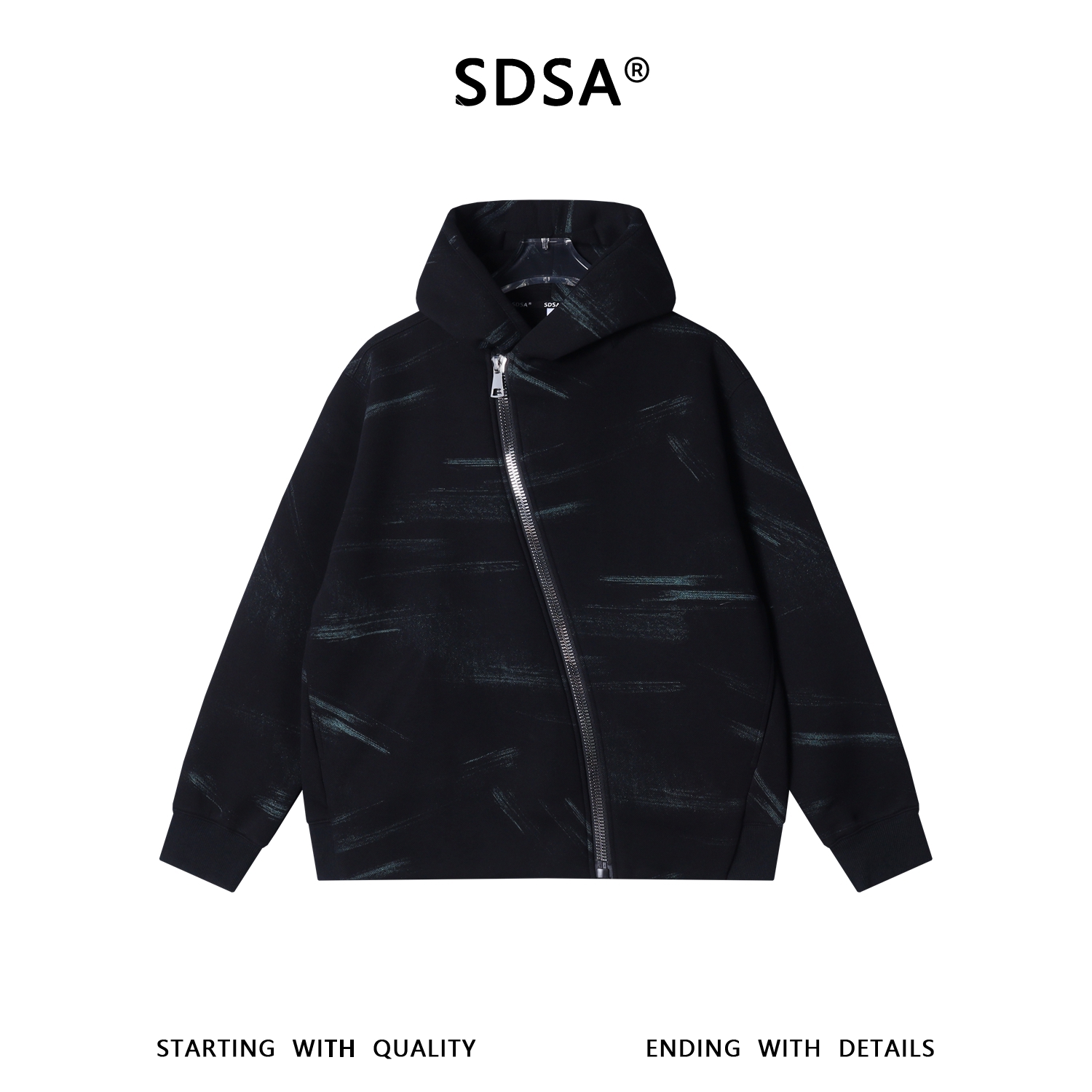 WT300SDSA男士秋冬新款痞帅男装潮牌撞色印花斜拉链连帽卫衣百搭时尚