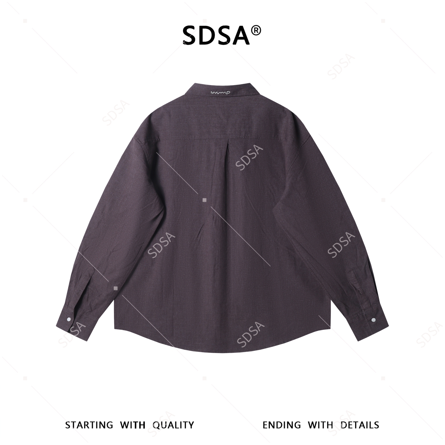 33270SDSA男士秋冬新款痞帅男装极简风刺绣衬衫长袖宽松纯色老钱风百搭