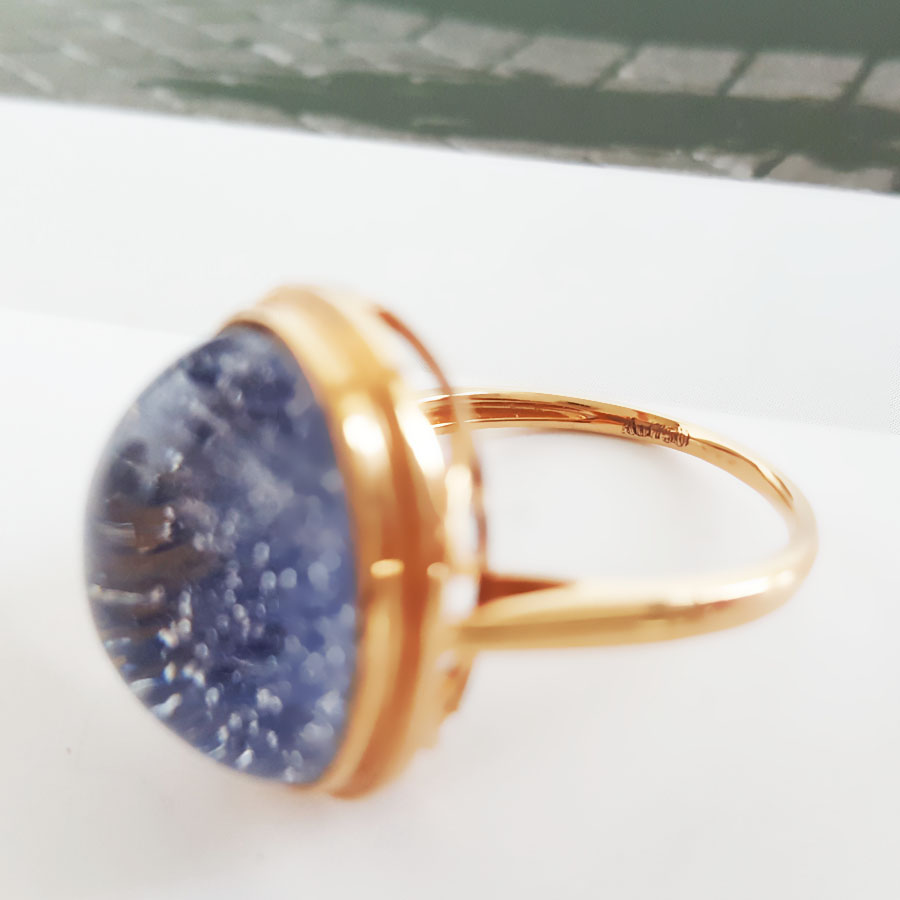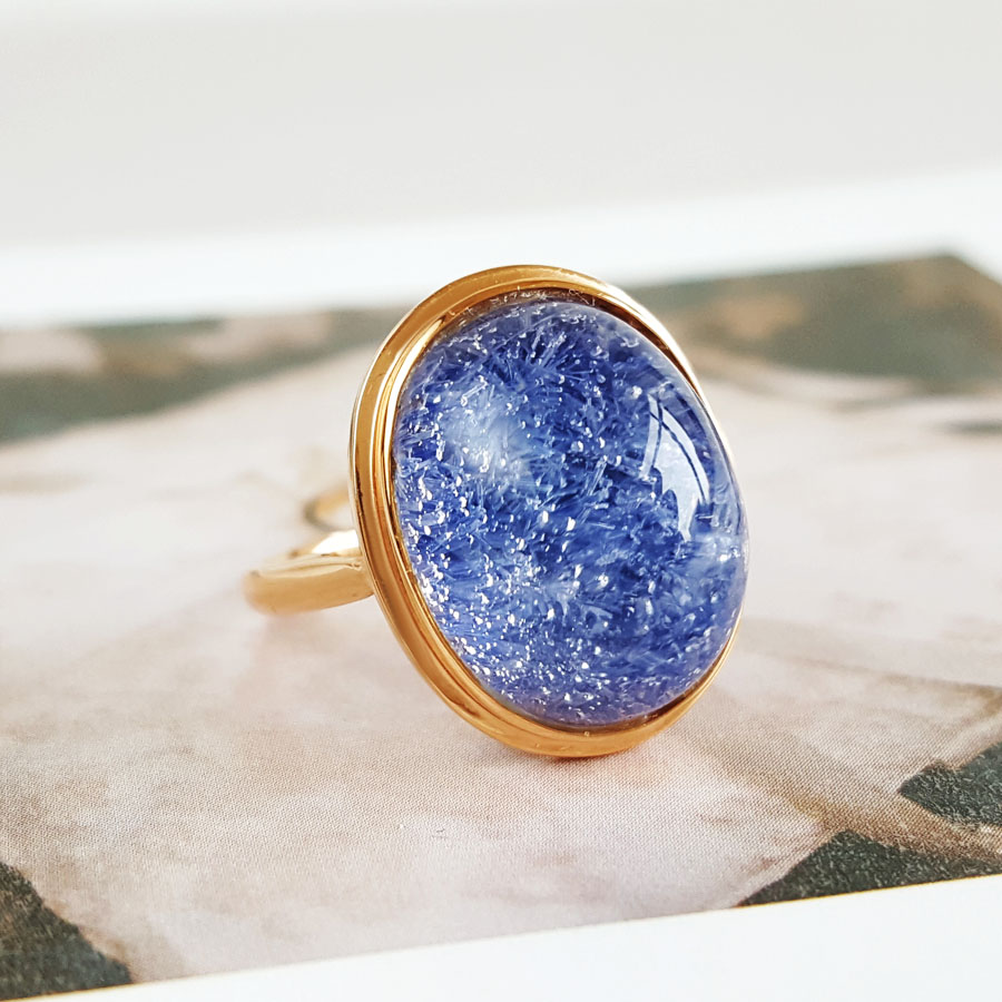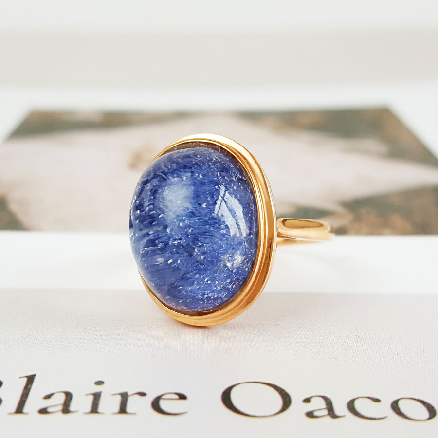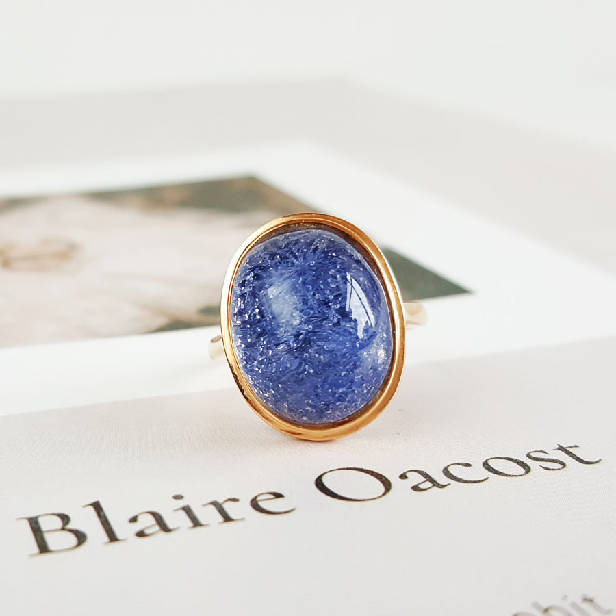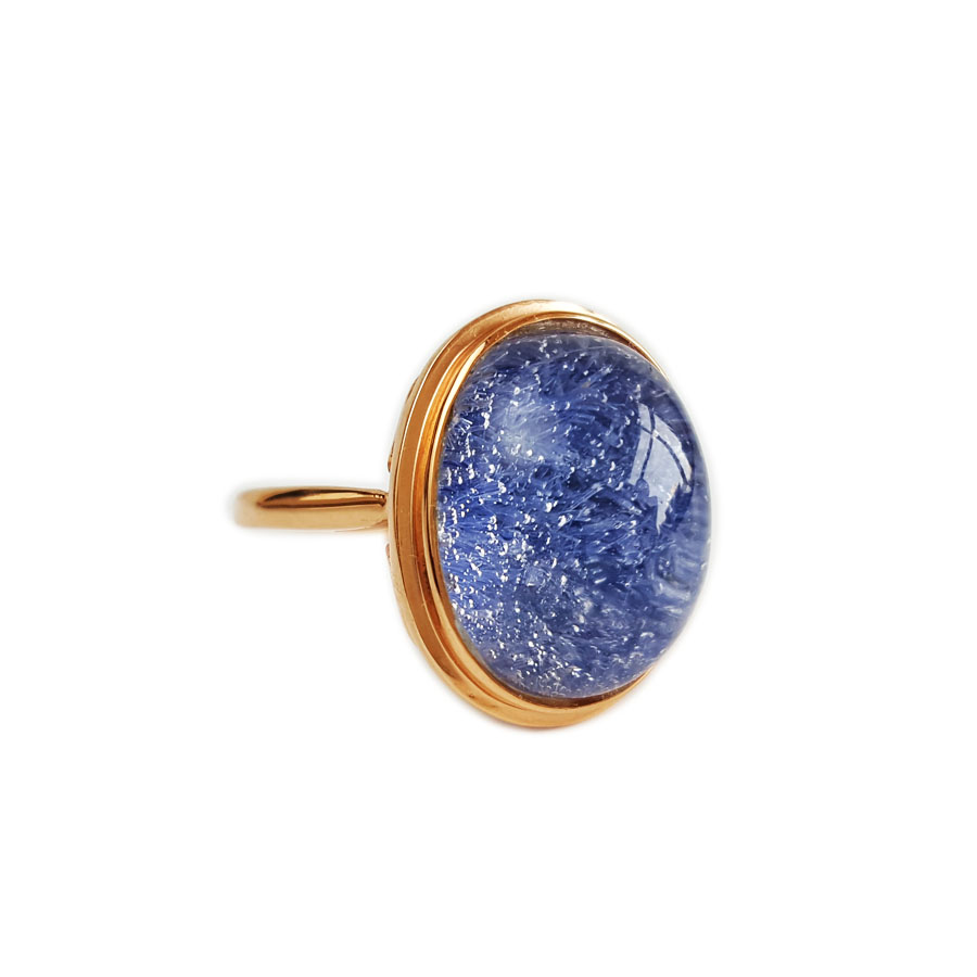 名称 | AU750玫瑰金镶天然蓝发晶蛋面水晶戒指 |
