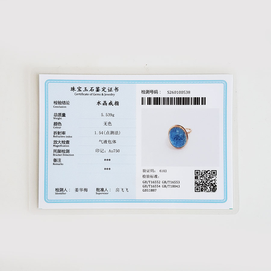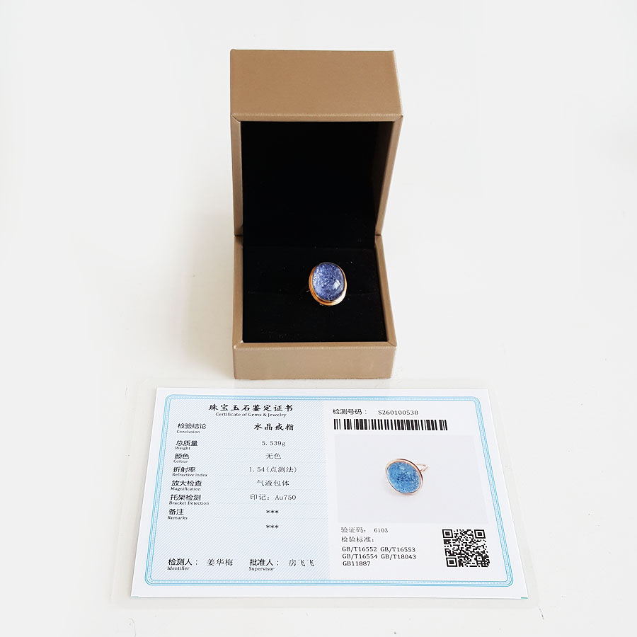 【天然正品】AU750玫瑰金镶天然蓝发晶蛋面水晶戒指15.2*12.2MM(皆取最大值)13.5号(戒圈可改)100126NJT07