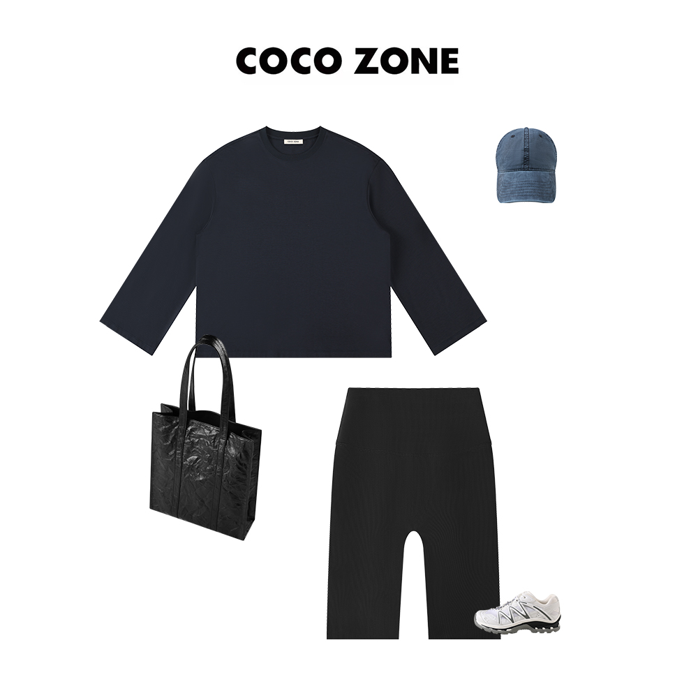 COCO ZONE“简约”圆领长袖T恤宽松版型罗纹领口 23C19143