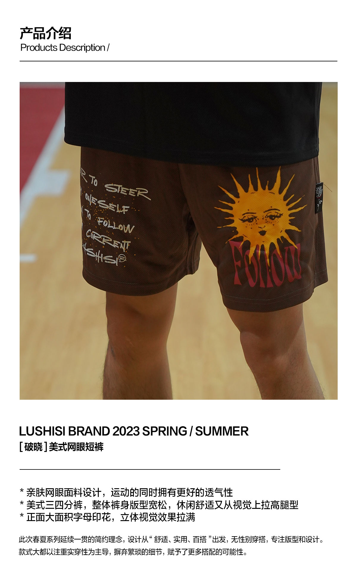 LUSHISI[破晓]篮球美式短裤男夏季运动训练网眼速干四分复古球裤