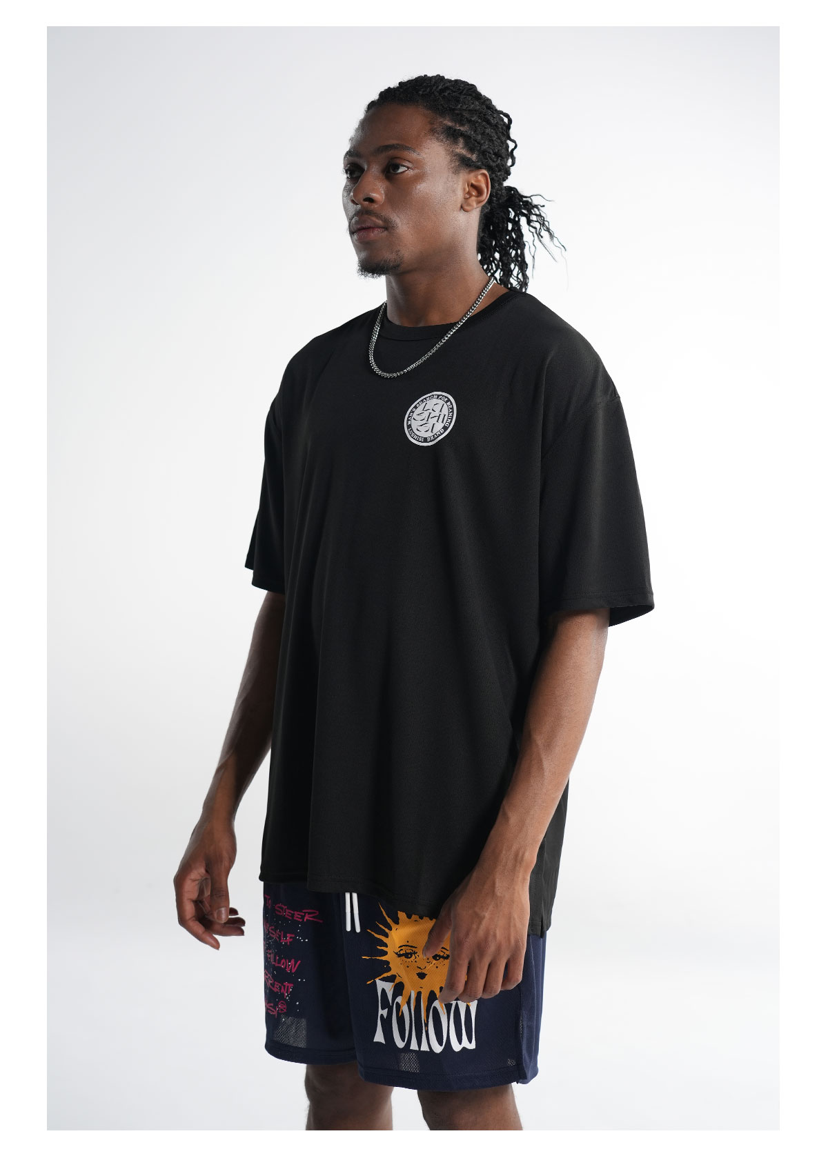 LUSHISI[花束]印花速干短袖美式篮球训练服t恤跑步冰丝圆领投篮服