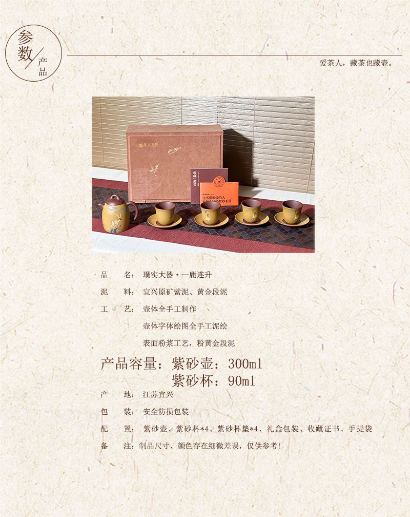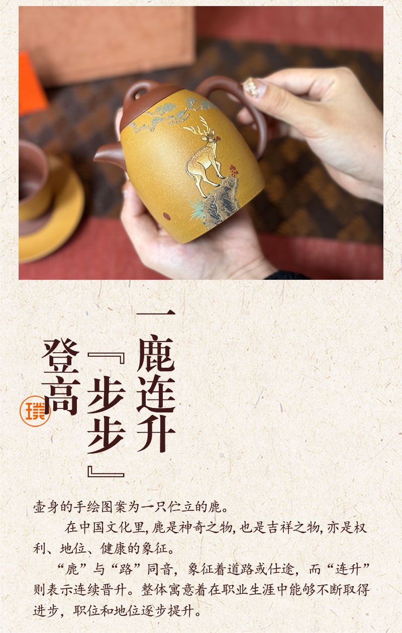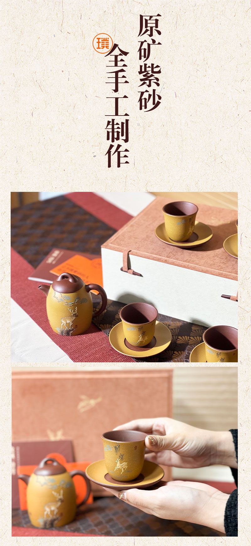 璞实大器一鹿连升原矿紫砂壶9件套装马晓君大师作品全手工制作