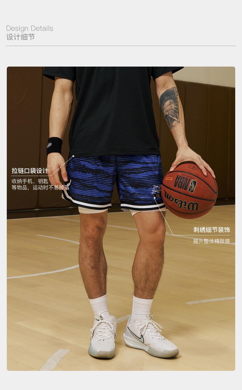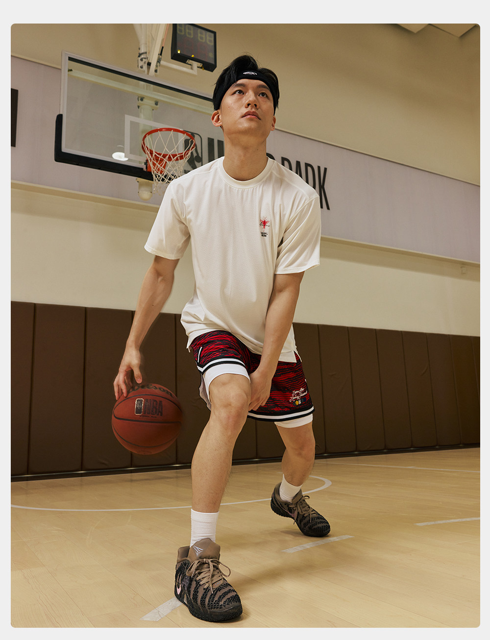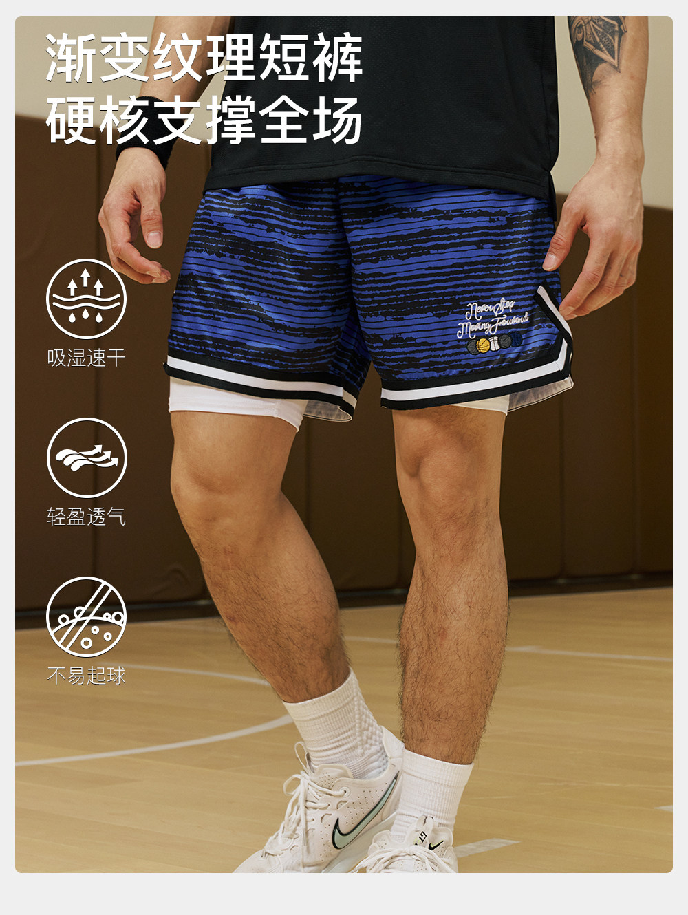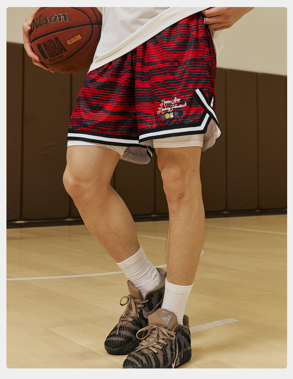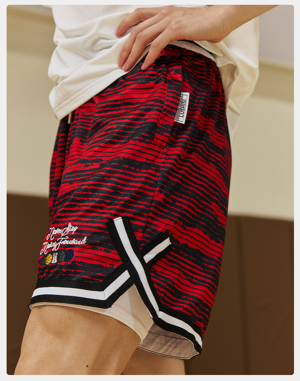 录士LUSHISI条纹主题红色篮球短裤美式四分裤吸湿排汗舒适透气