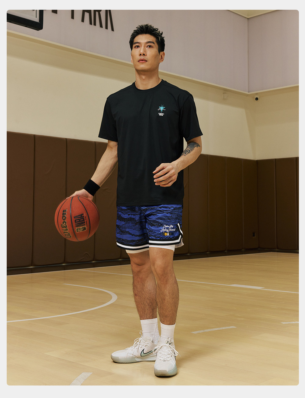LUSHISI深蓝色[涂鸦]美式篮球t恤速干短袖街头运动潮牌投篮服圆领