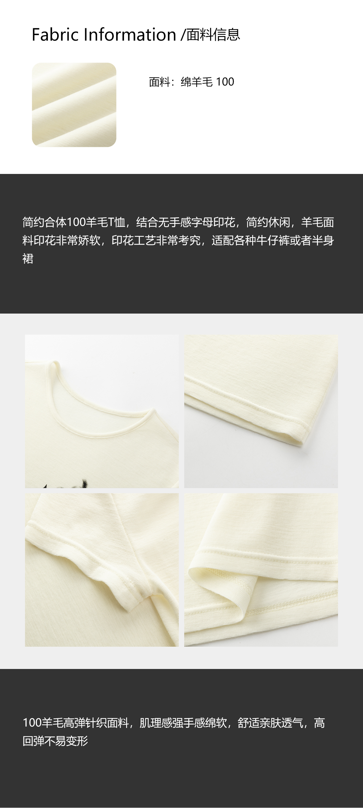 COCO ZONE 刘一一 【100绵羊毛】字母显瘦圆领T恤ACD2A0076