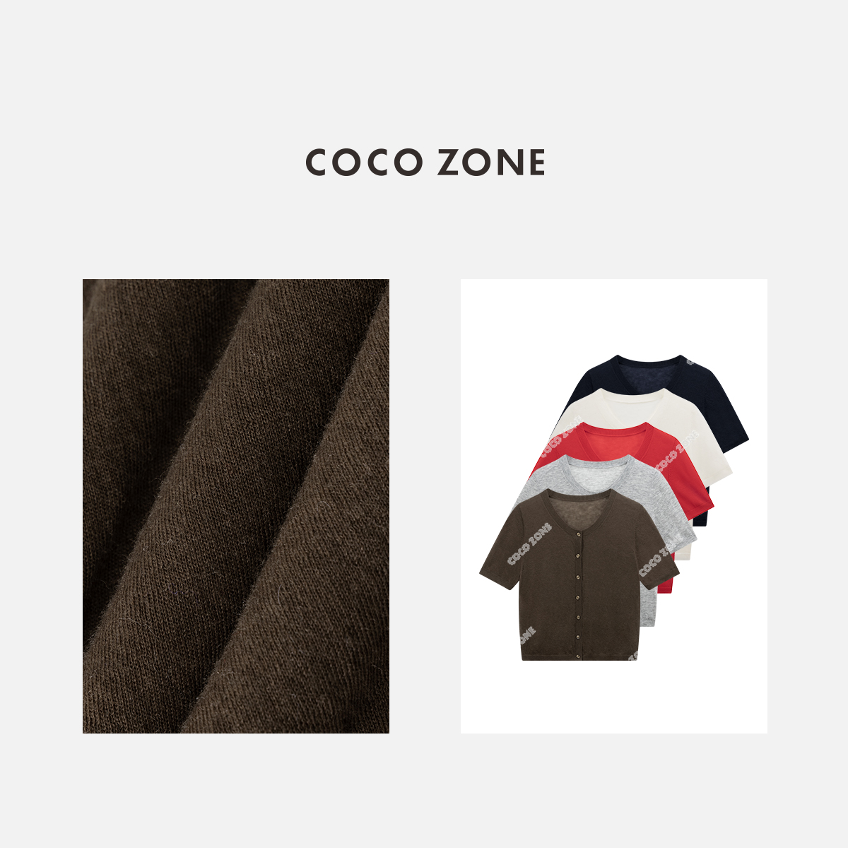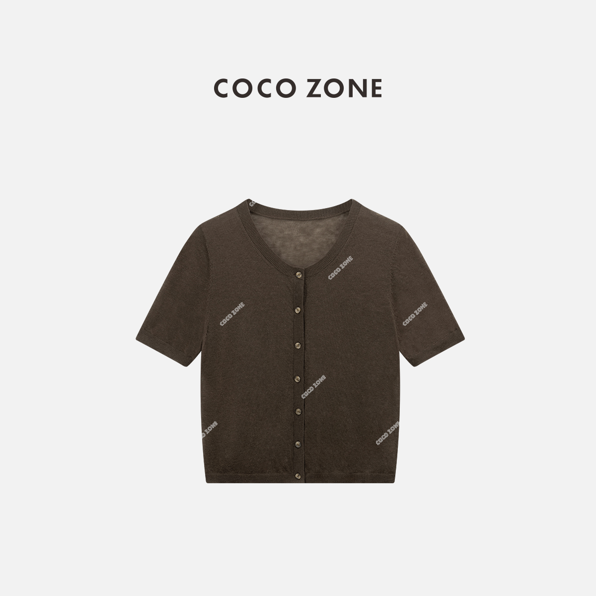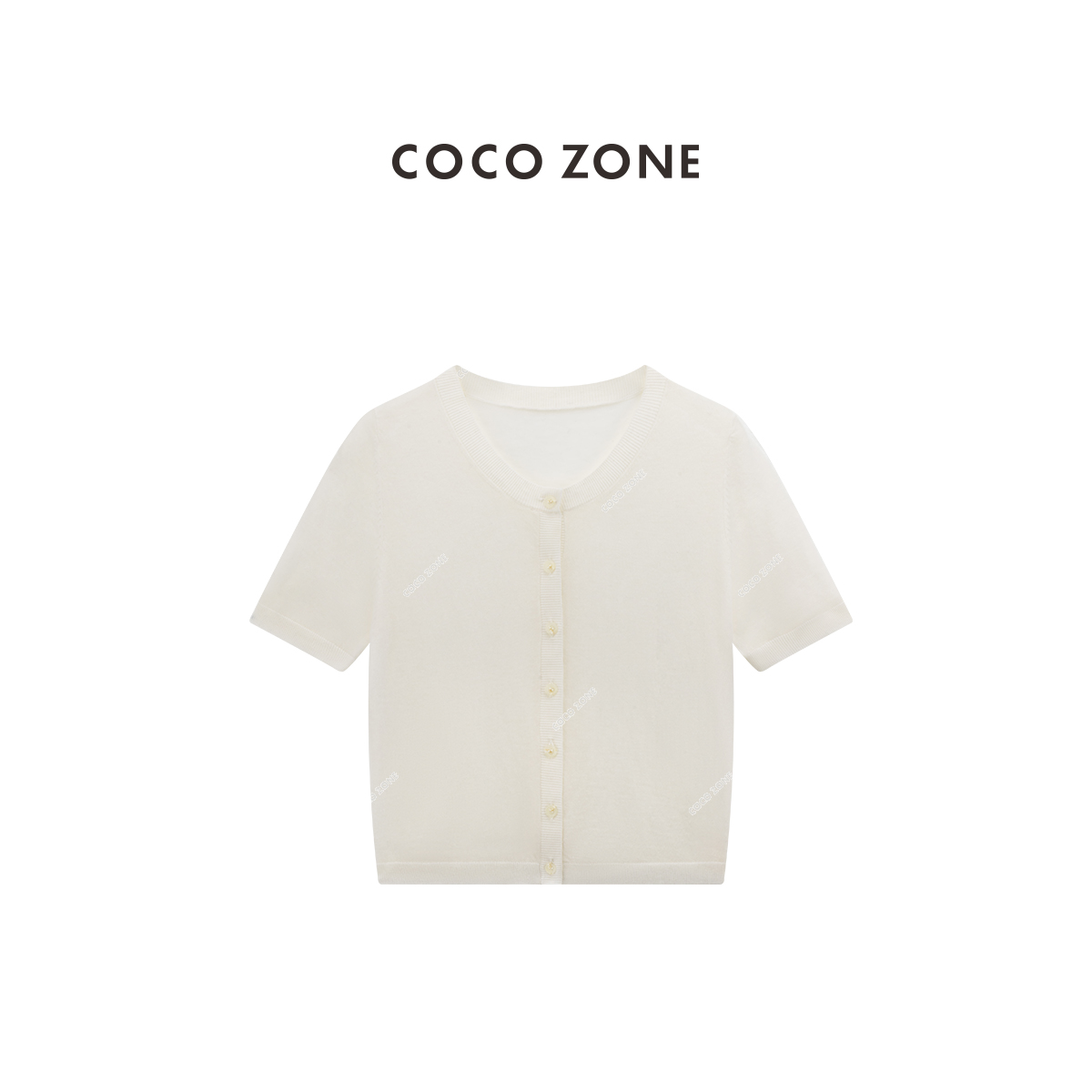 COCO ZONE”100水溶羊毛“藏不住一点圆领针织开衫单排扣短袖上衣CC2B1127