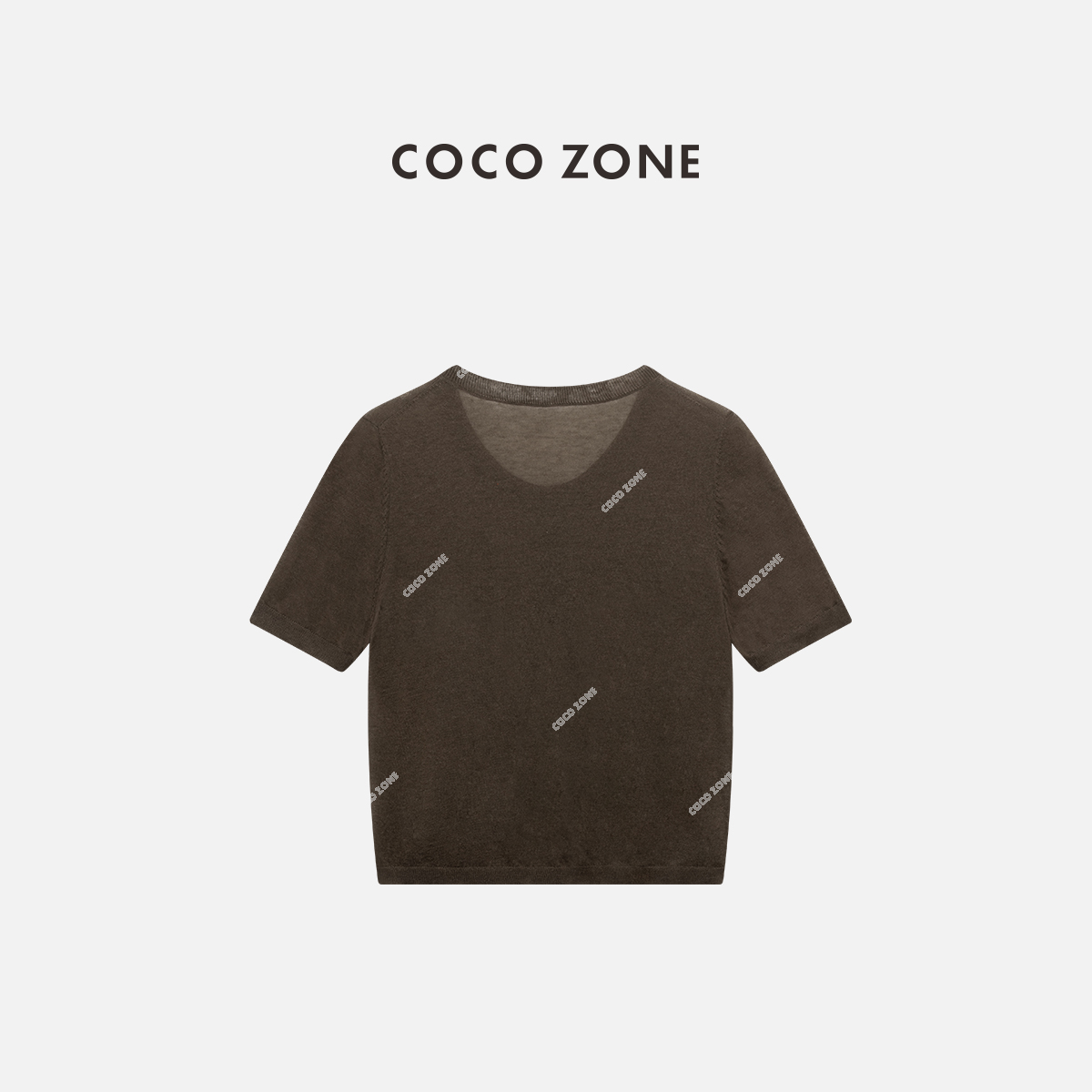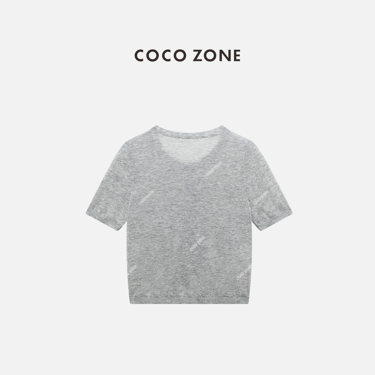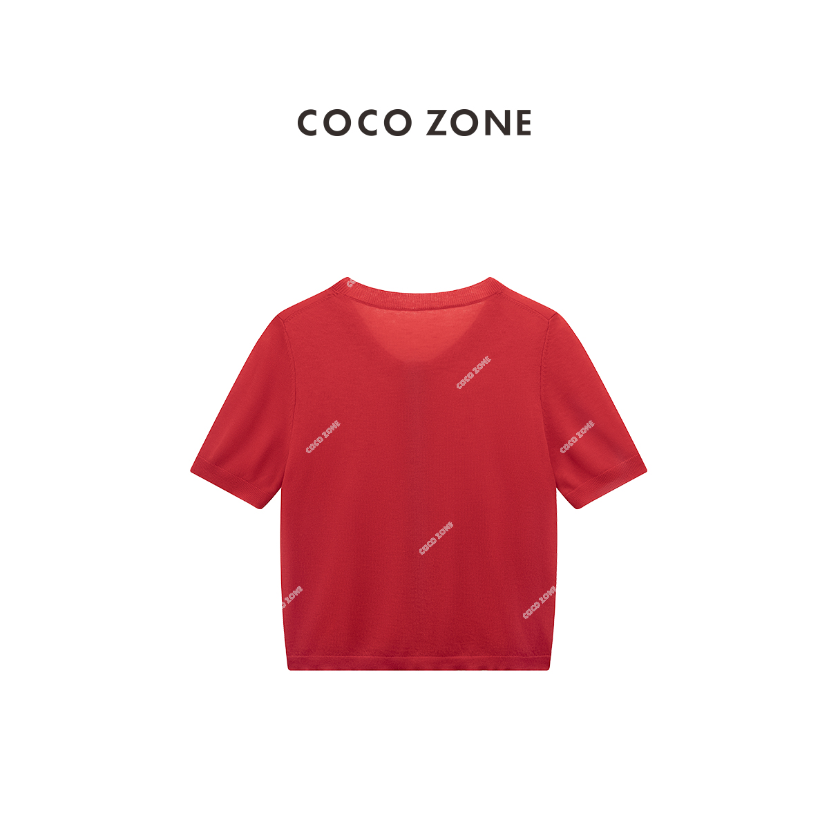 COCO ZONE”100水溶羊毛“藏不住一点圆领针织开衫单排扣短袖上衣CC2B1127