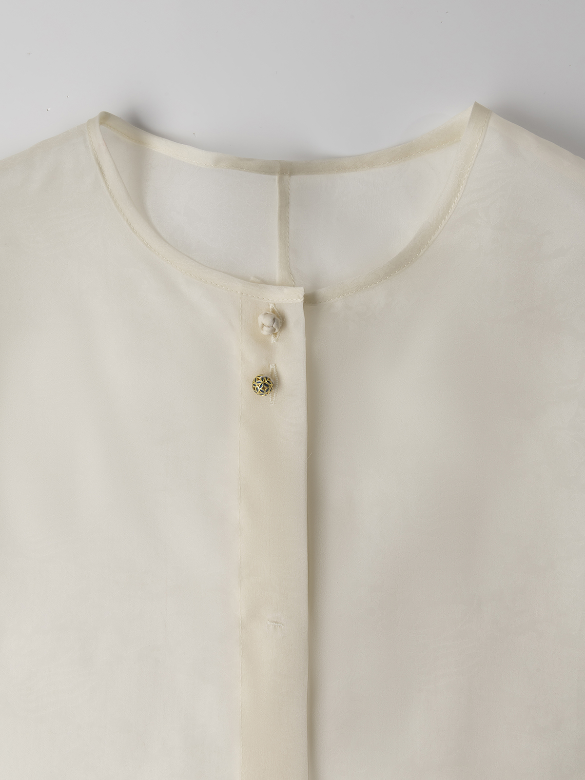COCO ZONE2024“云纱”中式圆领长袖衬衣单排扣提花设计衬衫CC1A0481