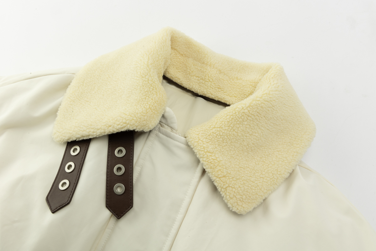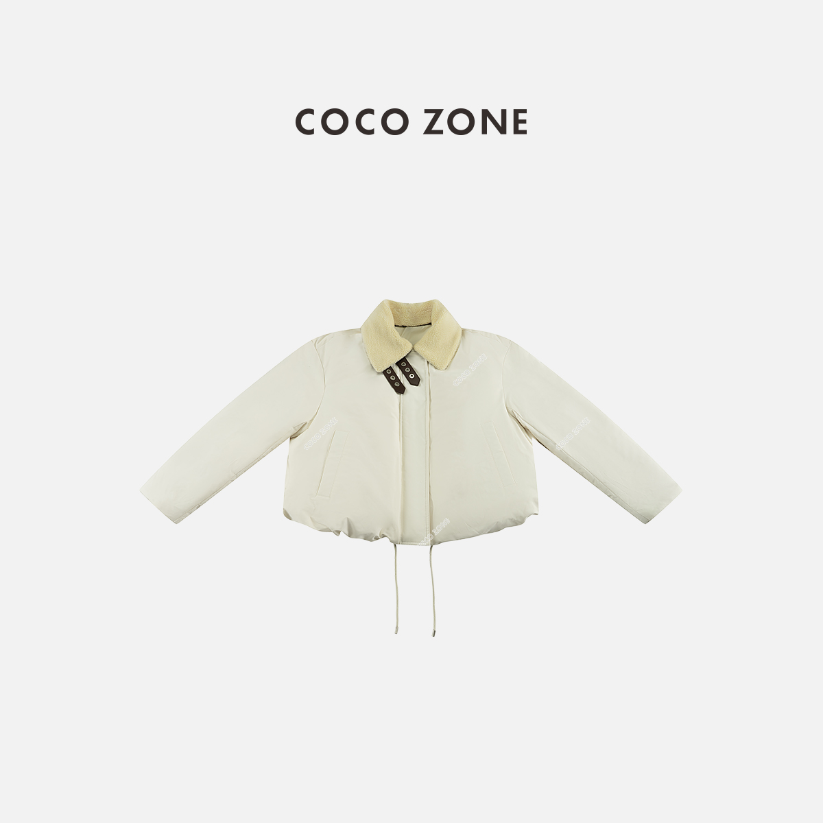 COCO ZONE 90鹅绒冬季复古拼接翻领拉链羽绒服CC2D3248