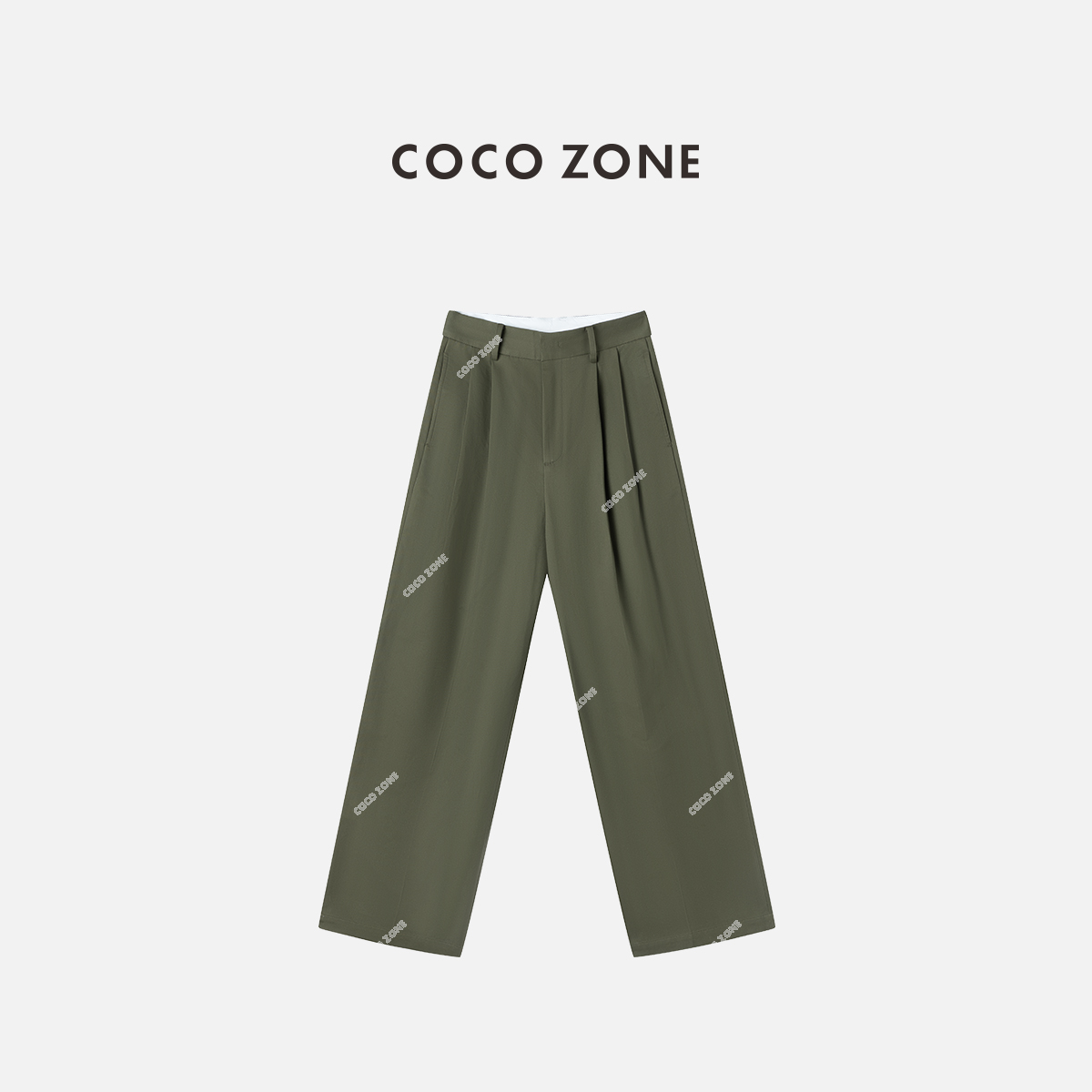 COCO ZONE 简约纯色显瘦休闲裤复古百搭直筒裤CC1C2168