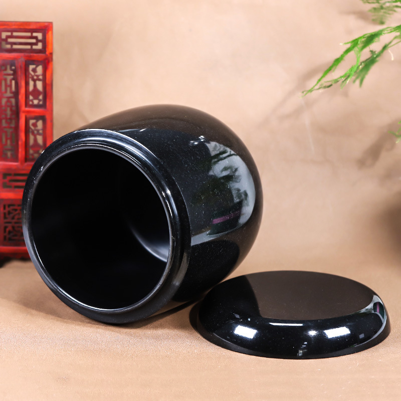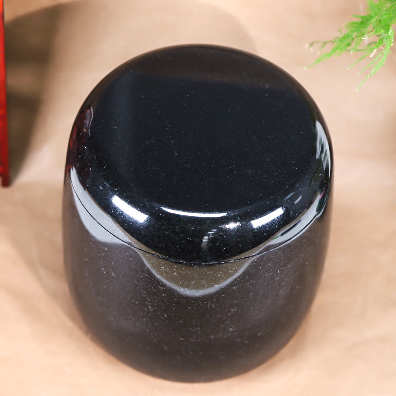 天然玉石骨灰坛净面黑色带星骨灰桶 骨灰盒22.5*23cm