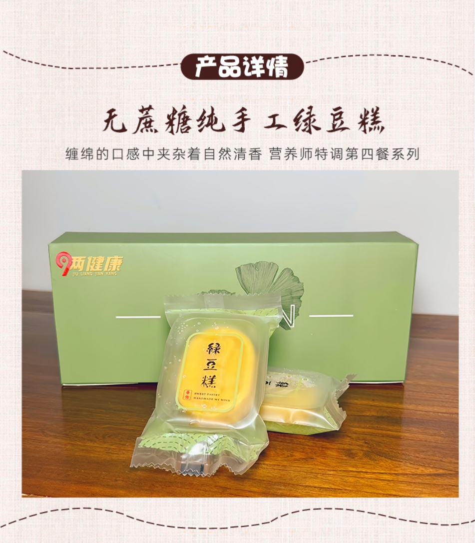 【9两健康】无蔗糖纯手工绿豆糕 控糖人群适用第四餐零食 1盒8个 99包邮 营养师配方