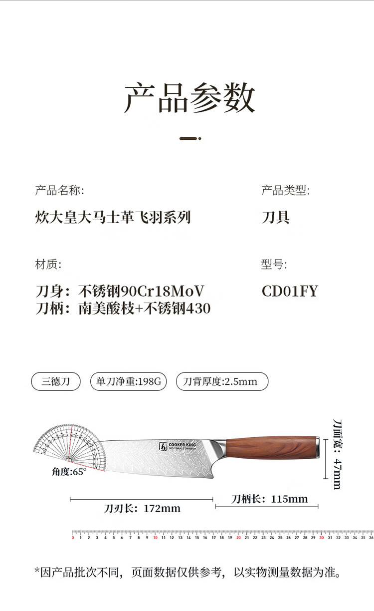 炊大皇大马士革飞羽三德刀CD01FY(不带切片刀)
