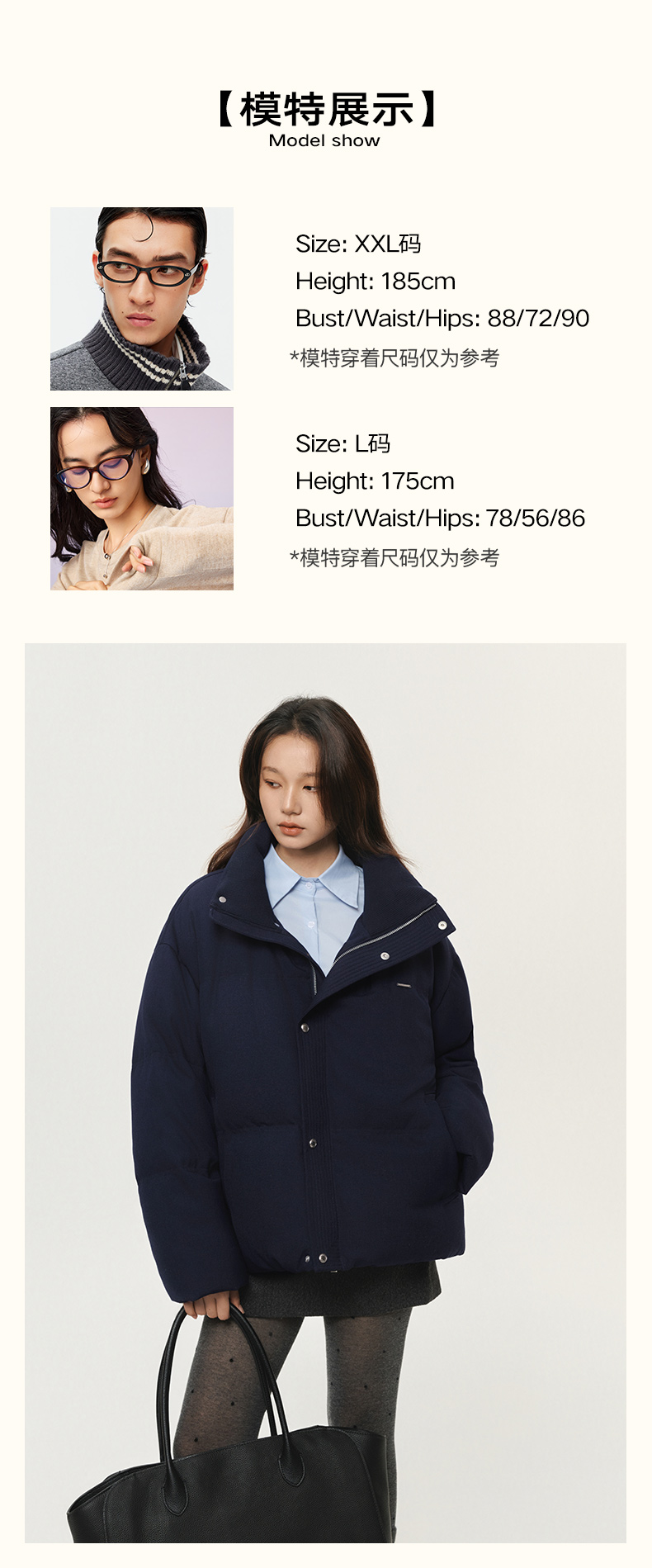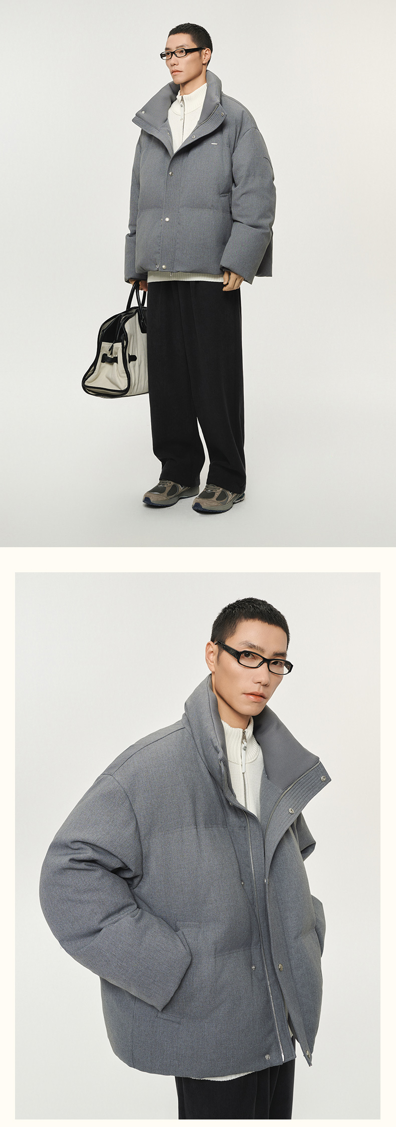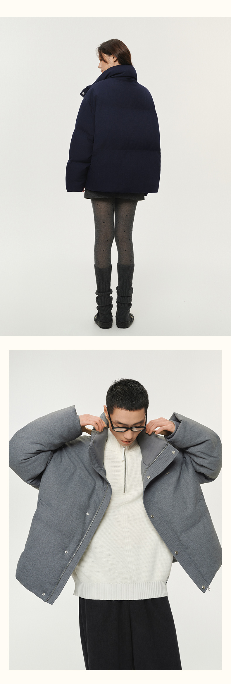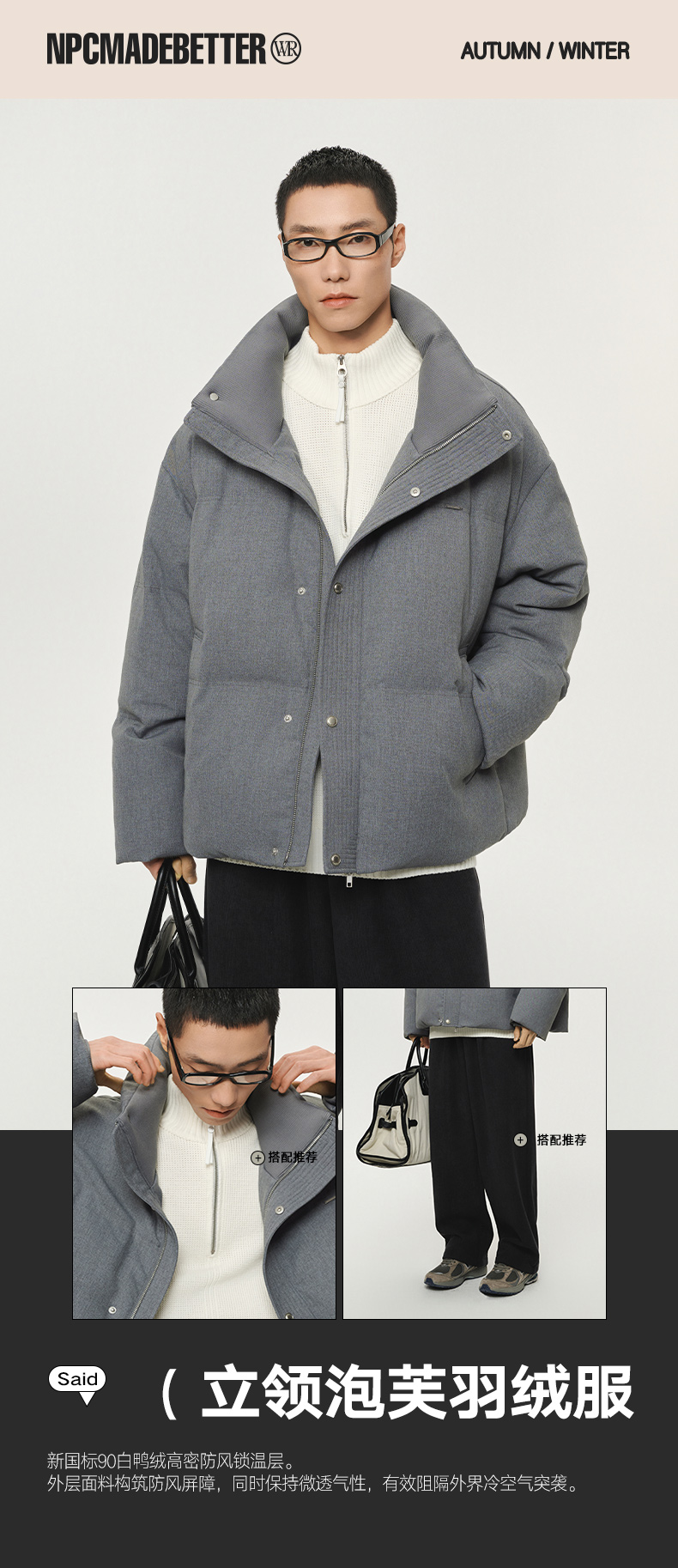 潮牌90白鸭绒立领箱型短款羽绒服休闲简约双色可选NP5BDJ01