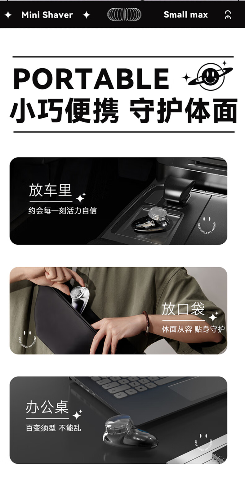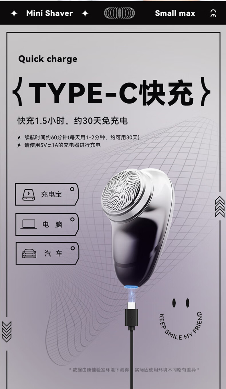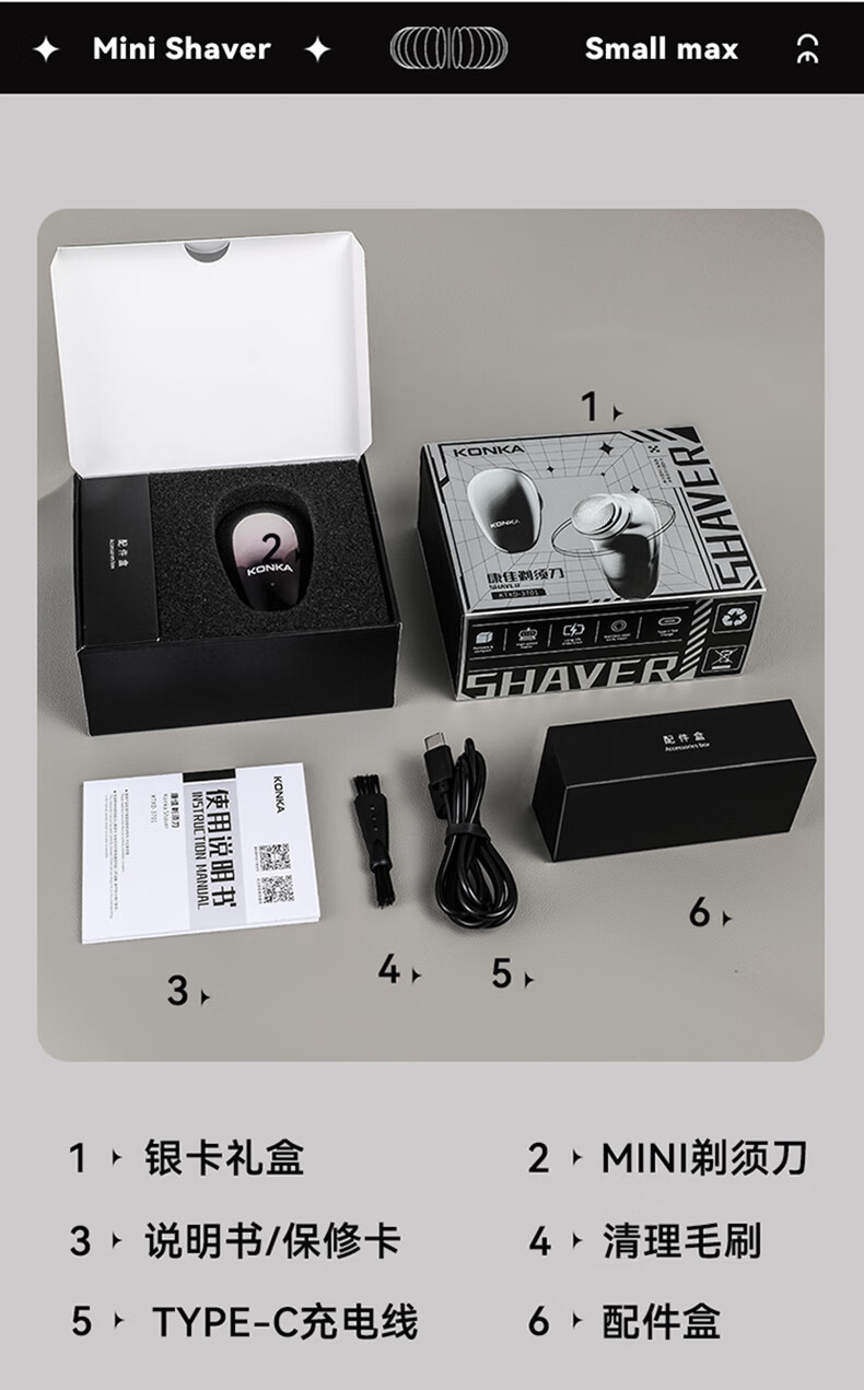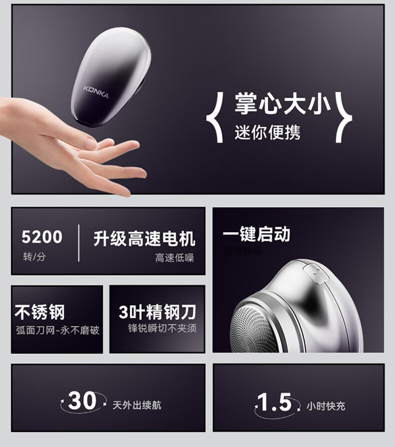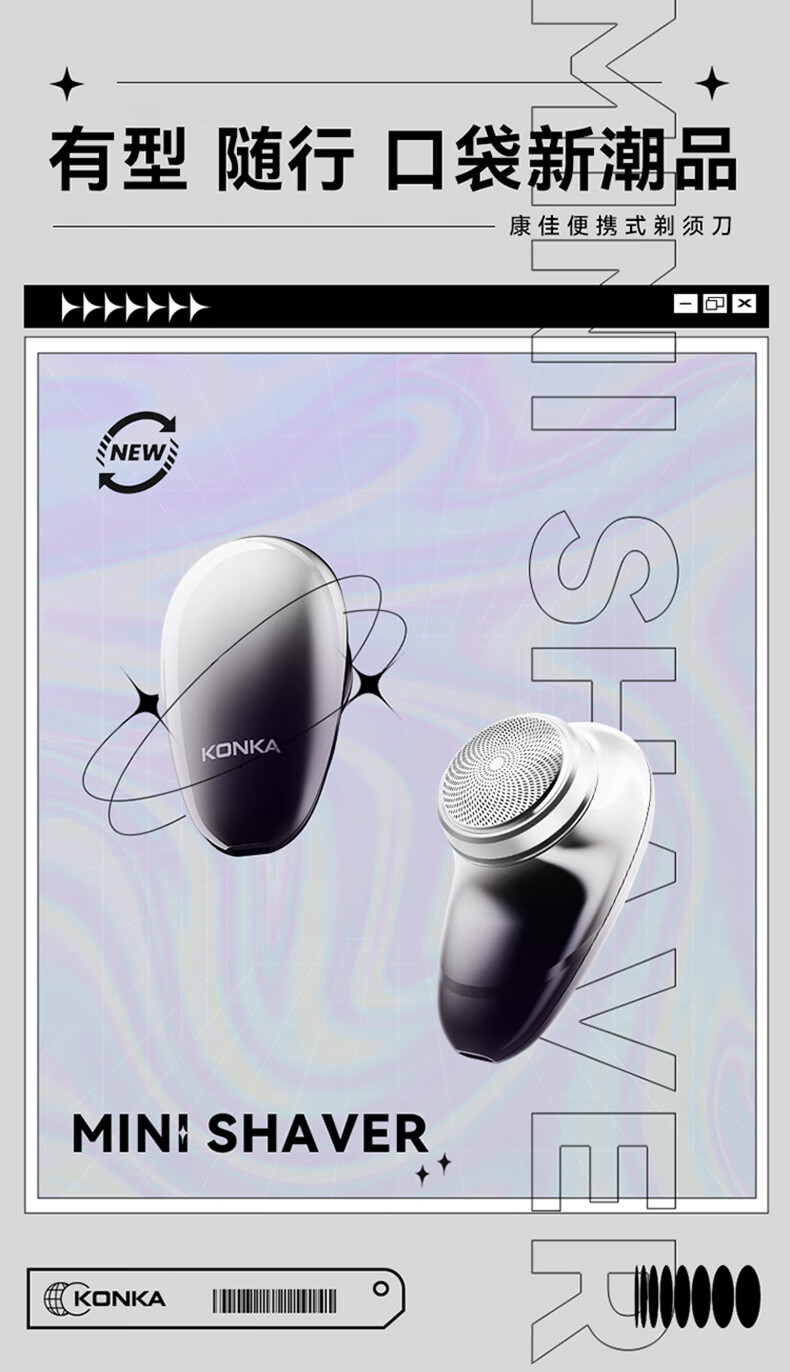 康佳(KONKA)电动剃须刀迷你旅行便携式充电刮胡刀全身水洗干湿双剃车载快充 KTXD-3701